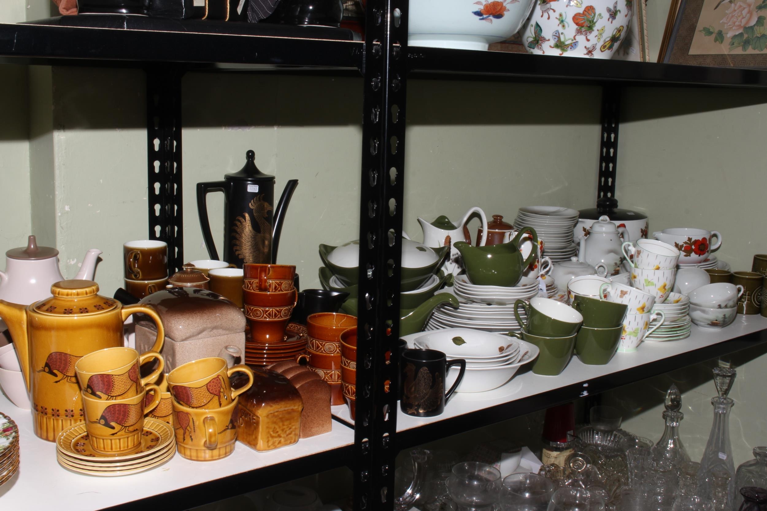 Large quantity of table china including Portmeirion 'Phoenix' coffee set, Palissy 'Taurus', Midwinter 'Stylecraft', Poole tea set, etc.