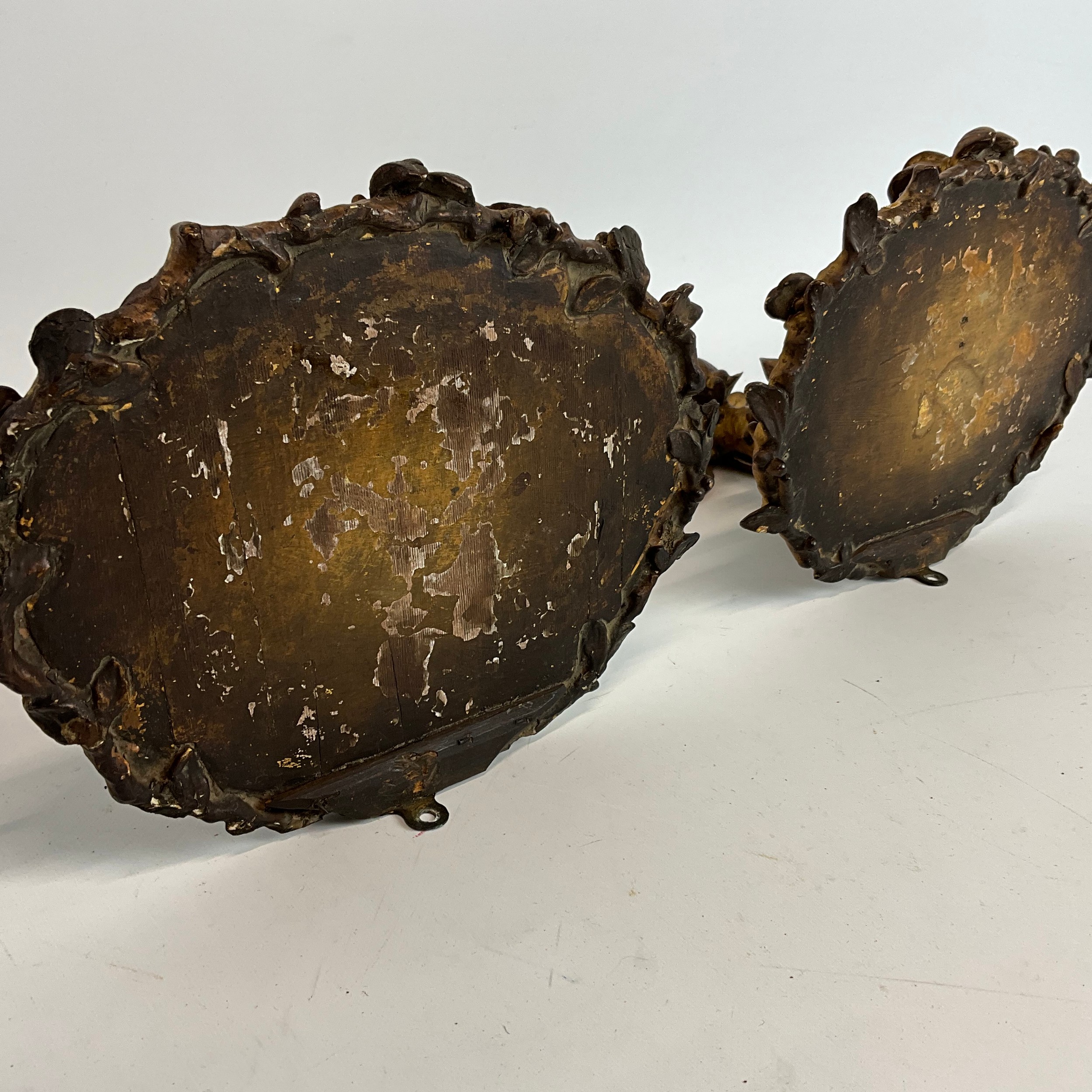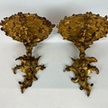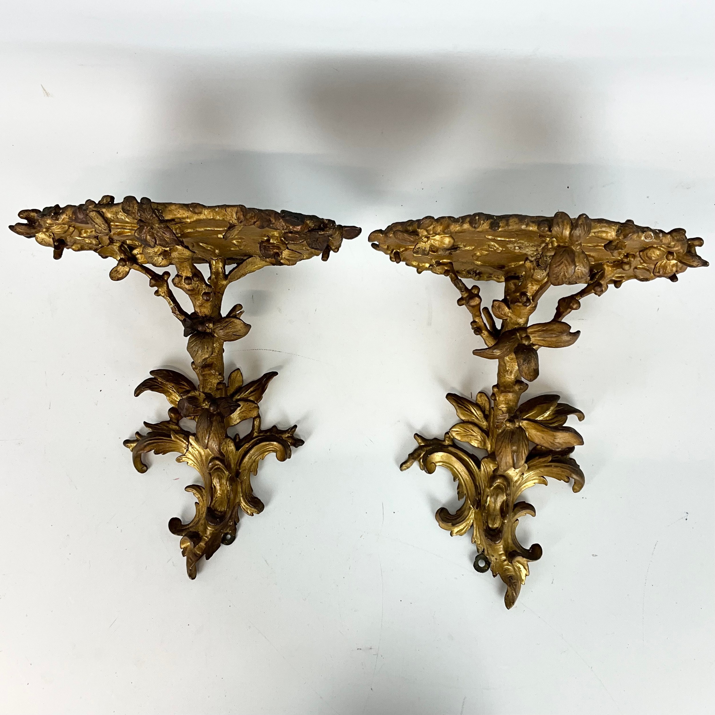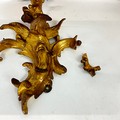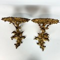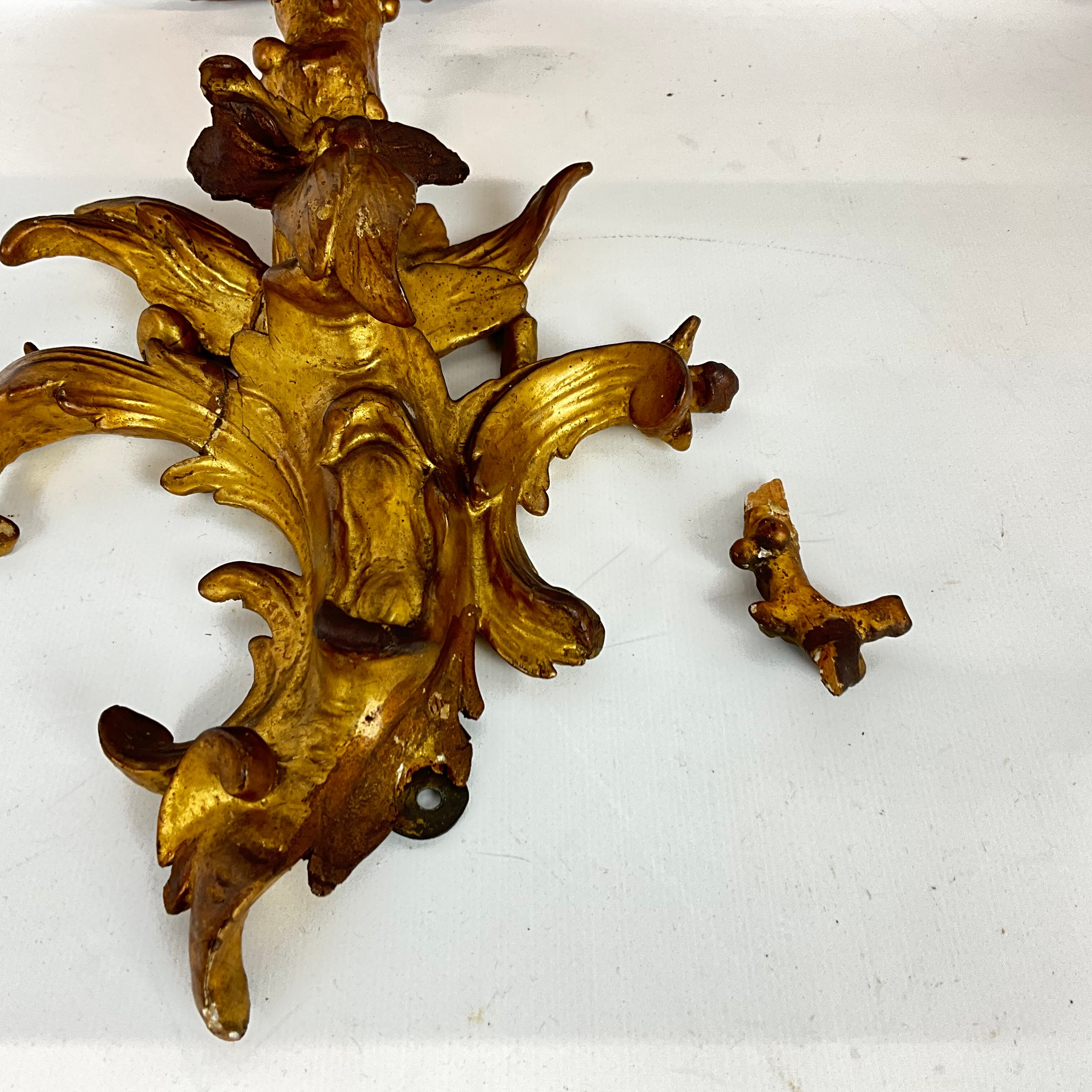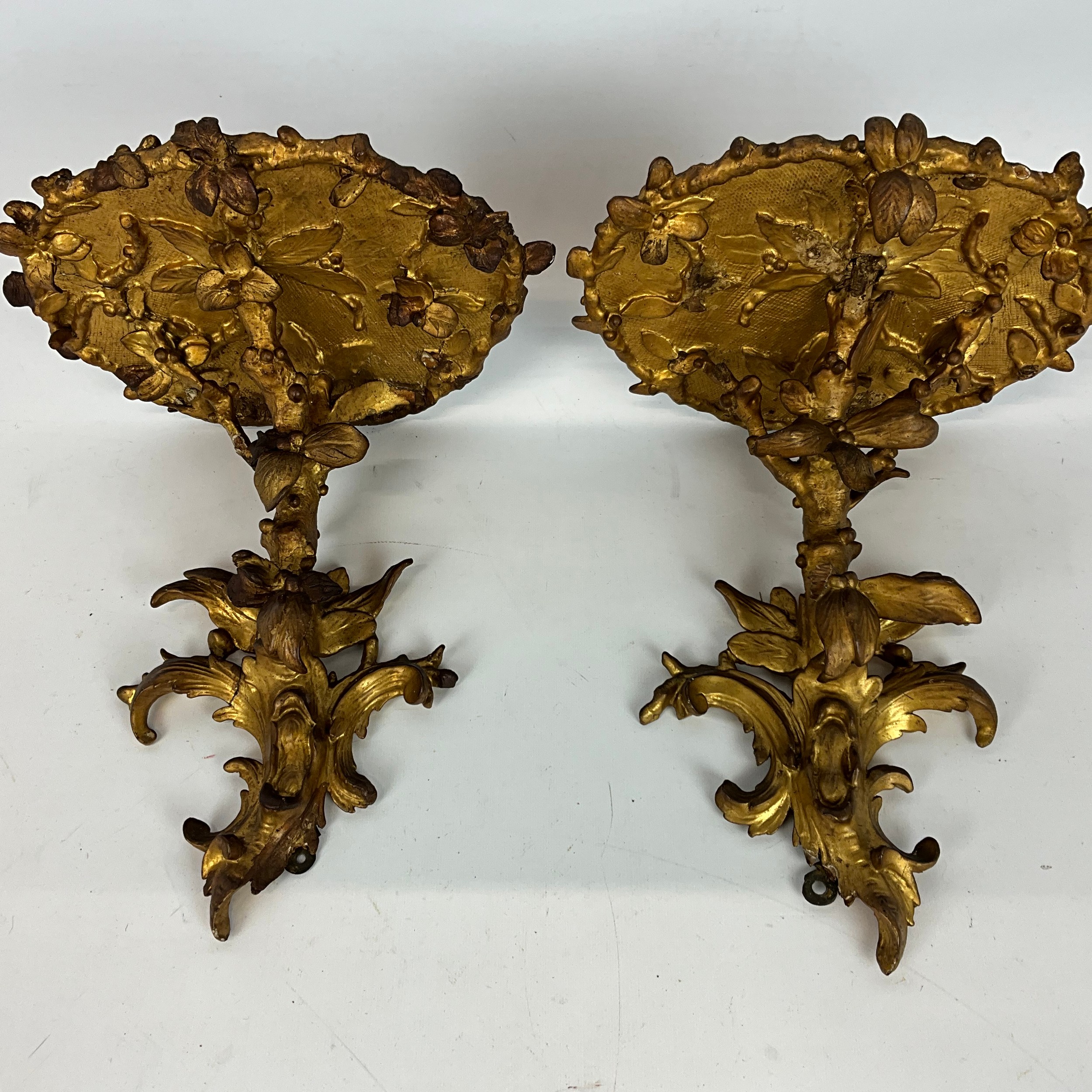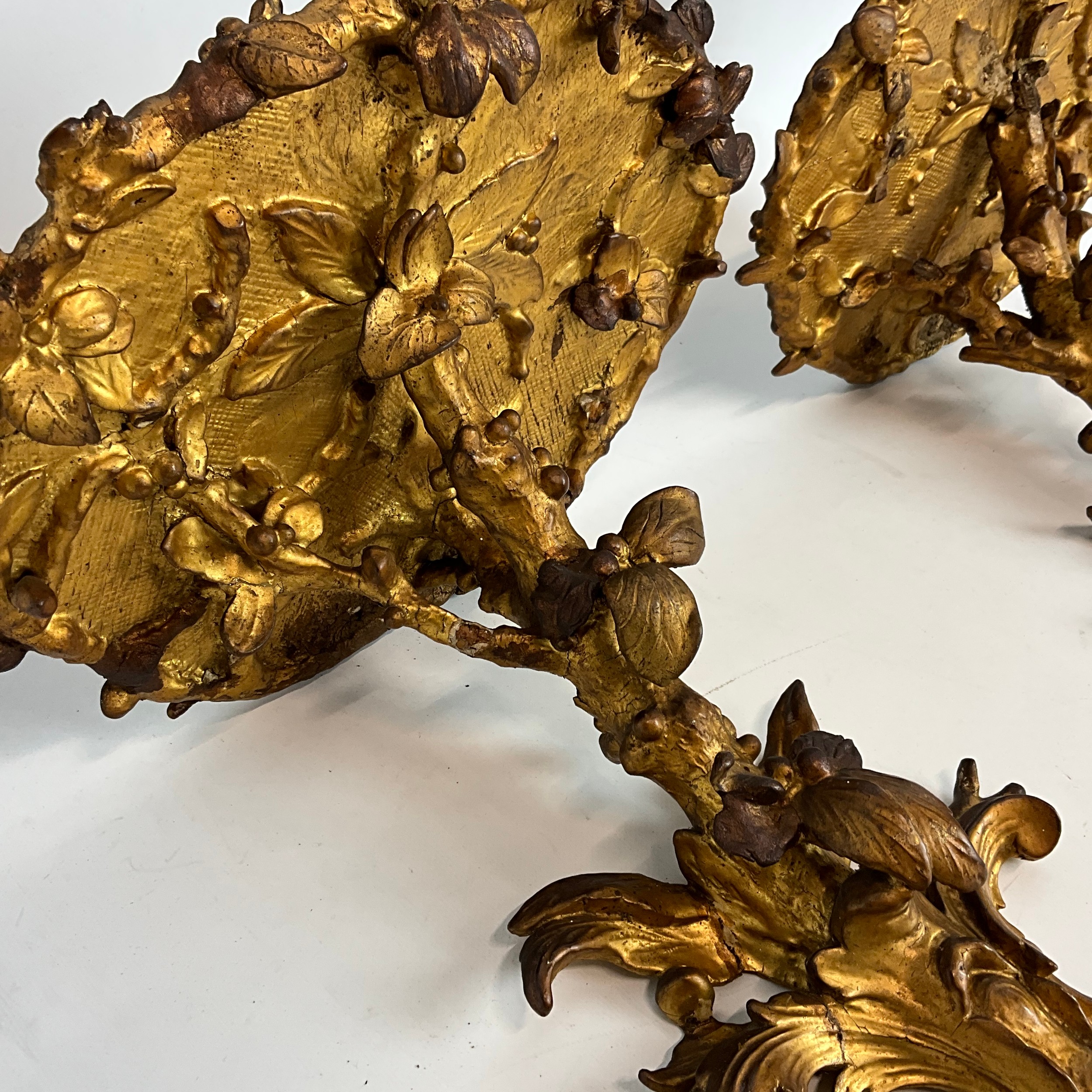 A pair of late 19th-century gilded wall sconces, the stem in the form of a branch decorated with acanthus, leaf and flowers, L31cm.