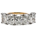 An 18K Yellow Gold and Platinum Lab-Grown Diamond Ring, claw set with five cushion shape diamonds. Total diamond weight: 5.15ct. Colour D, clarity VVS2. Ring size M. Total weight: 4.81g. Ref: U3850.