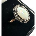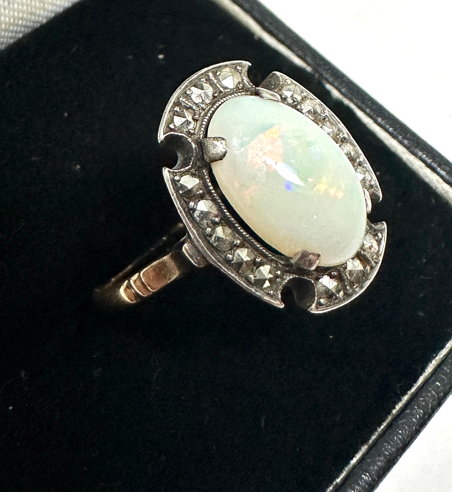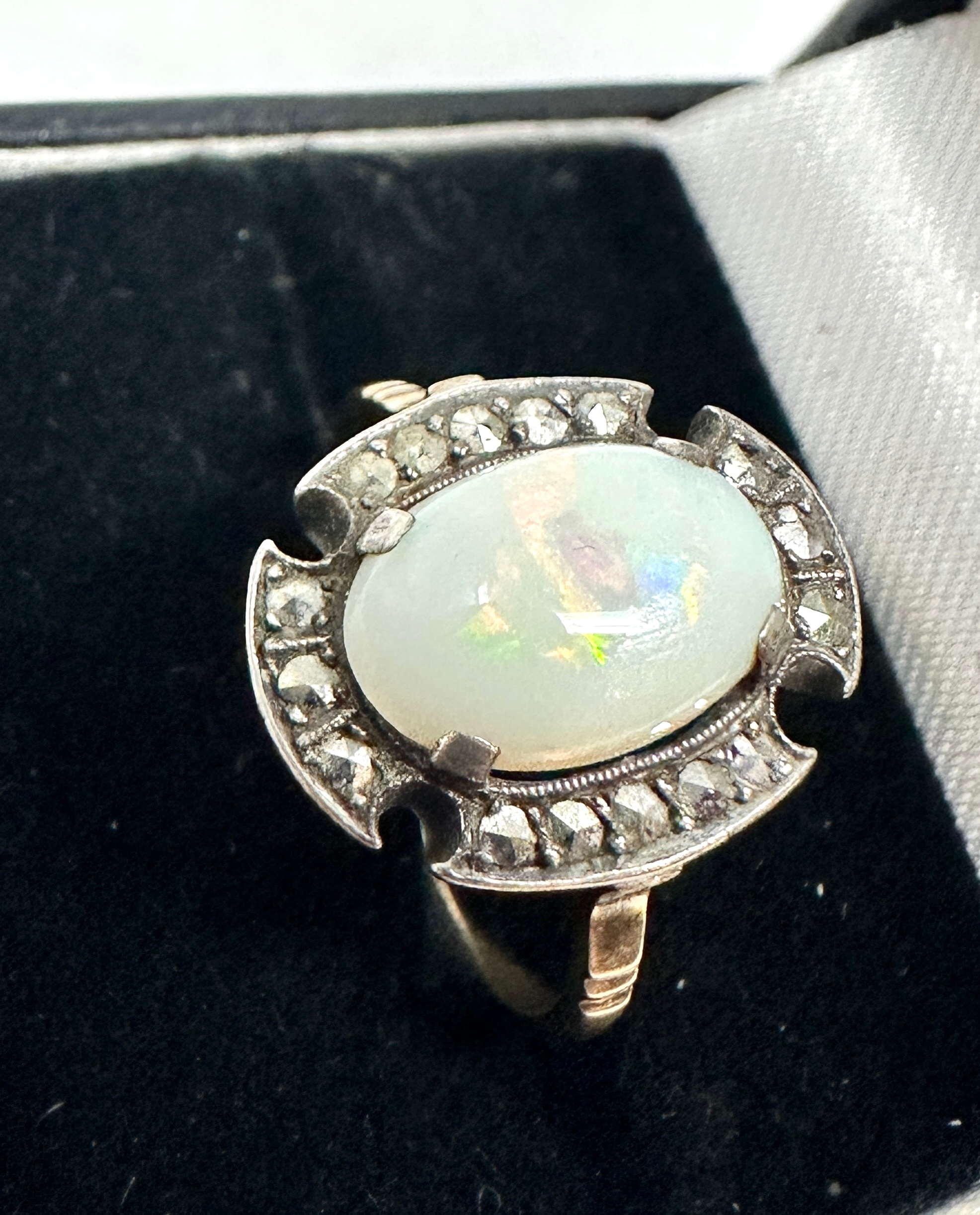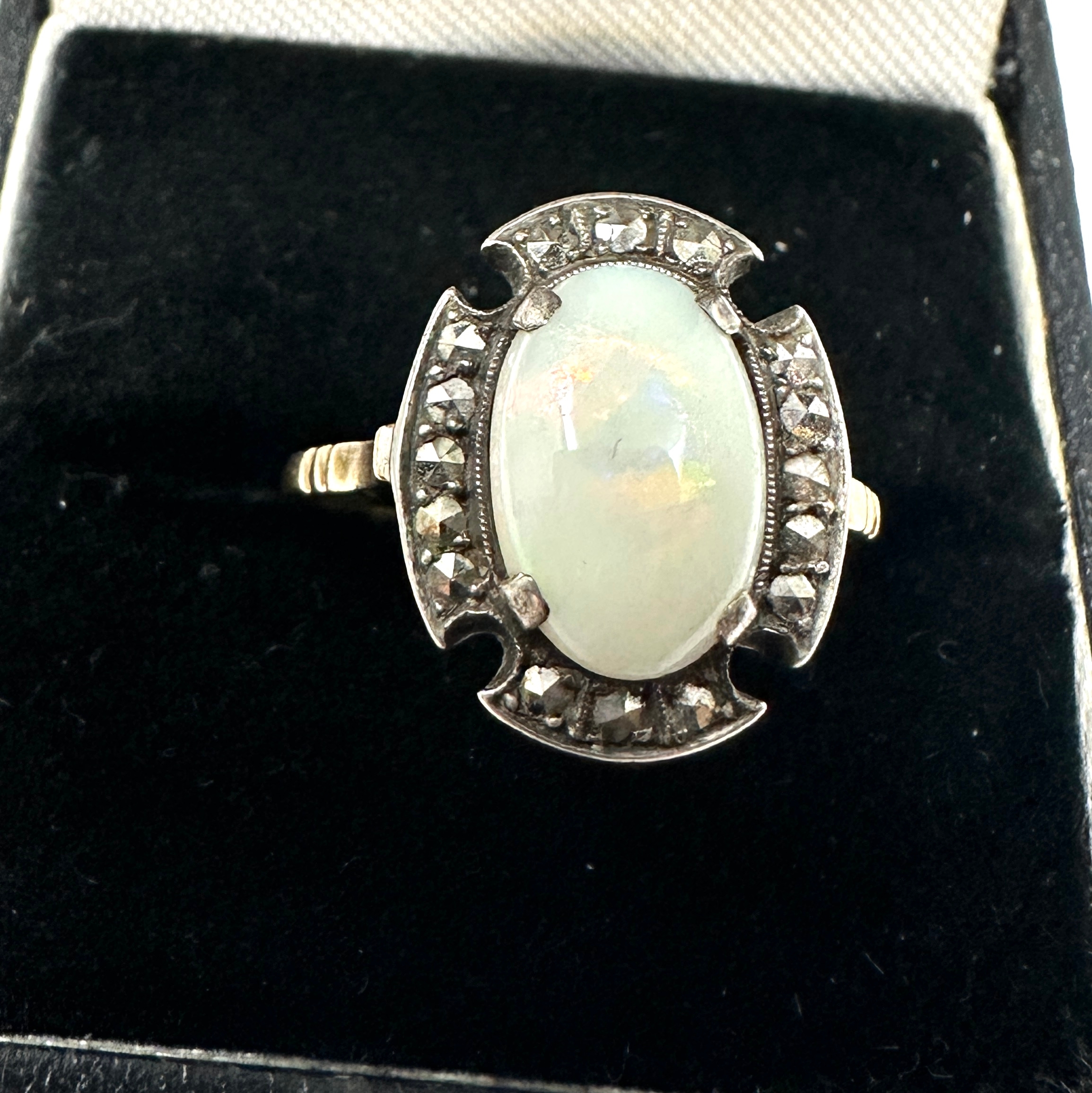 Vintage 9ct gold opal & marcasite ring weight 2.9g