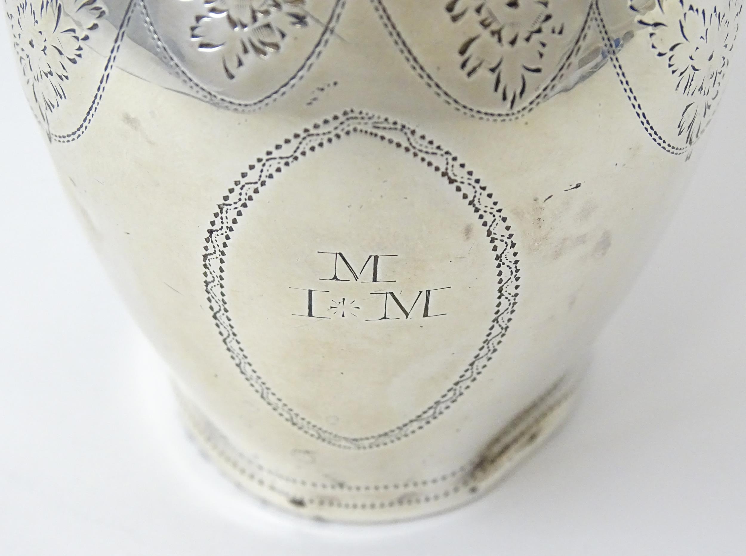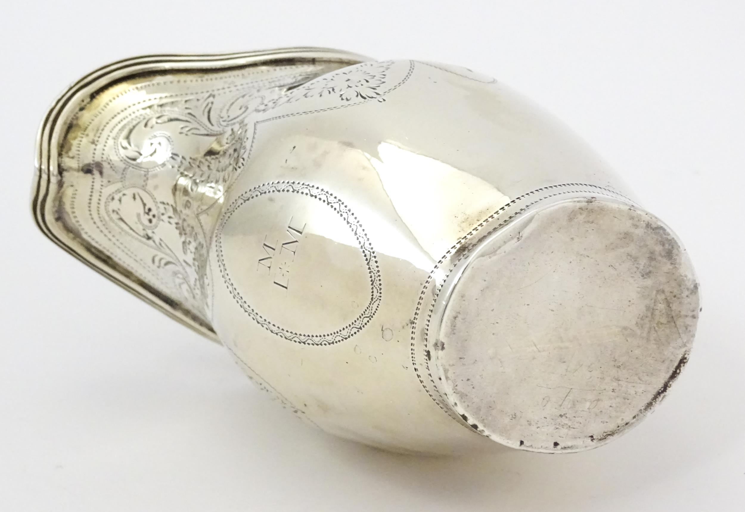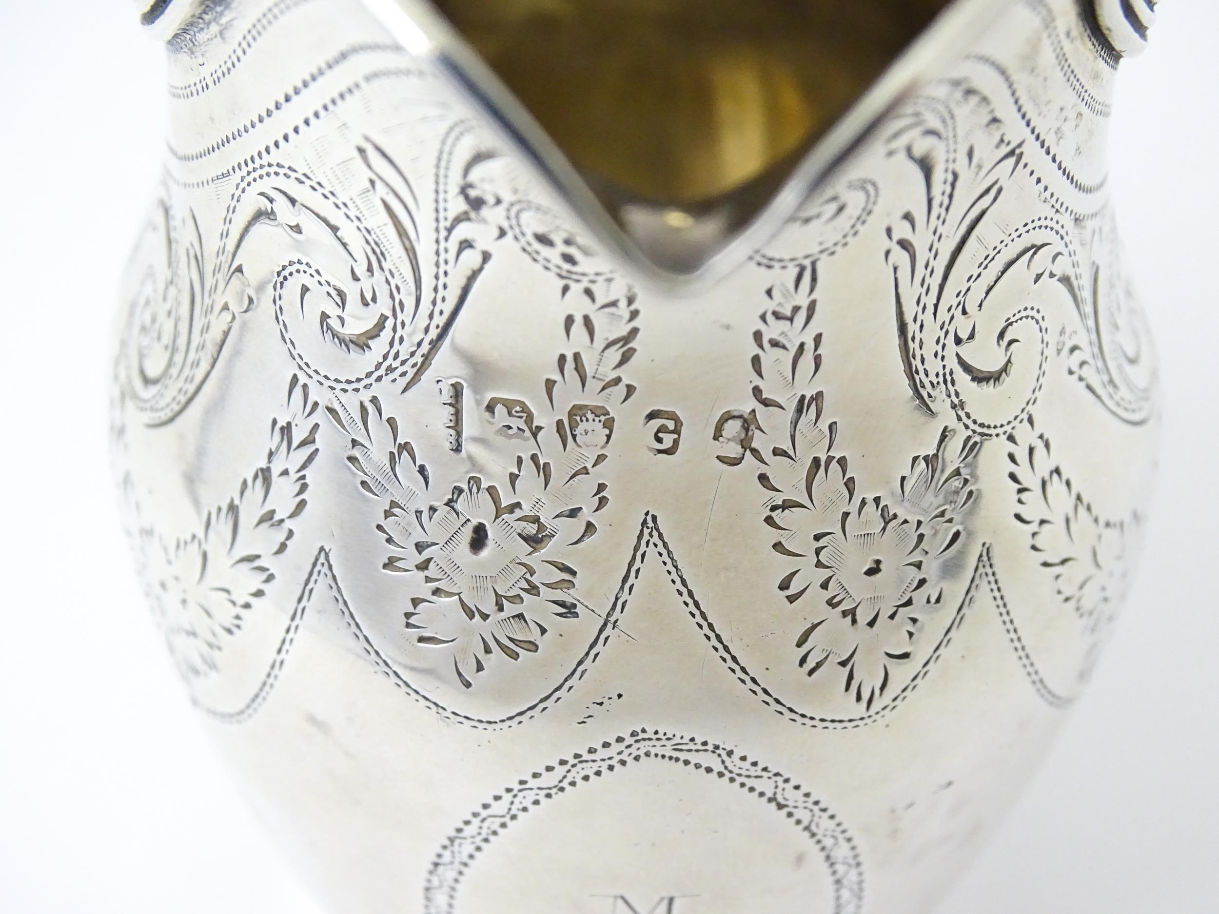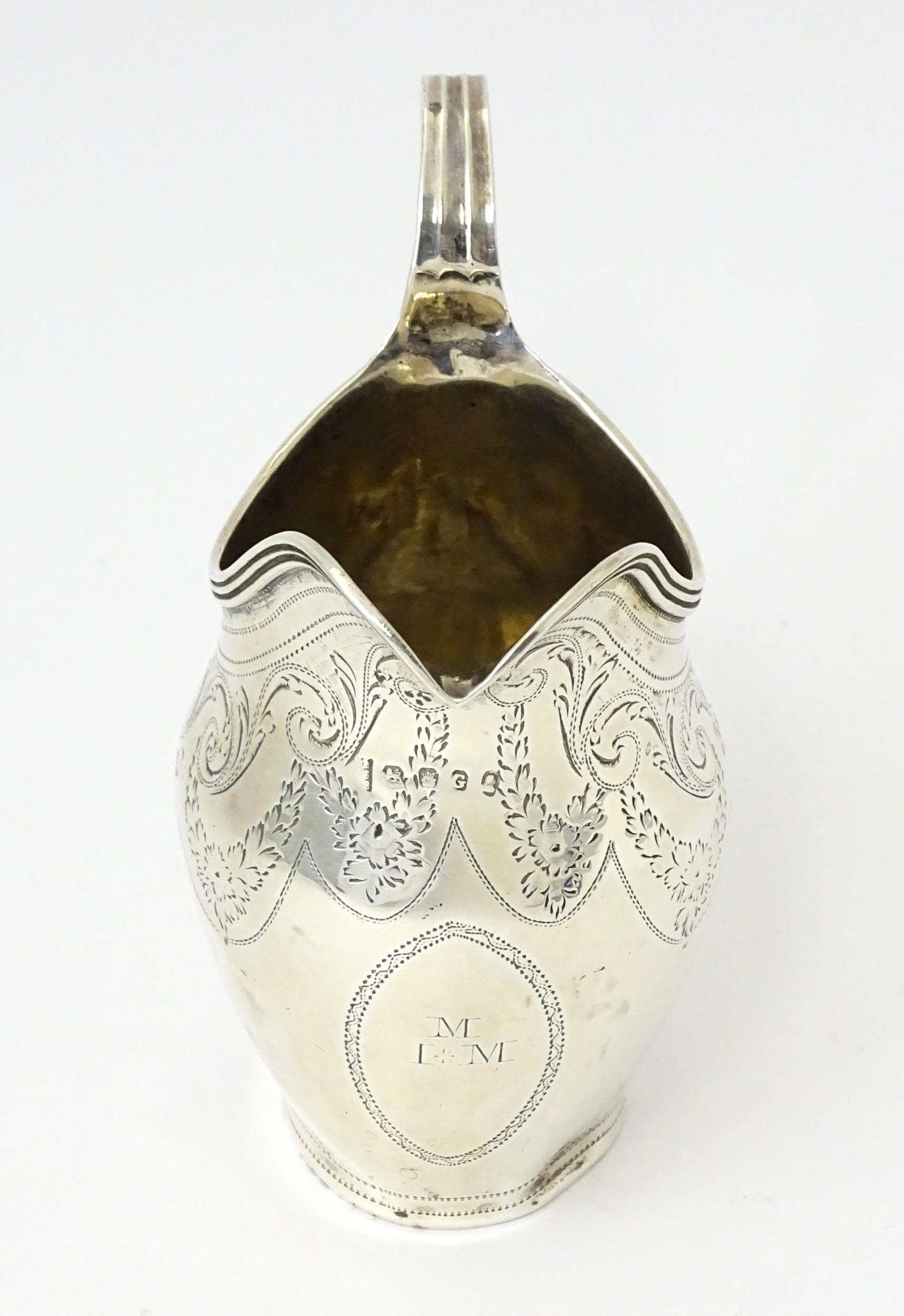A silver cream jug with engraved decoration, hallmarked London 1802, maker Peter, Ann & William Bateman. Approx. 4 1/2" high