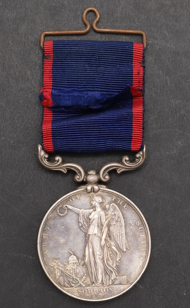 A SUTLEJ MEDAL 1845-46 FOR SOBRAON TO THE 10TH REGIMENT. A Sutlej medal, the exurge of the reverse for Sobraon 1846, named to Wm Birch 10th Regt. The 10th (North Lincolnshire) Regiment of Foot.