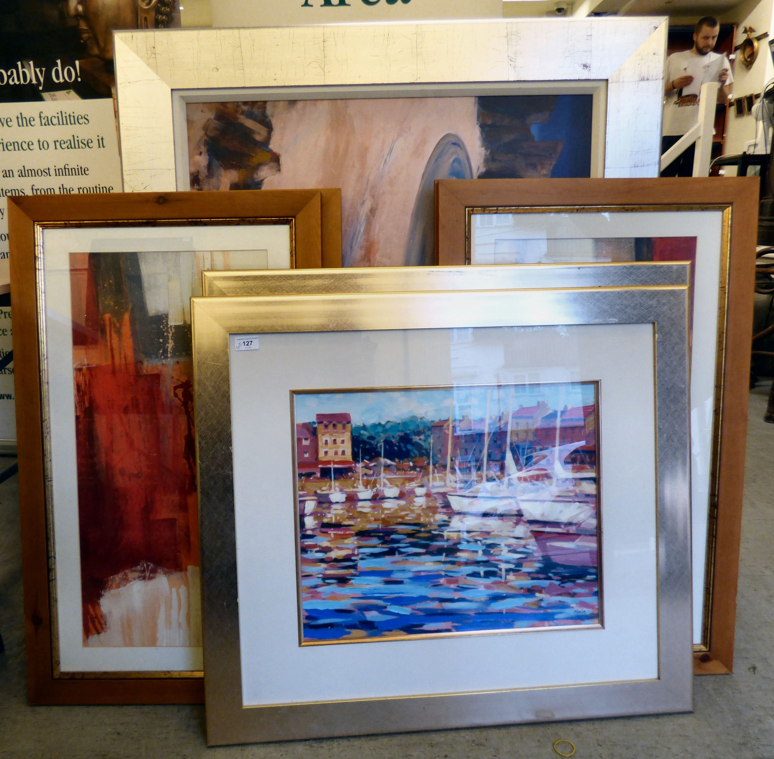 Various prints: to include after Holt - a quay scene Limited Edition 41/95 coloured print 15" x 18" framed