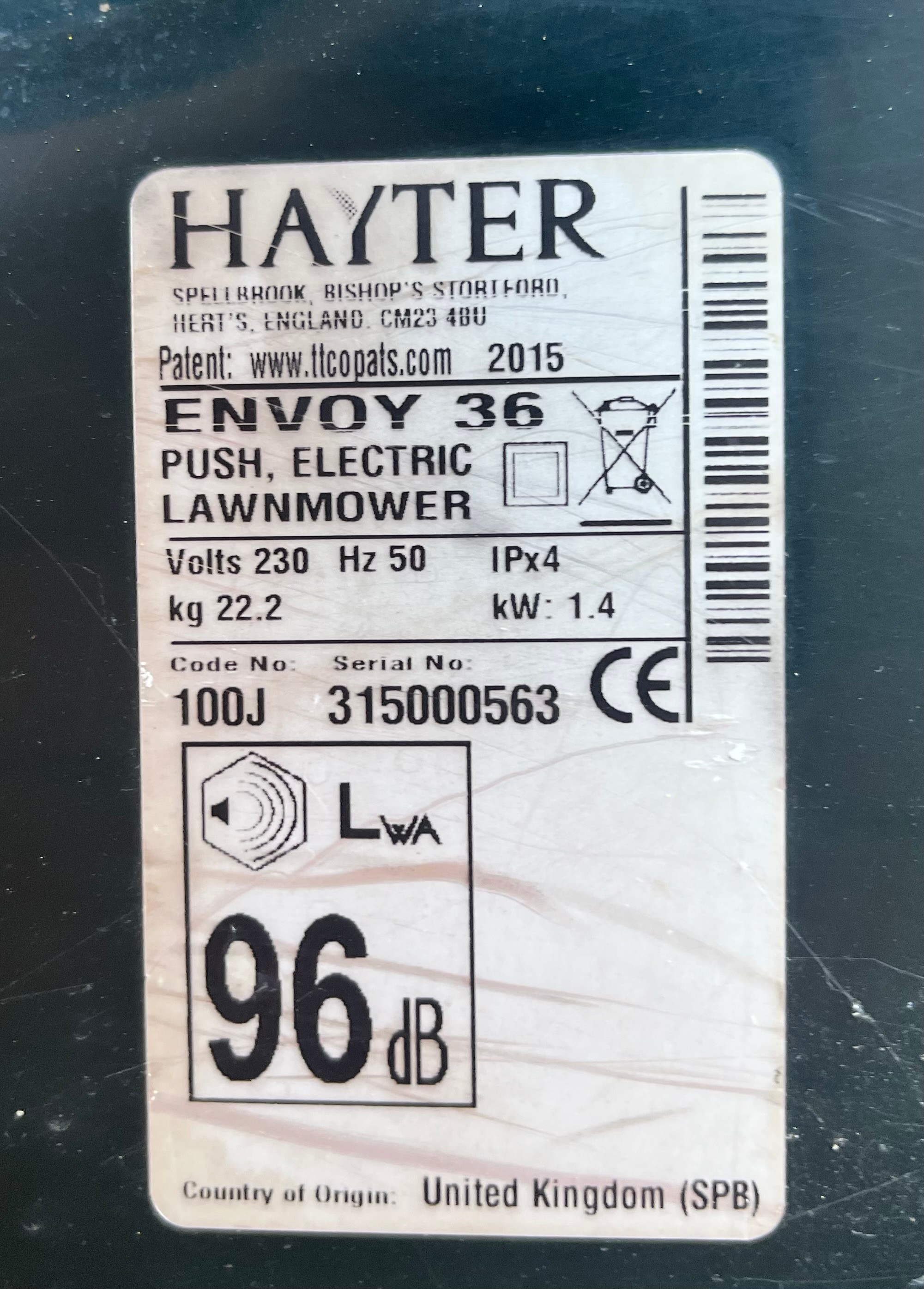 HAYTER ENVOY 36 ELECTRIC LAWNMOWER