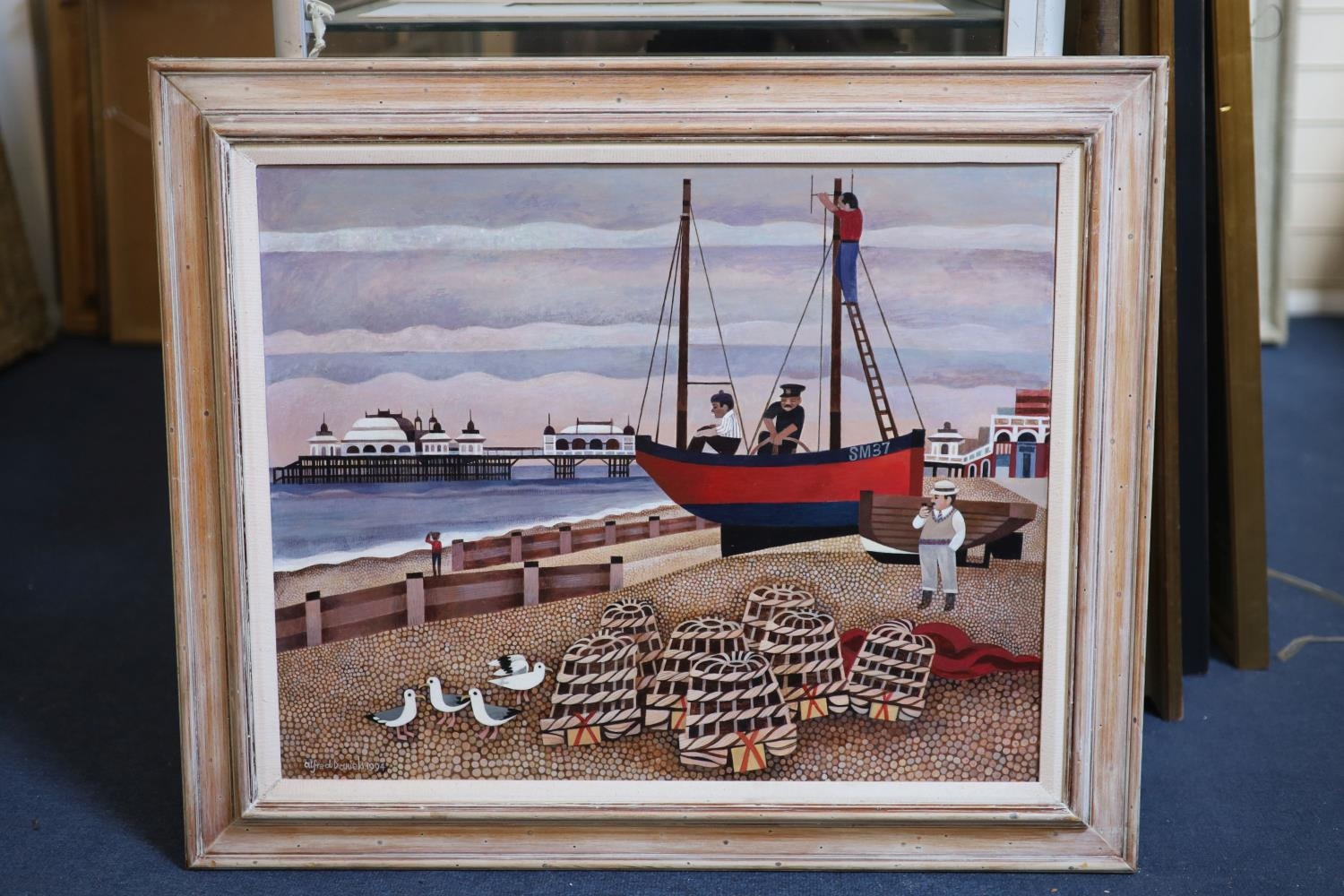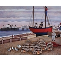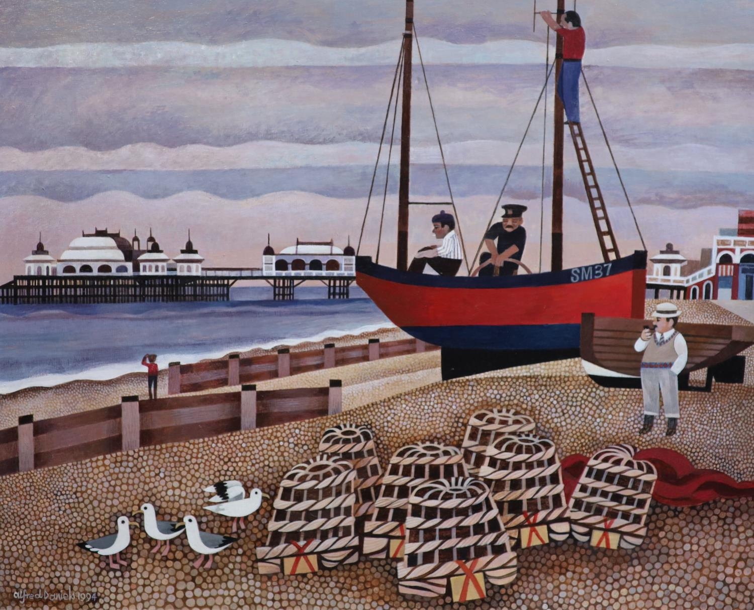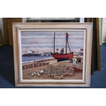 Oil on board in good untouched condition, one tiny dent just to the right of the foremast but no other faults noted, original bleached wood frame with Royal academy summer exhibition 1994 label verso