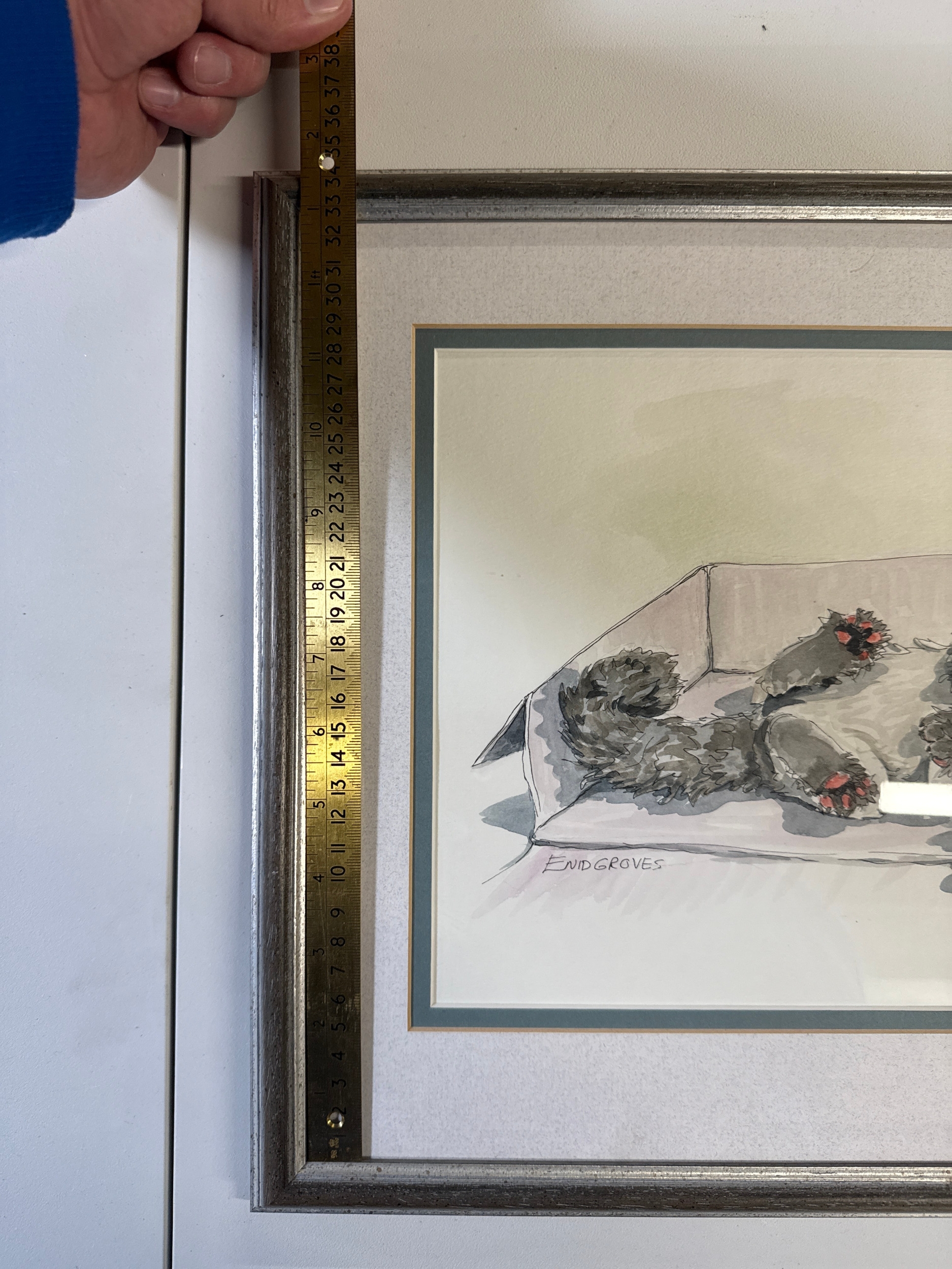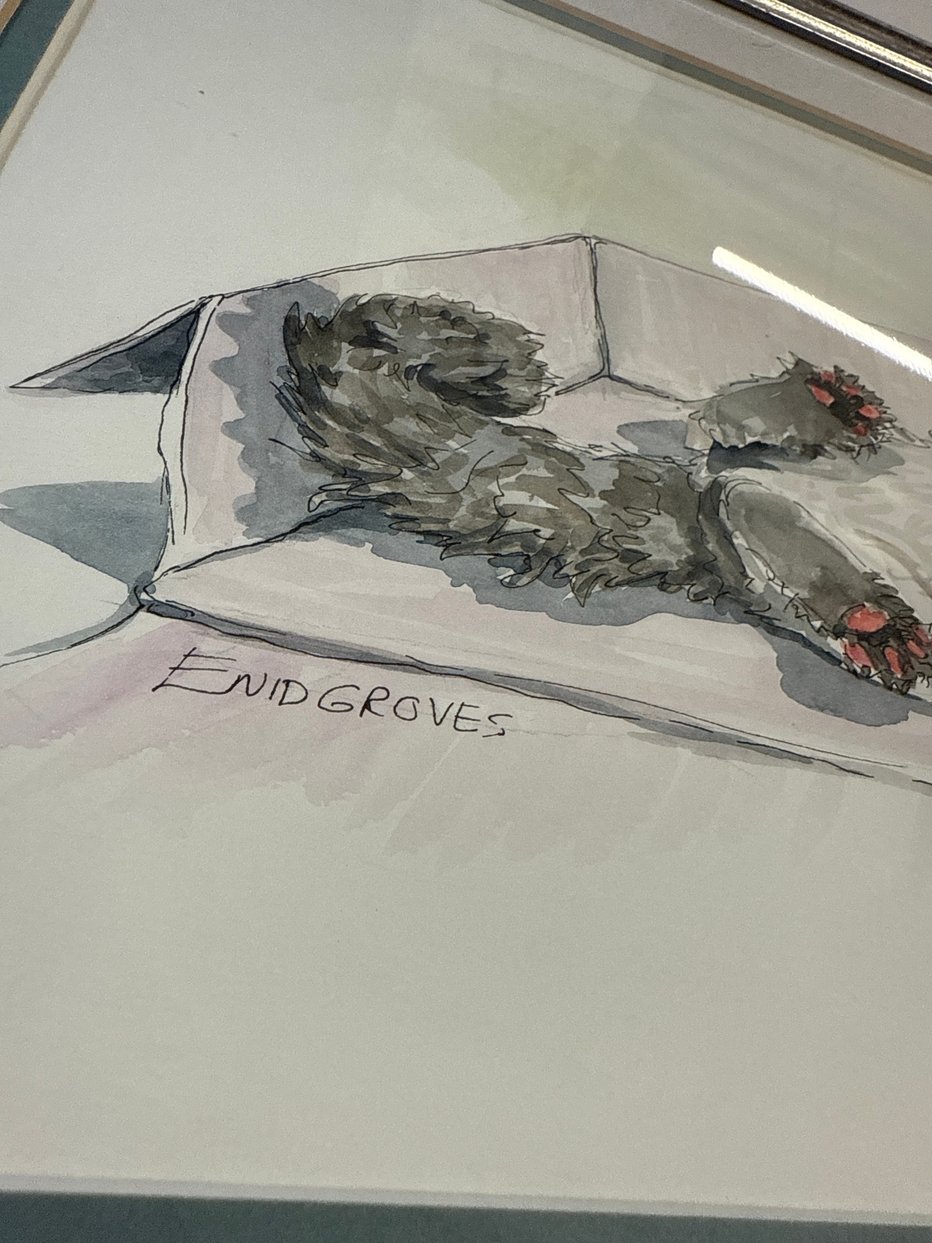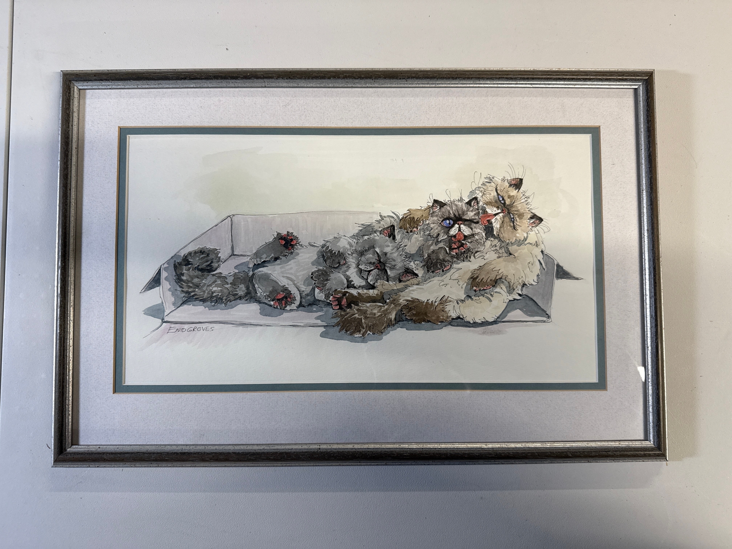 Enid Groves, A Group of Cats in a Box, Watercolor and Ink Drawing