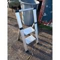Two-step aluminum ladder with compact foldable design not postable.