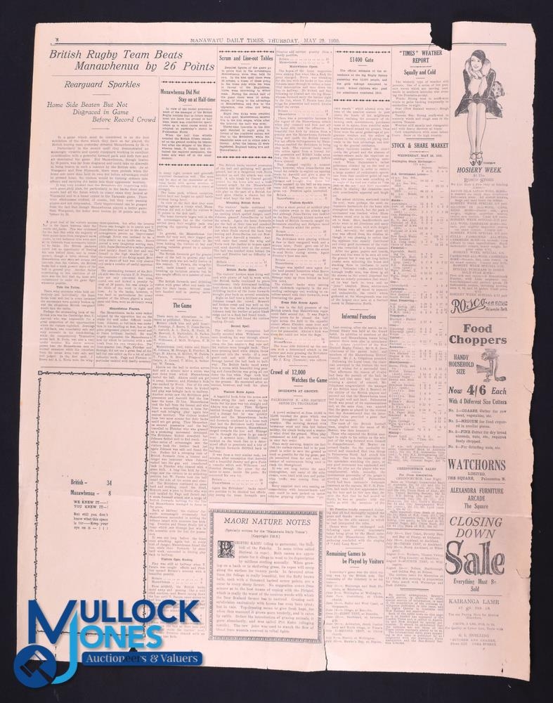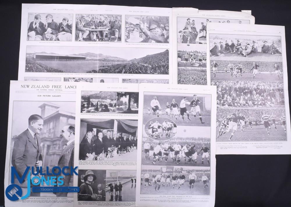 Selected Large Cuttings from NZ and Australian Periodicals, 1930: British and I Lions Tour (Qty): Portfolio of large-spread newspaper and magazine cuttings on the Lions tour from both sides of the Tasman Sea, including lengthy match reports, opinion, previews, reviews and gossip, many well and glossily-illustrated - in action and at leisure and at functions. Taken together they present a very evocative and accurate 'feeling' for the tour and the times. How many more will have survived? Not to be missed! Part of the WGM Bonner 1930 BRFT Lions Collection
