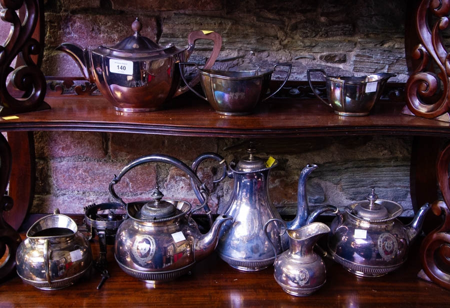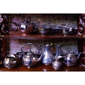 5 PIECE SILVER PLATED TEA SET + 3 PIECE PLATED TEA SET