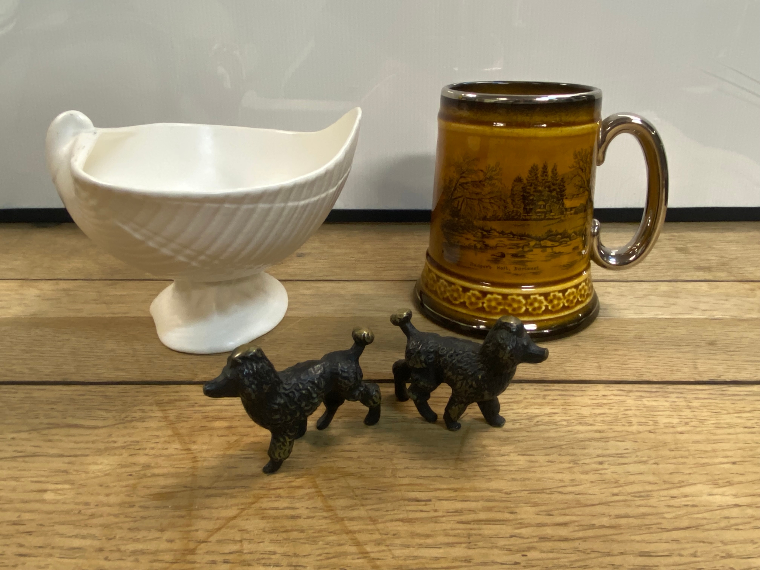 Mixed Collectables, Wedgwood Vase, Tankard & 2 x Metal Poodles