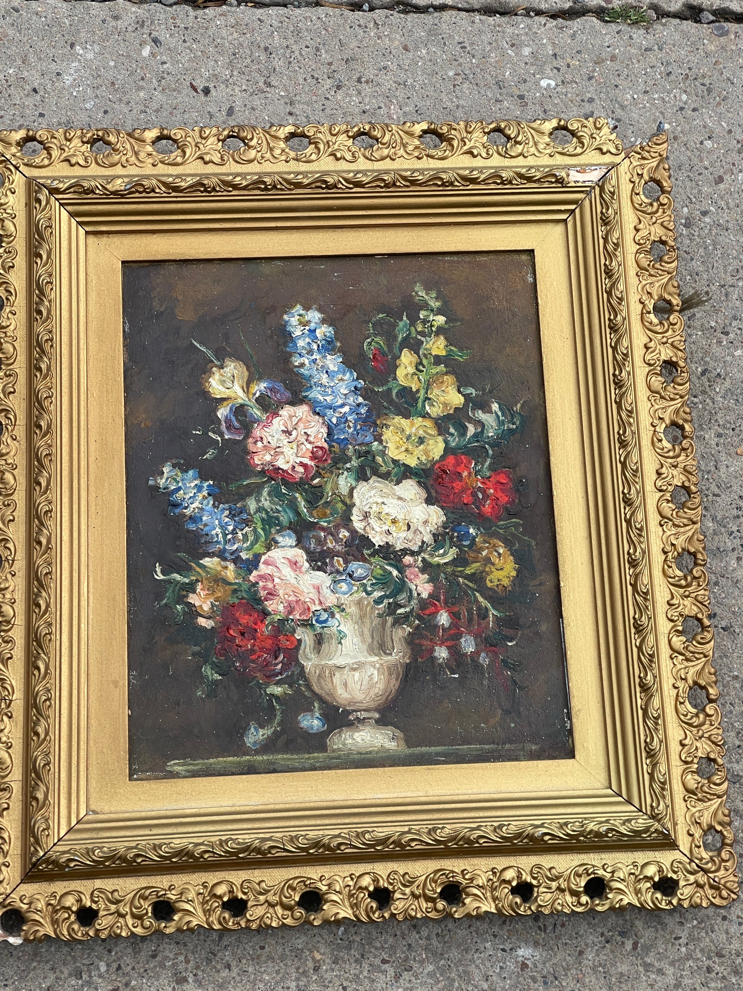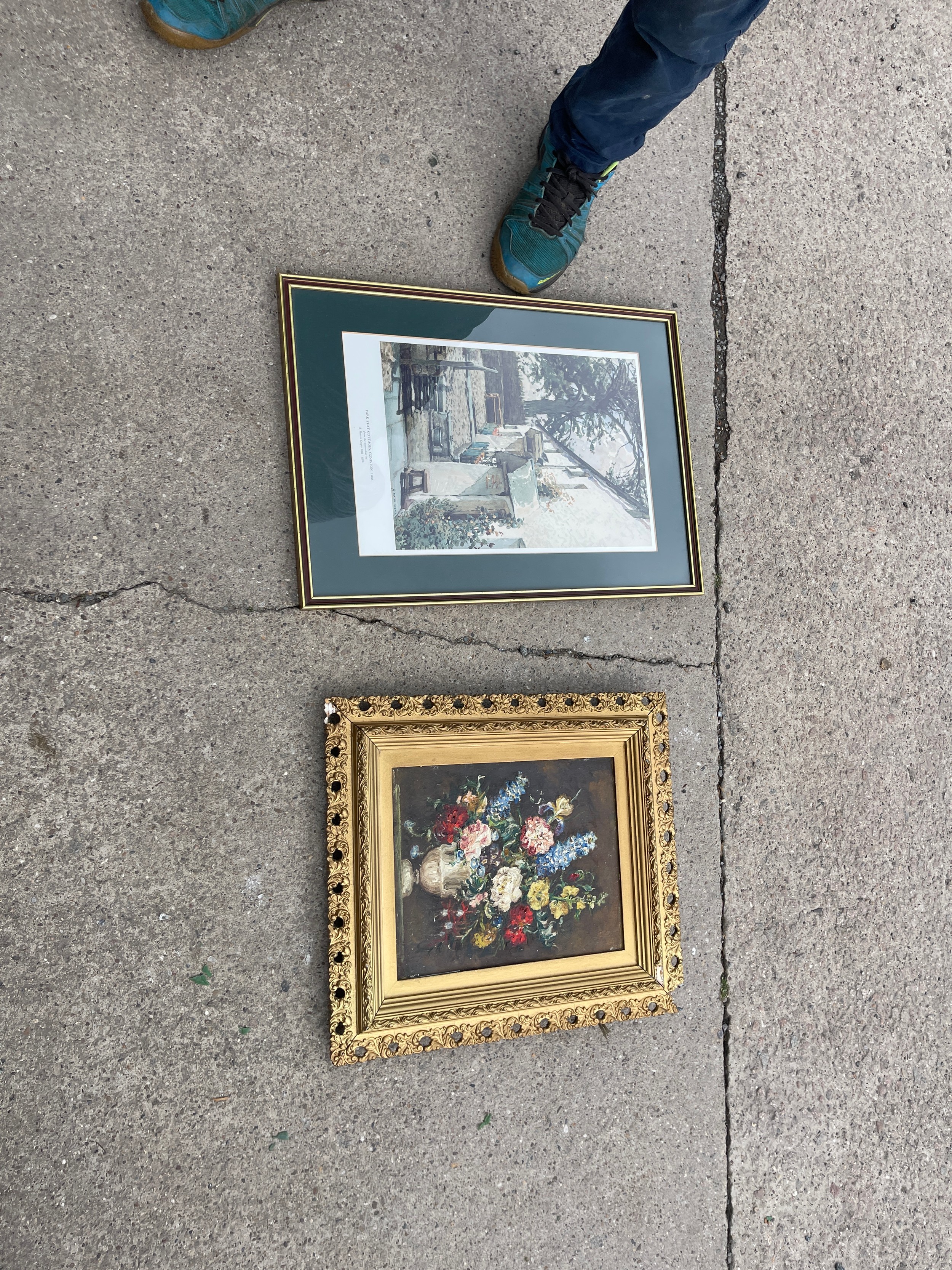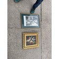 Vintage gilt framed oil painting and a framed print largest measures 22 inches tall by 16 wide