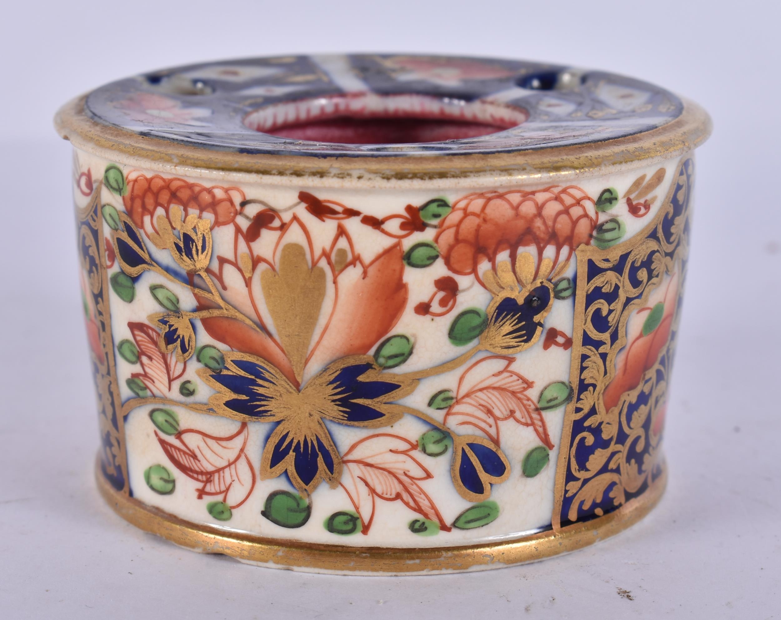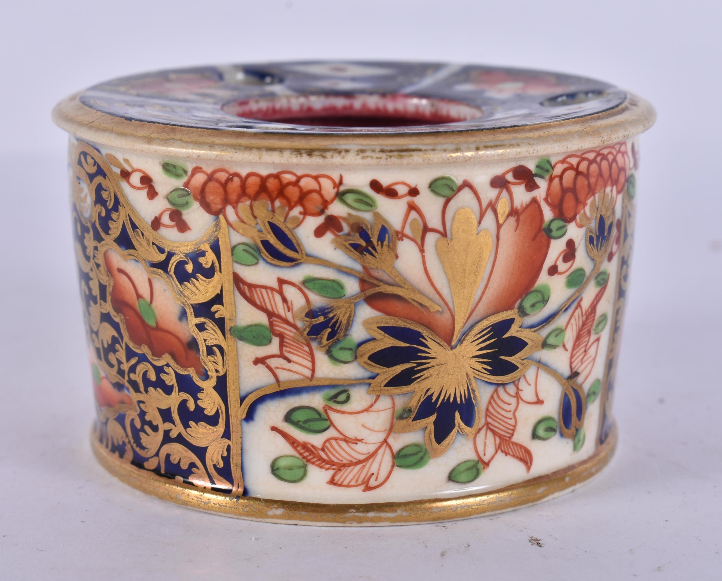 AN EARLY 19TH CENTURY DERBY IMARI PORCELAIN INKWELL. 6.5 cm ...