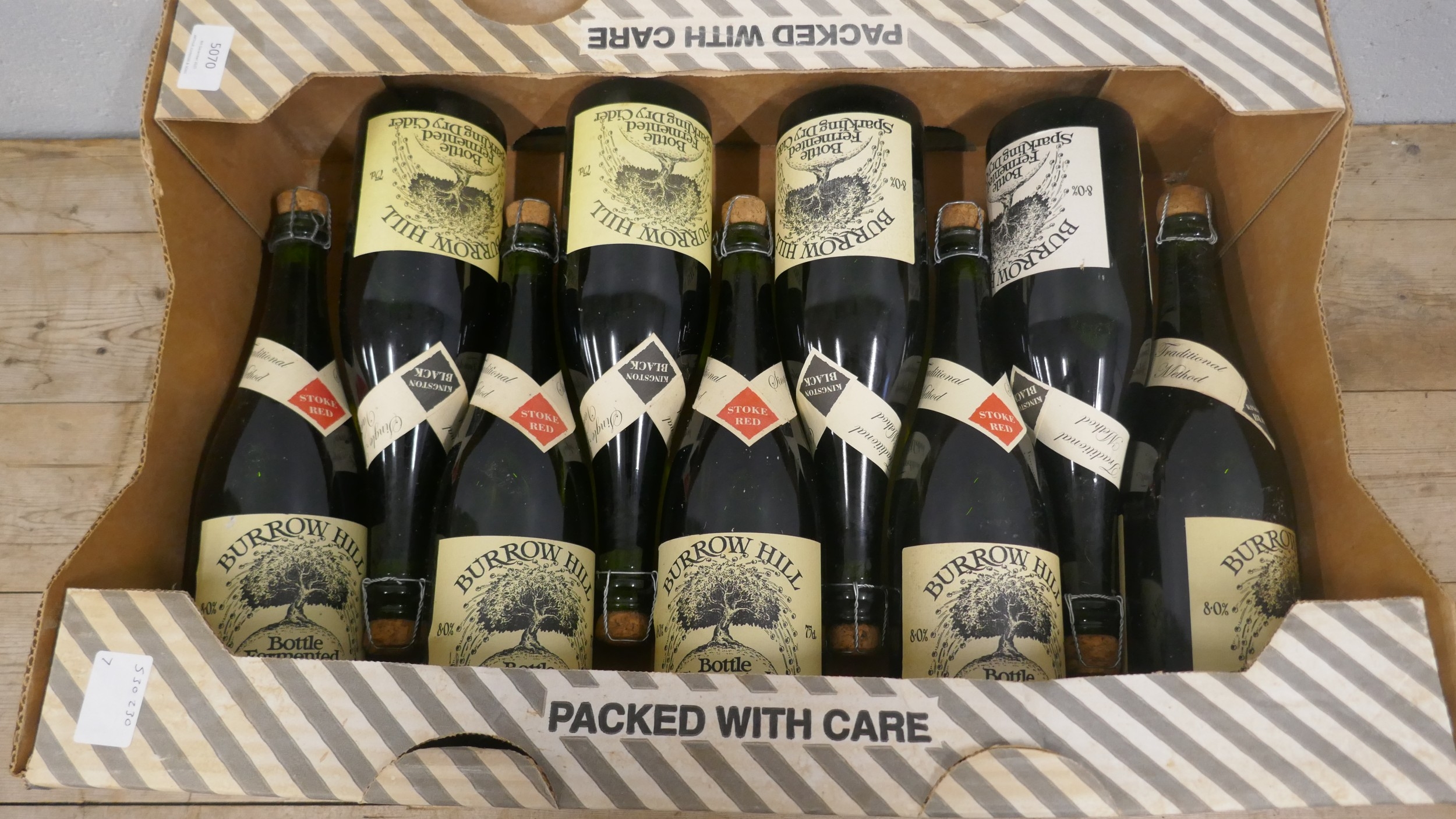 Nine bottles of Burrow Hill fermented sparkling dry cider including Stoke Red and Kingston Black