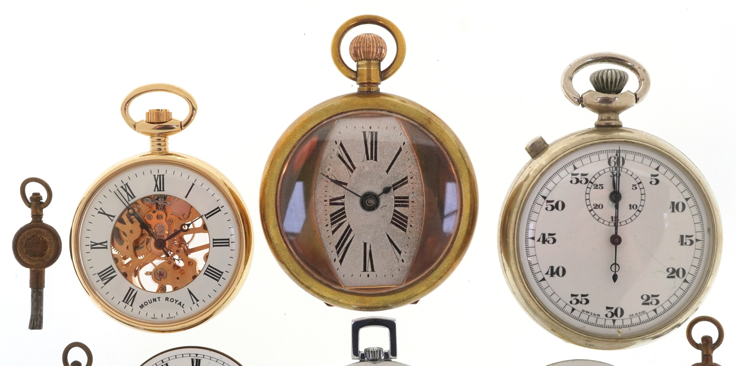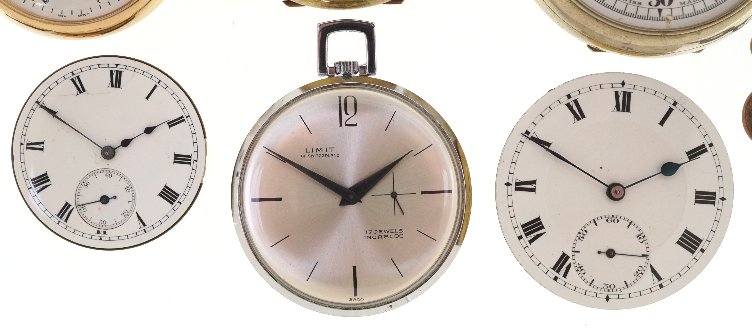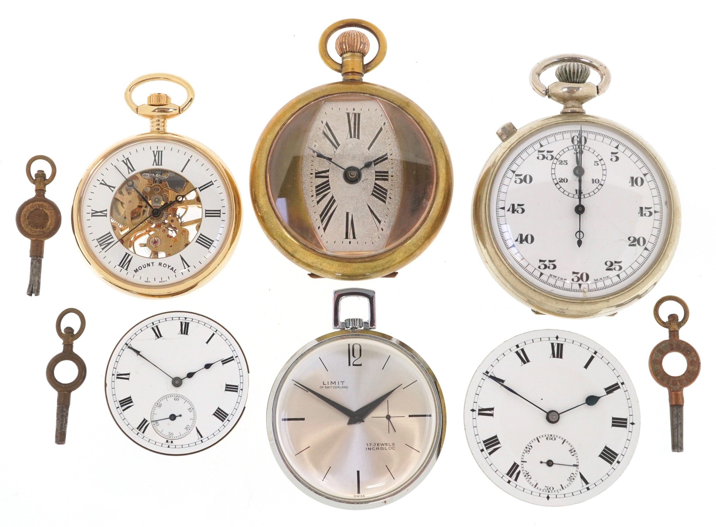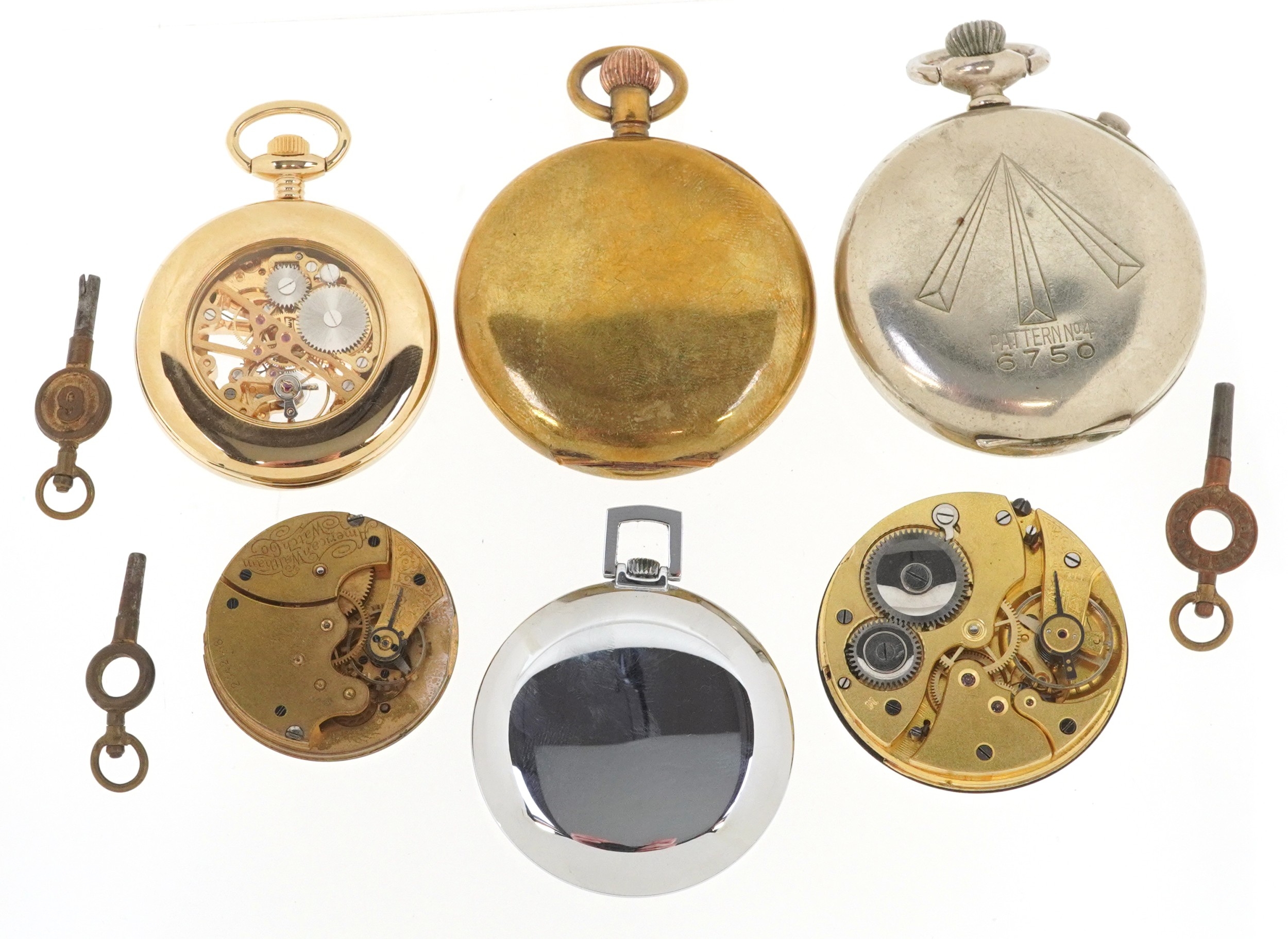 Antique and later pocket watches, pocket watch movements and a military interest stopwatch.