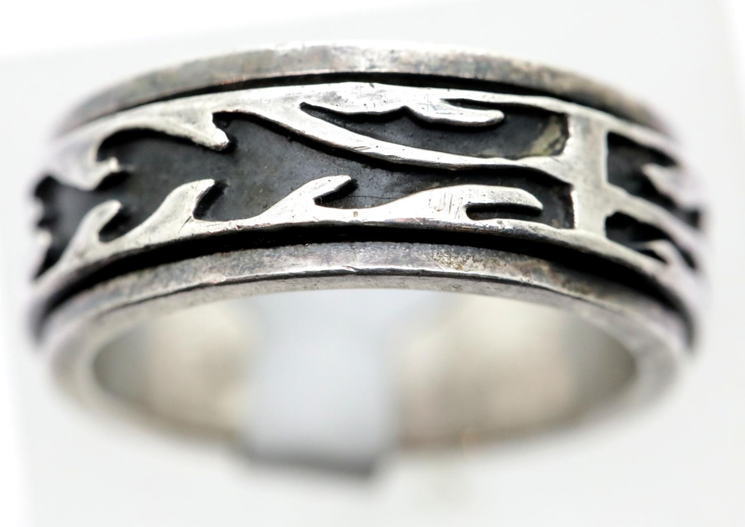 Gents silver 10mm wide spinner ring, size R. P&P Group 1 (£14+VAT for the first lot and £1+VAT for subsequent lots)
