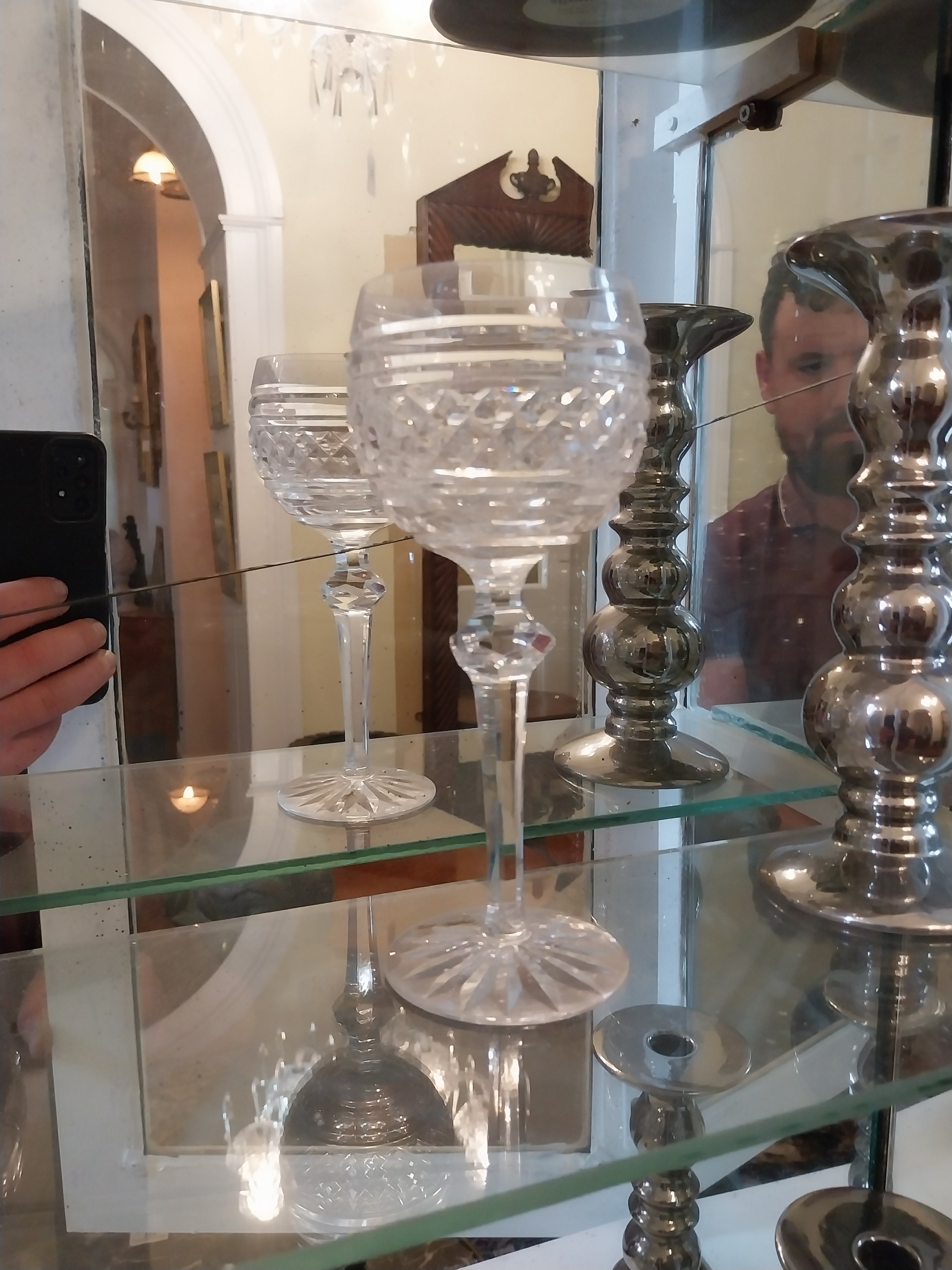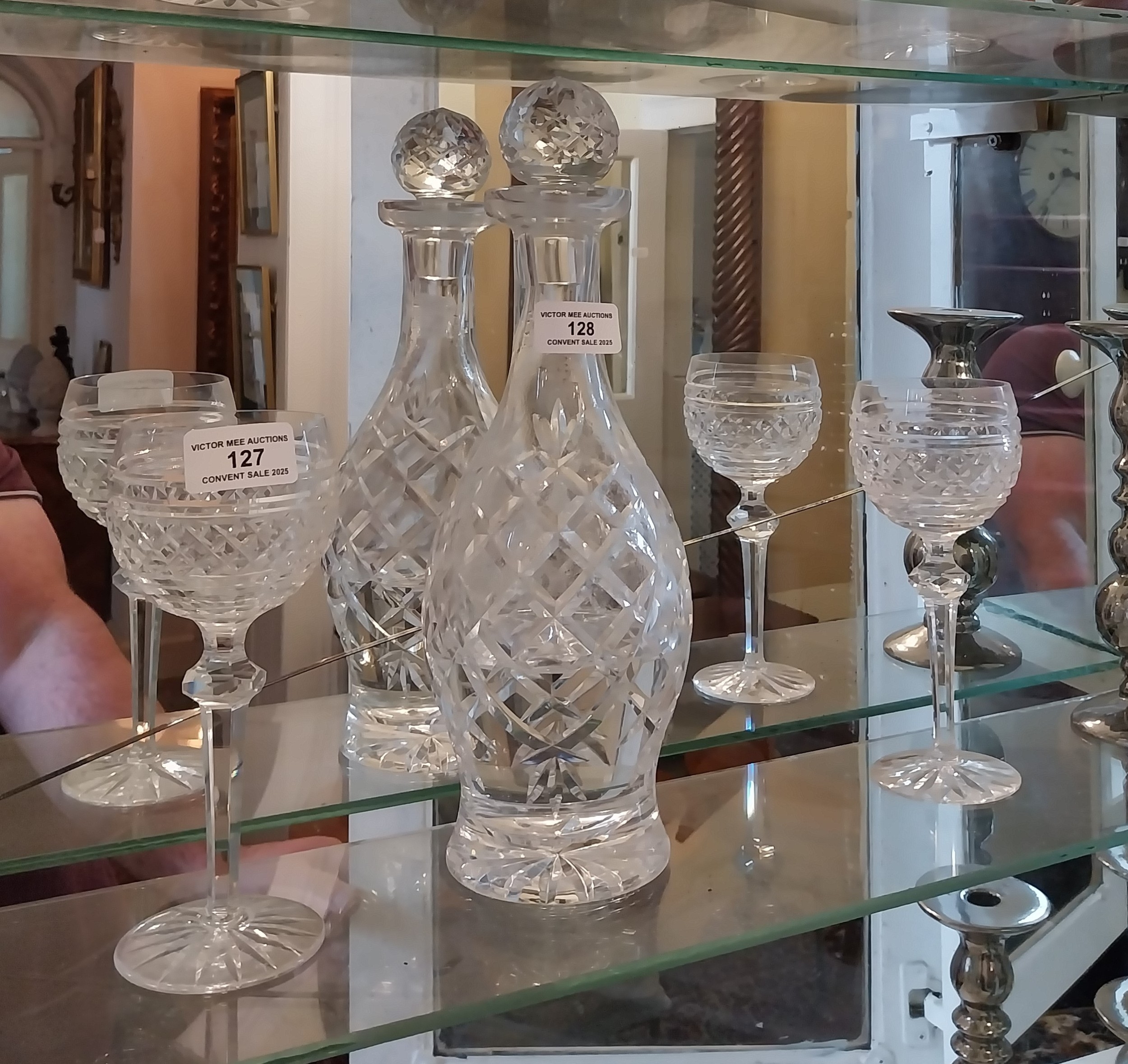 Set of four Waterford Glass Crystal wine glasses { 19cm H X 8cm Dia }.