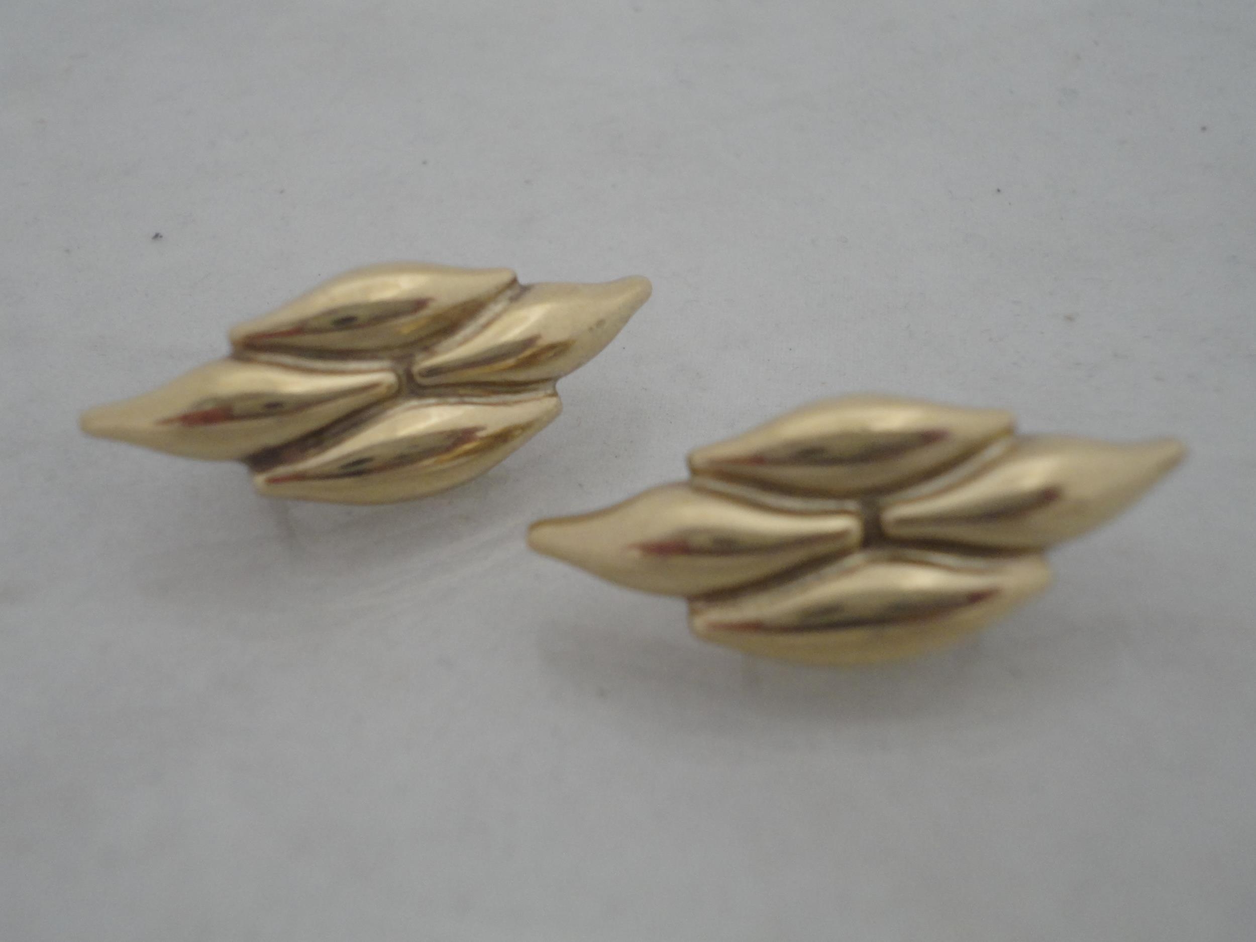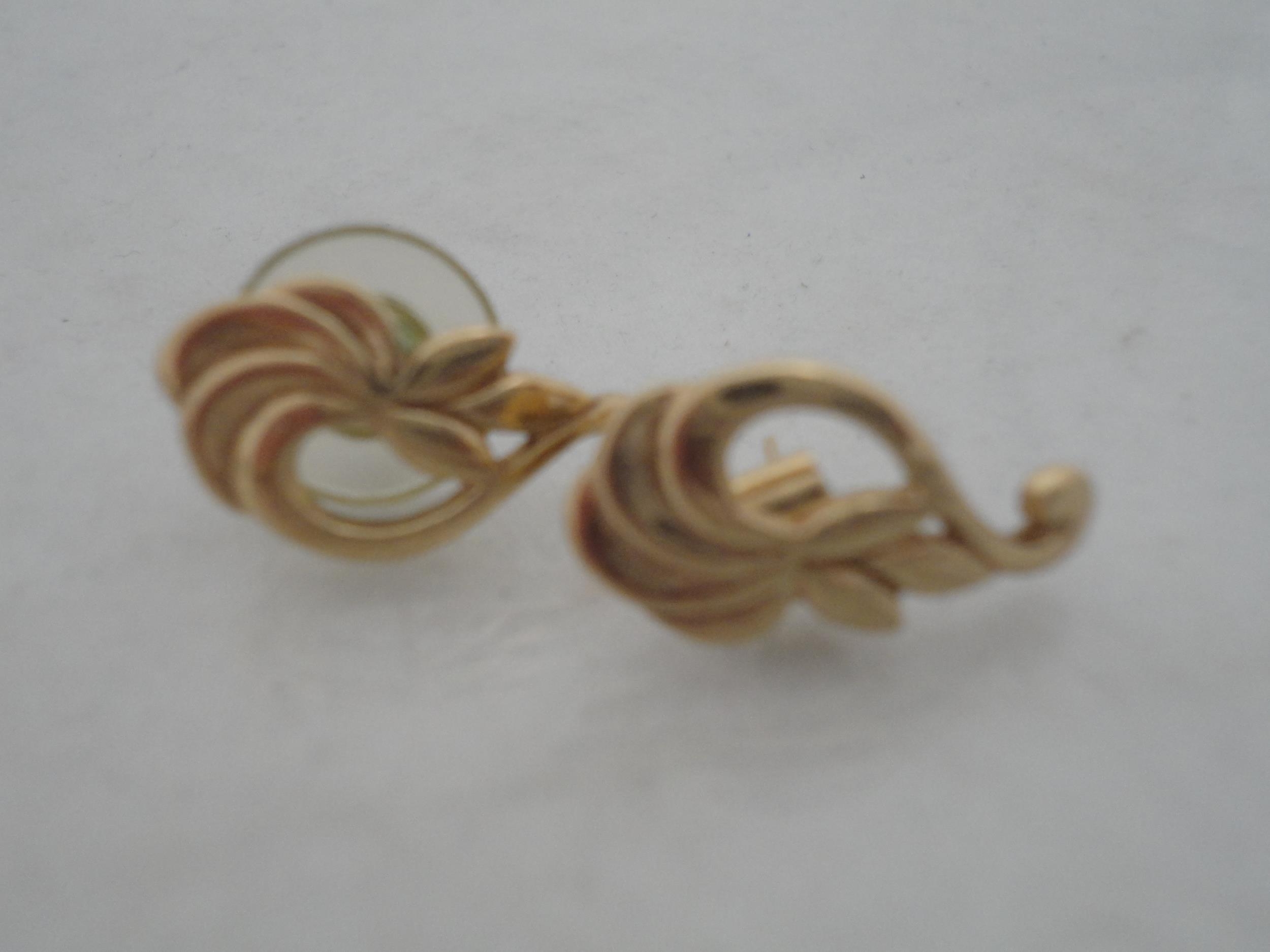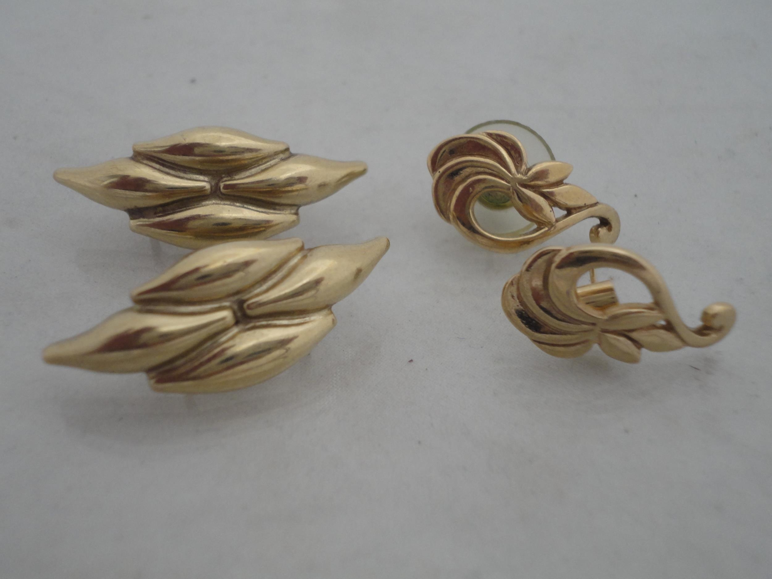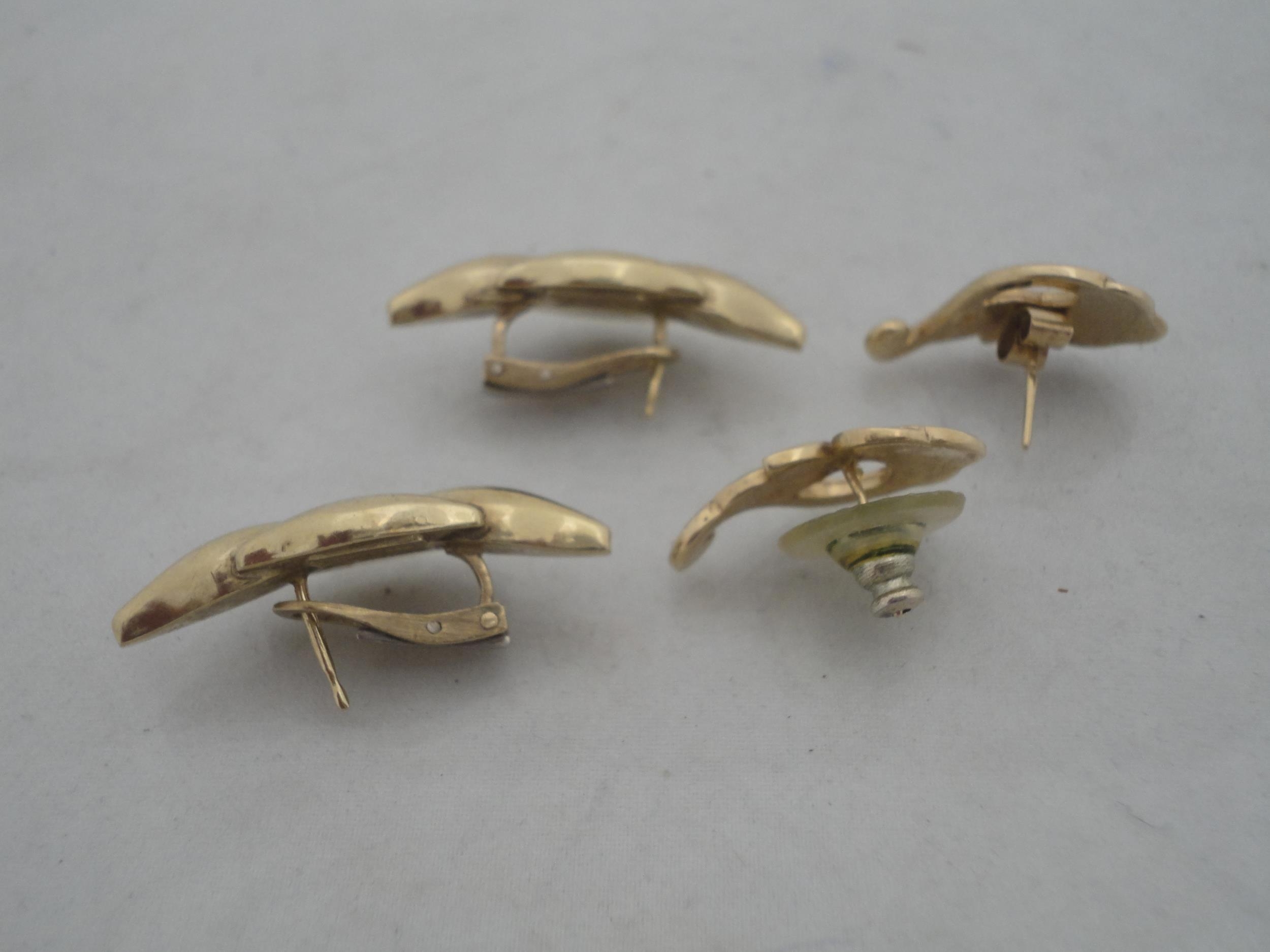 Pair of 9ct gold earrings, 7g gross, and a pair of yellow metal earrings.