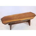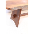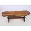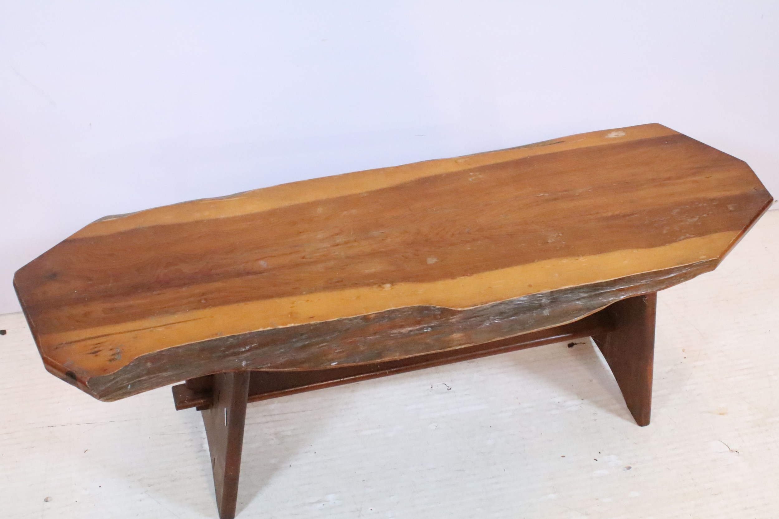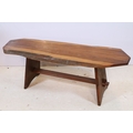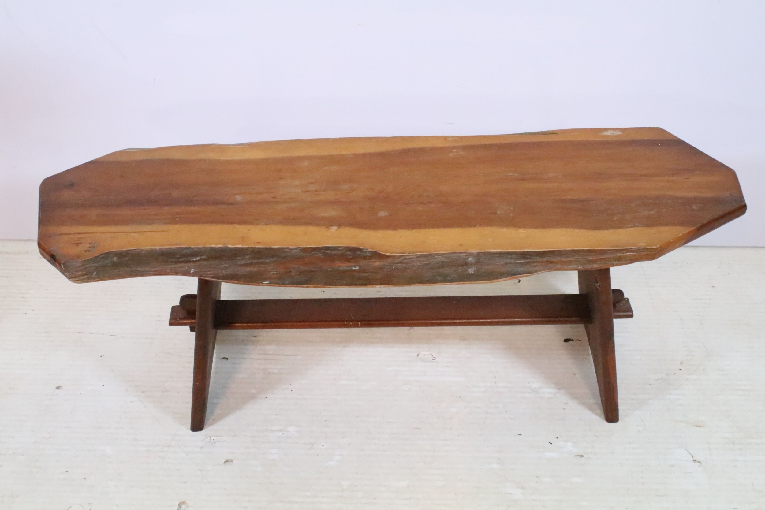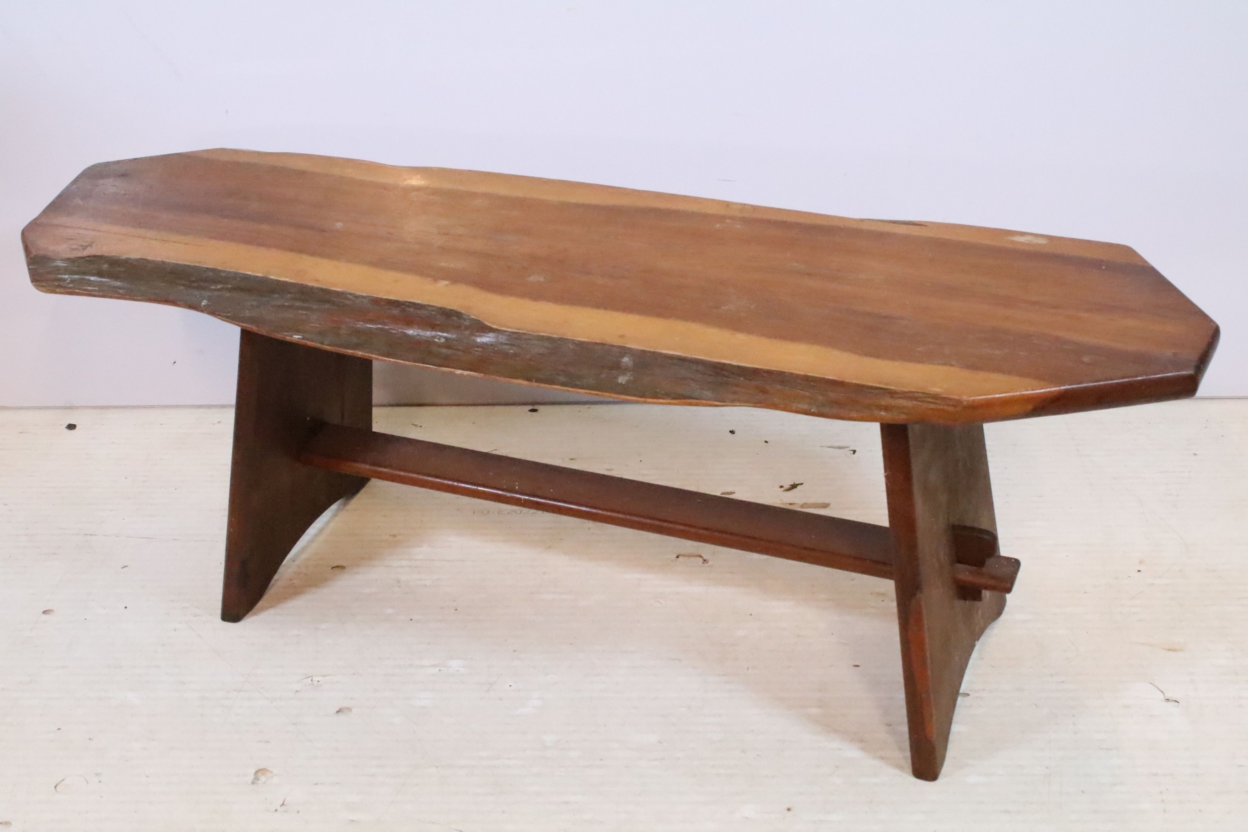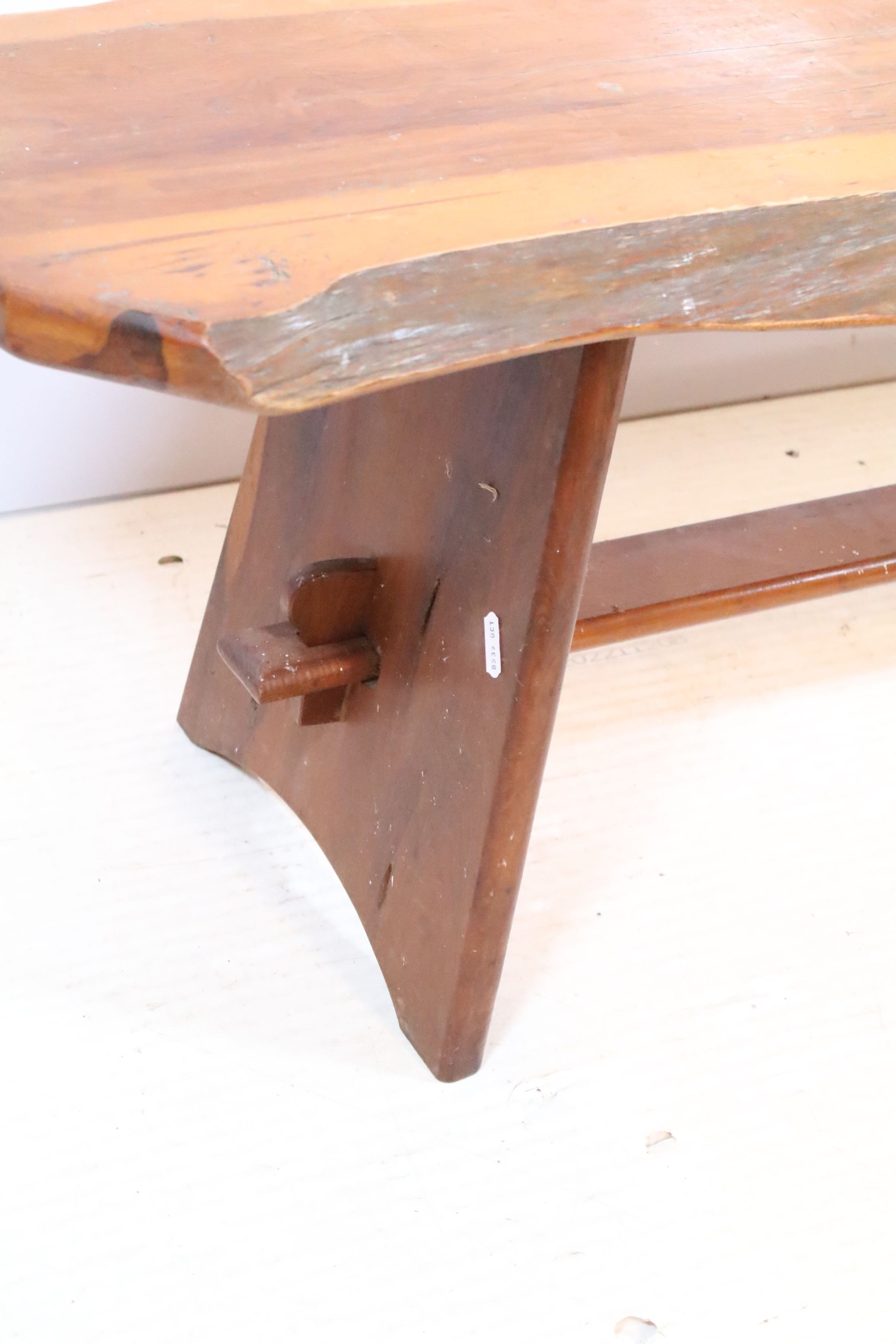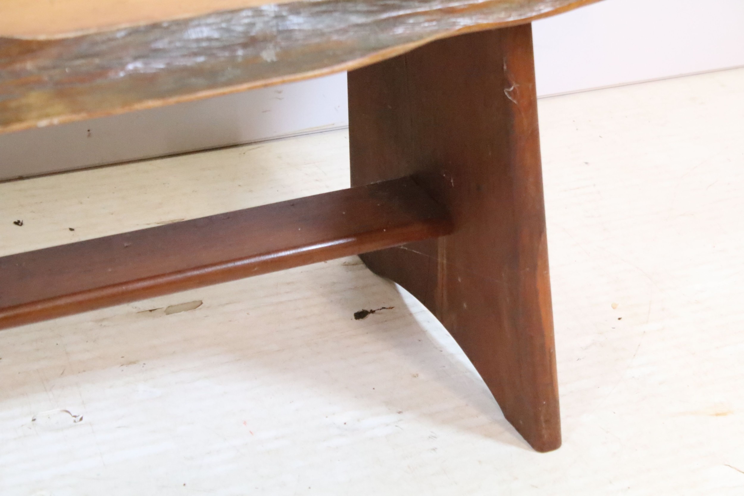 20th century fruitwood bench, of low proportions, raised on trestle base, L 109cm x H 38cm