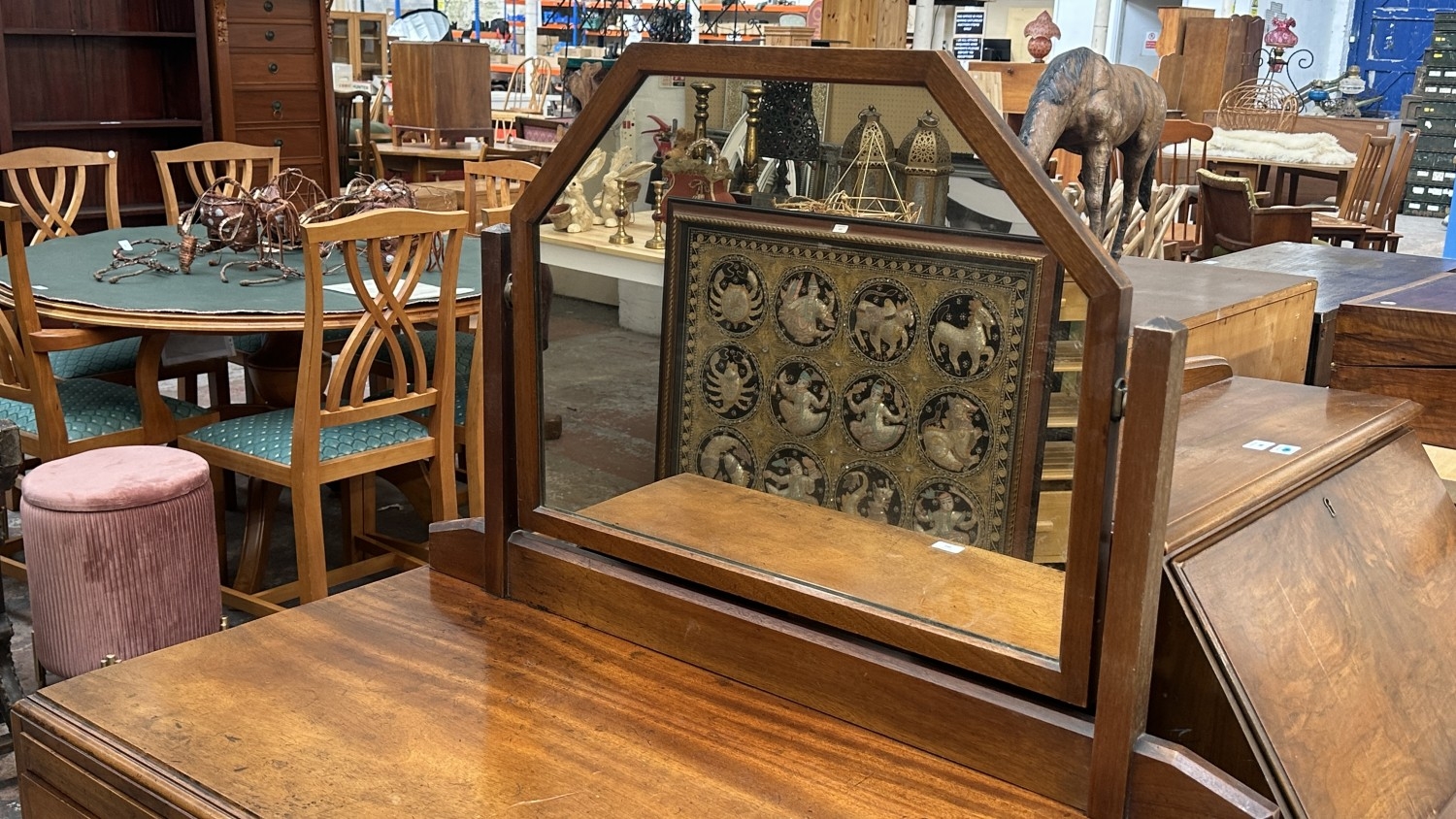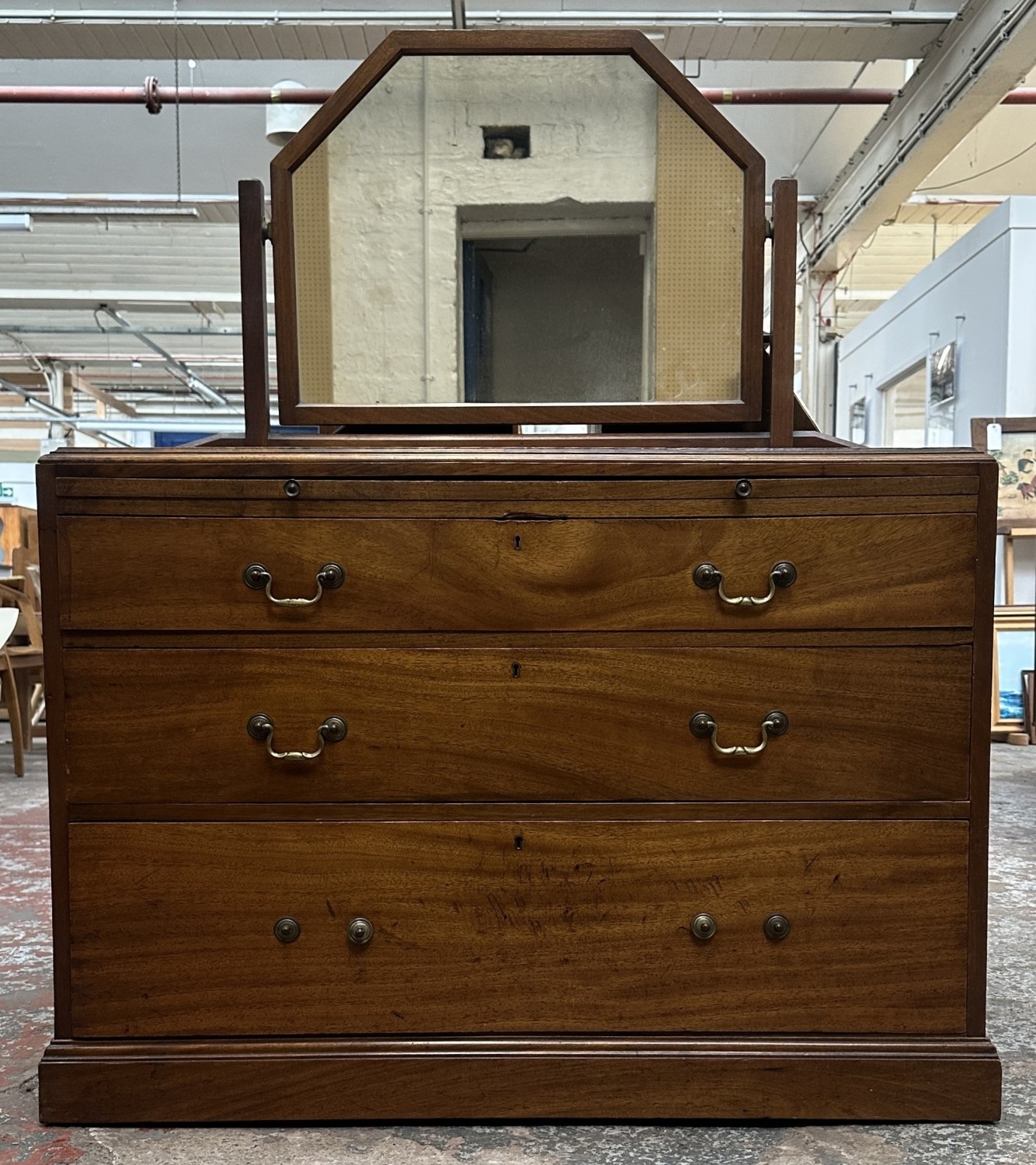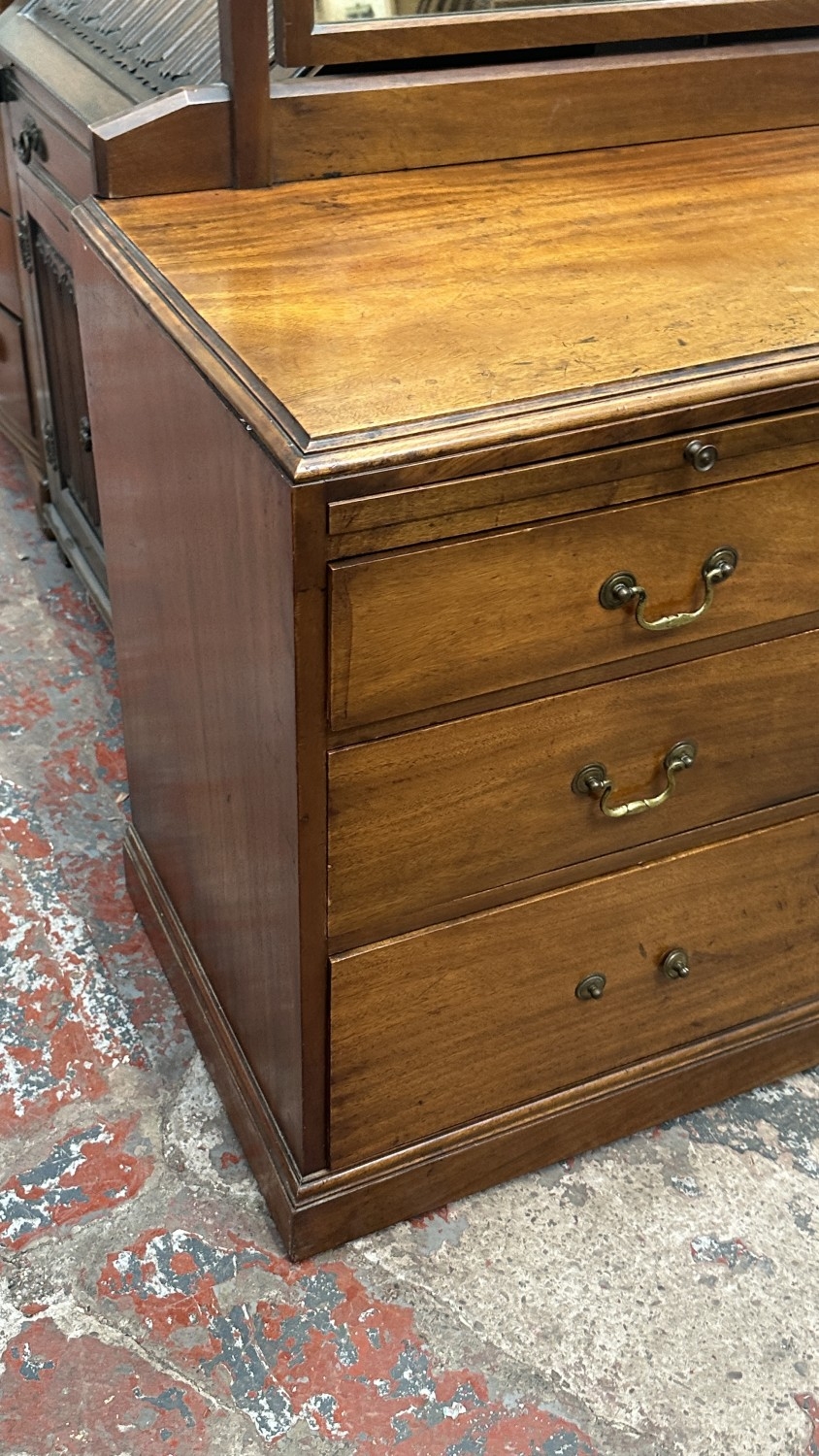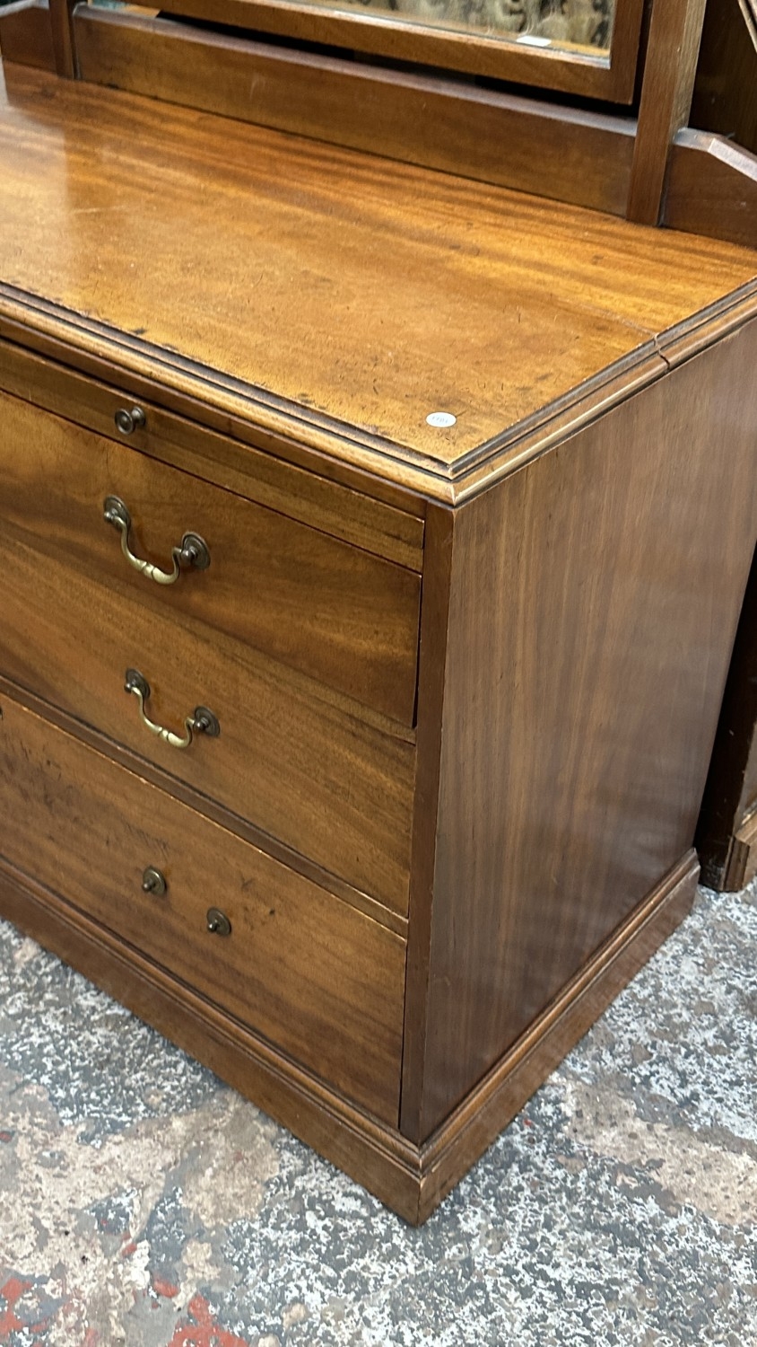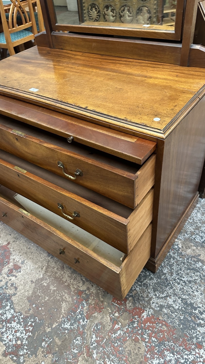 A late 19th/early 20th century mahogany dressing chest with upper mirror and brushing slide - approx. 140cm high including mirror x 106cm wide x 51cm deep