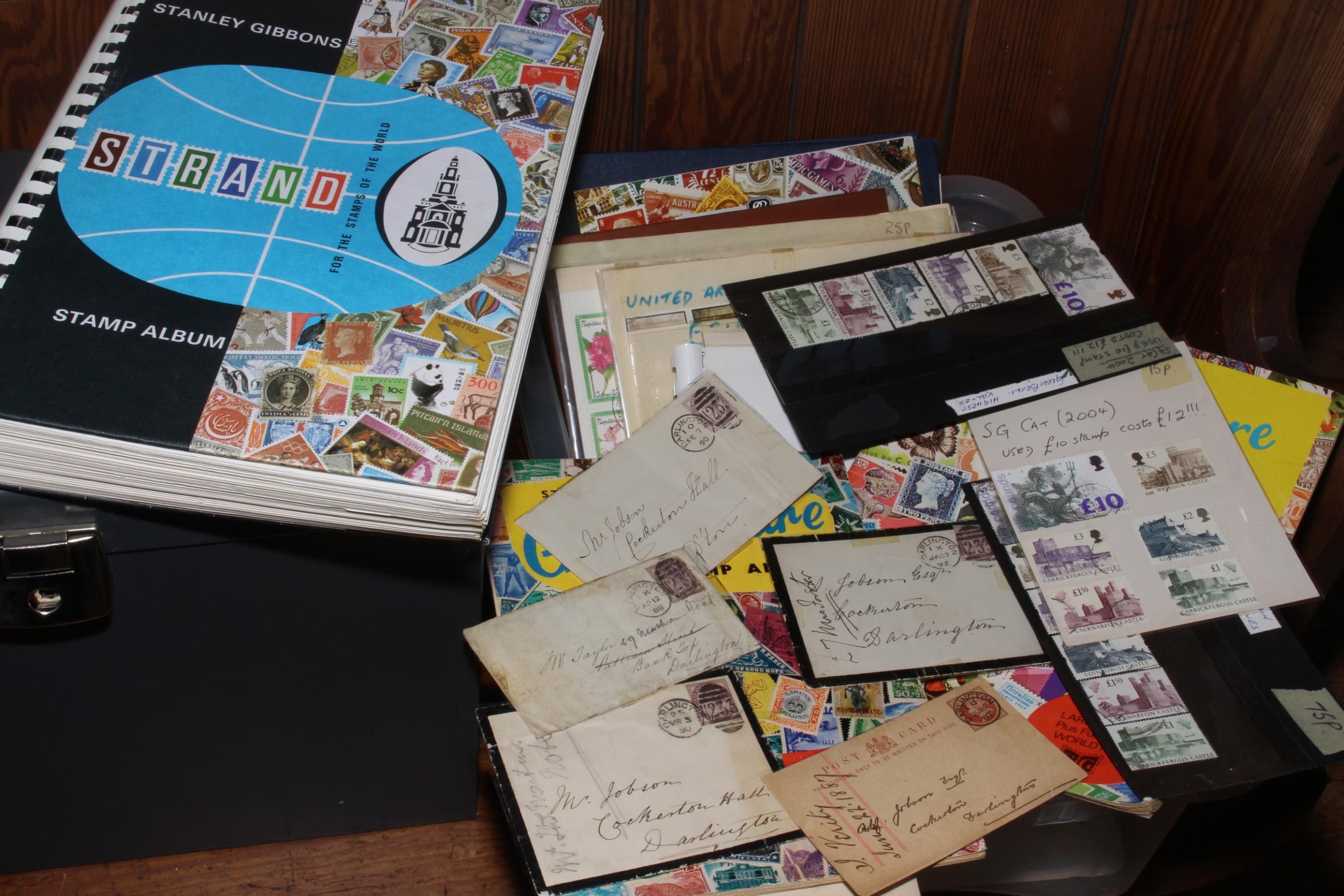 A good collection of c1840 to c1950s stamps housed in albums. Including Stanley Gibbons GB 1840 to 1976 (penny reds), China High Revue, Australia food stamps. Together with c1870- Darlington postally used envelopes (funeral?), Great Britain Castle Series, £10 stamps etc.
