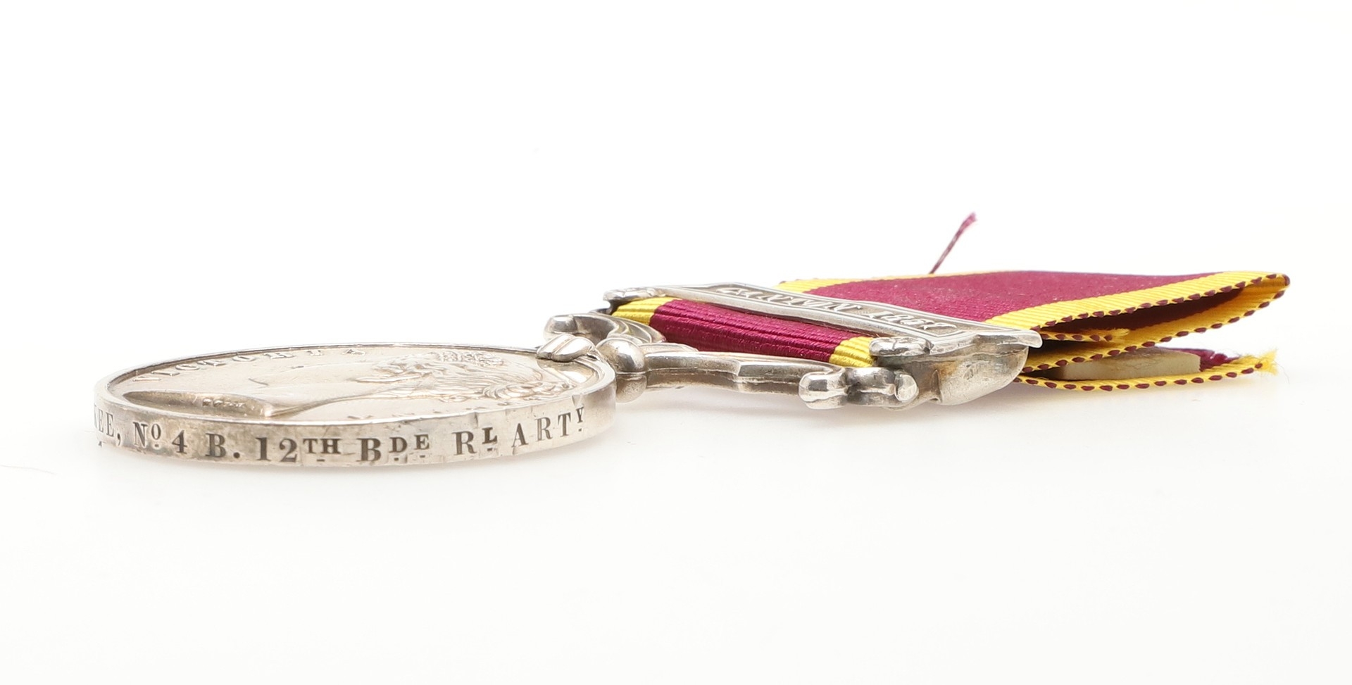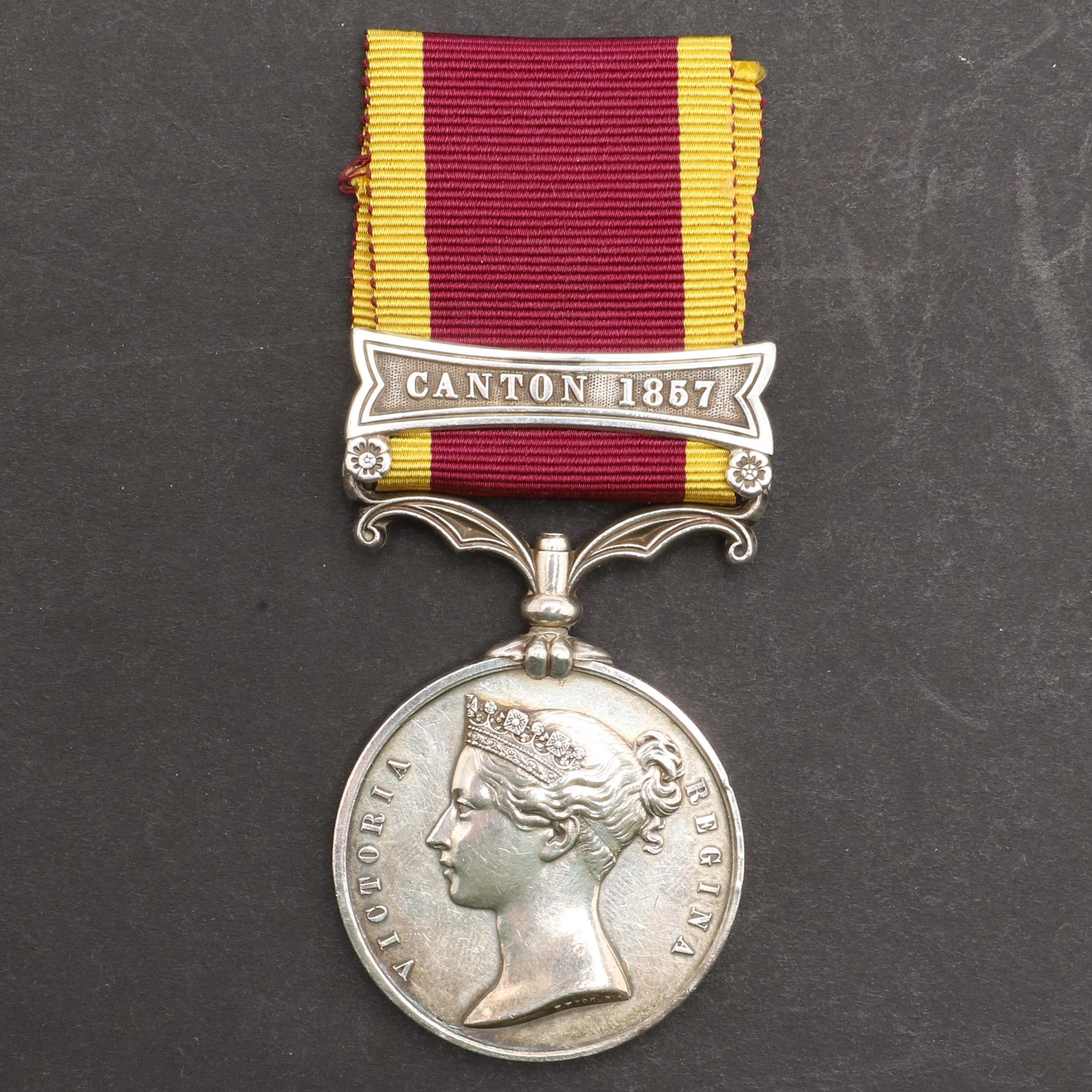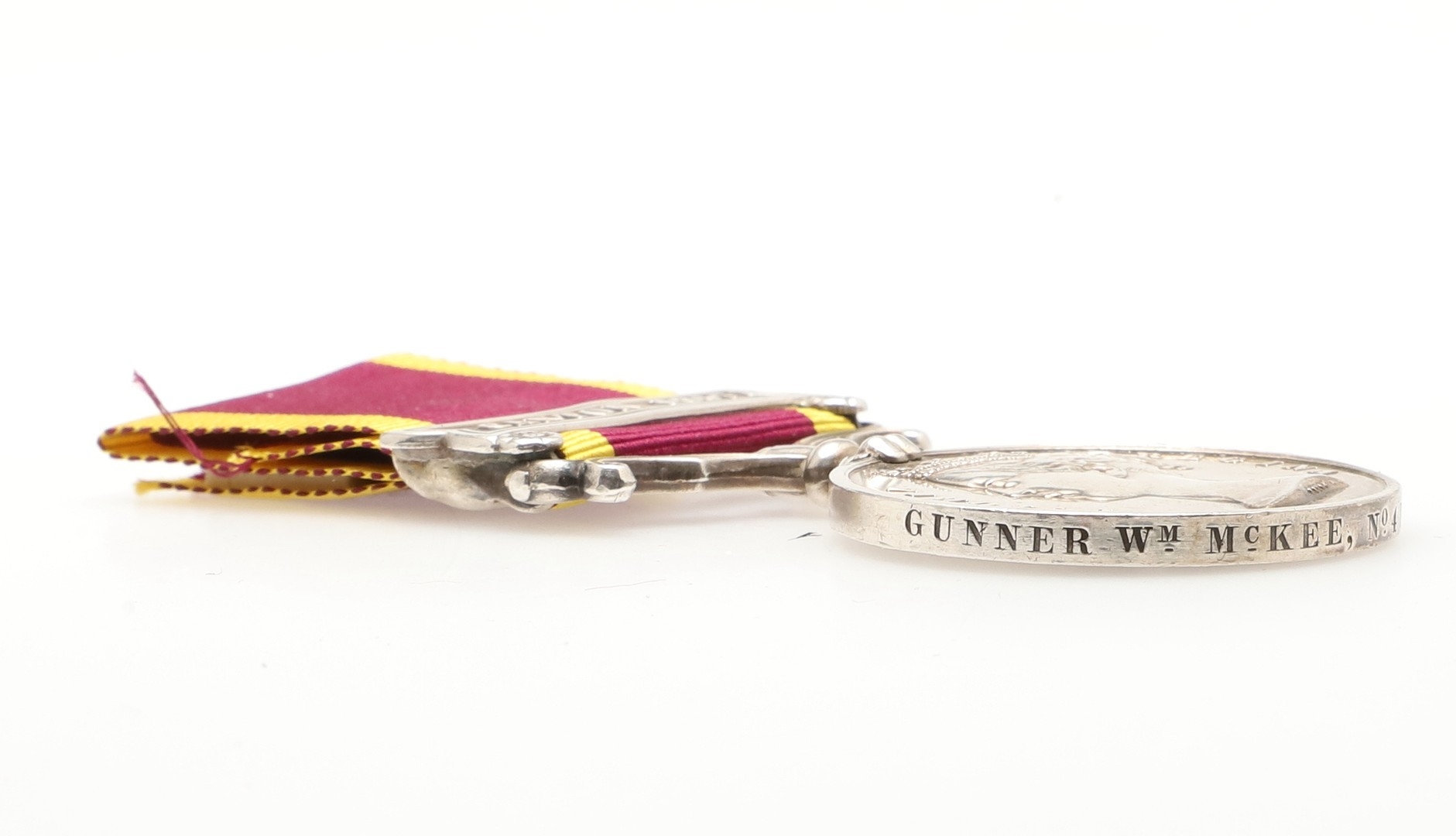 A SECOND CHINA MEDAL WITH CANTON 1857 CLASP TO THE ROYAL ARTILLERY. A Second China medal with Canton 1857 named to Gunner Wm McKee No.4 B 12th Bde Rl Arty, on second type ribbon. William Mckee is recorded with regimental number 406, his is one of 105 such clasps to the Royal Artillery split across three units the 4/2, 4/12 and 6/12. With copied roll extract.
