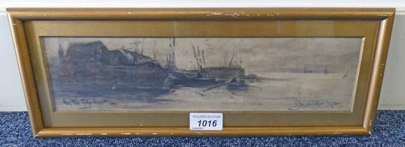 JAMES MACMASTER, ON THE COAST, SIGNED, GILT FRAMED WATERCOLOUR, 8.5 X 34 CM