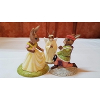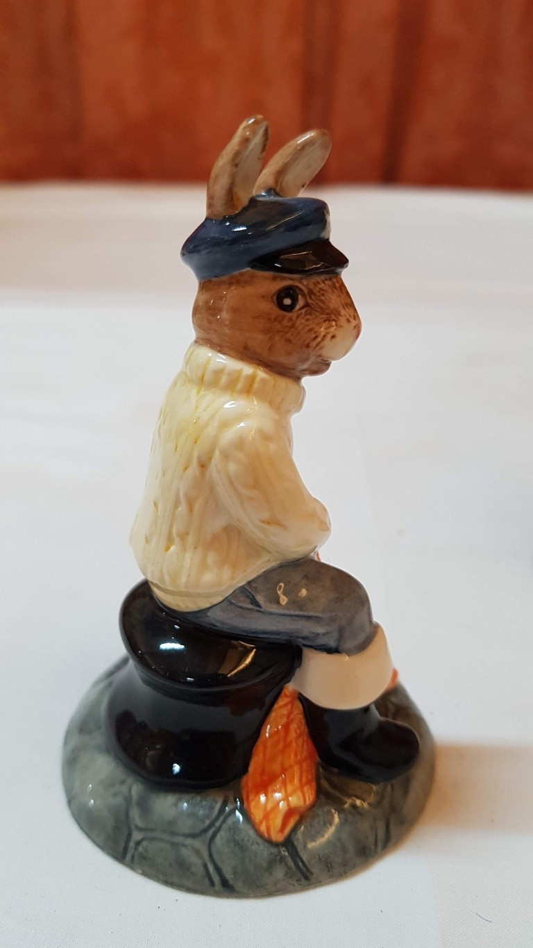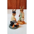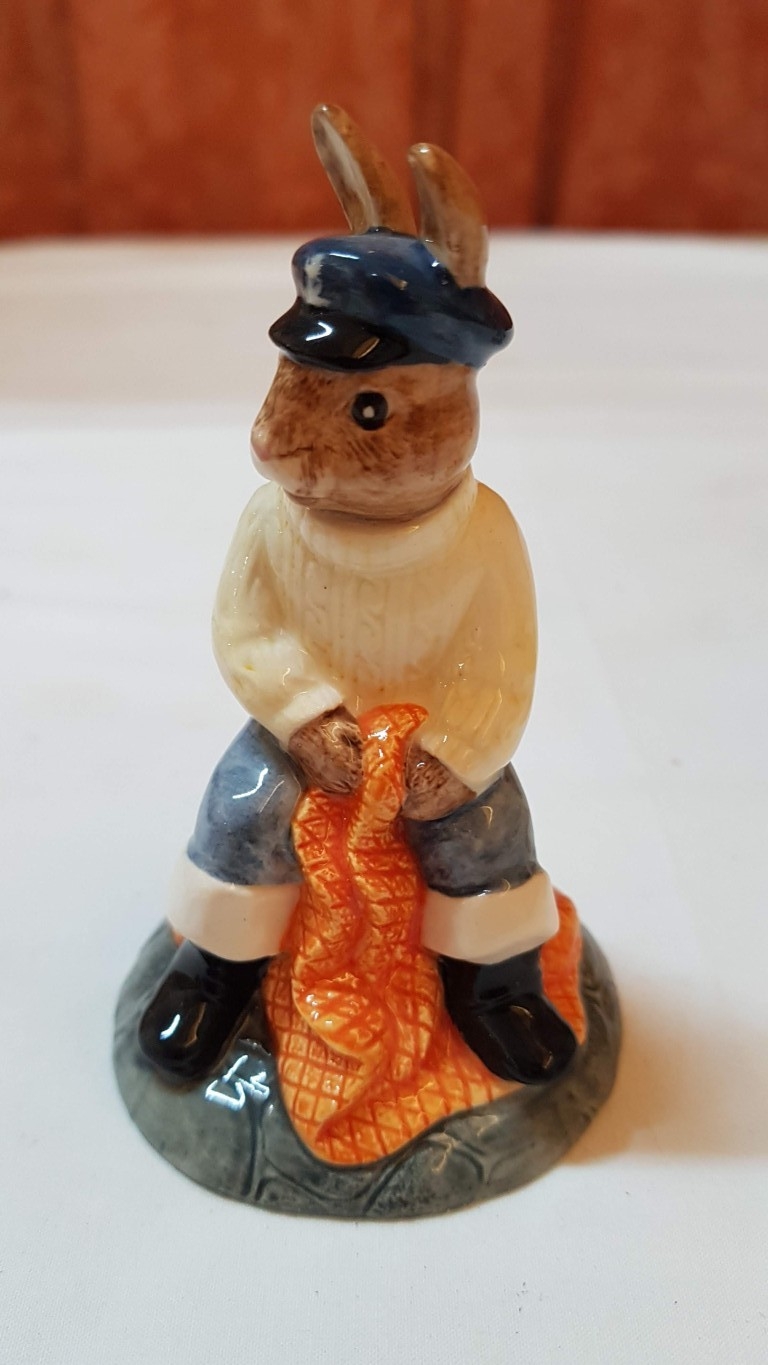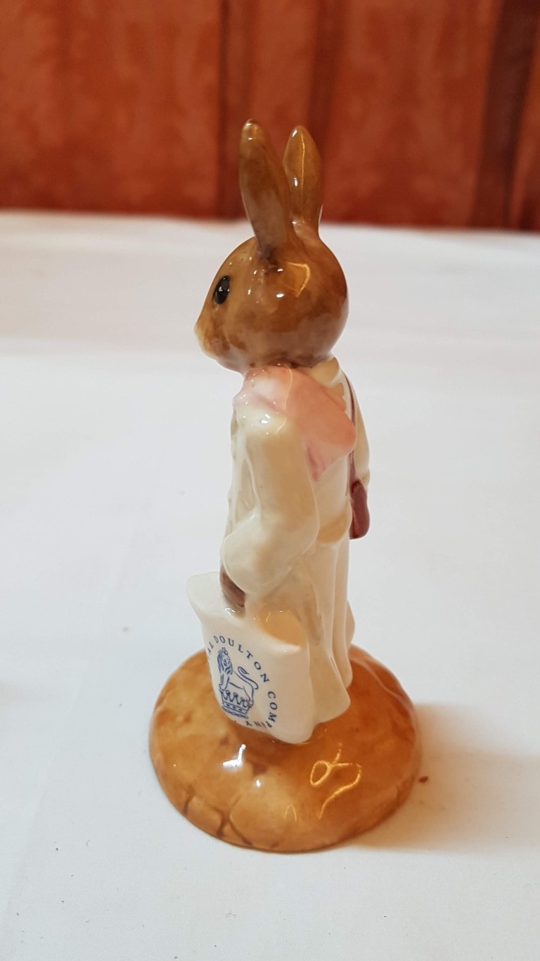 Vintage 2x Royal Doulton Bunnykins Porcelain Figurines; 'Shopper Bunnykins' DB233, Approx. H: 11.5cm and 'Fisherman Bunnykins' DB170, Approx. H: 10cm, Hand Made and Hand Decorated. (2)