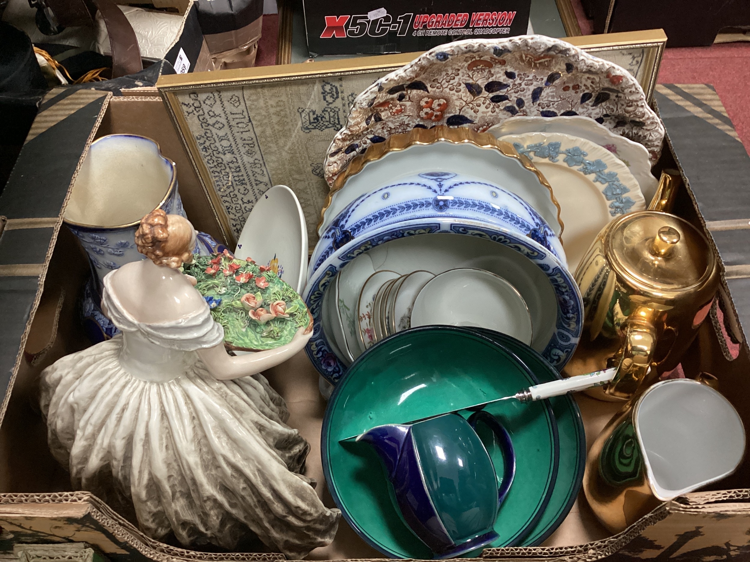 Figurine XIX Century Sampler, Denby, Worcester and other pottery:- One Box.