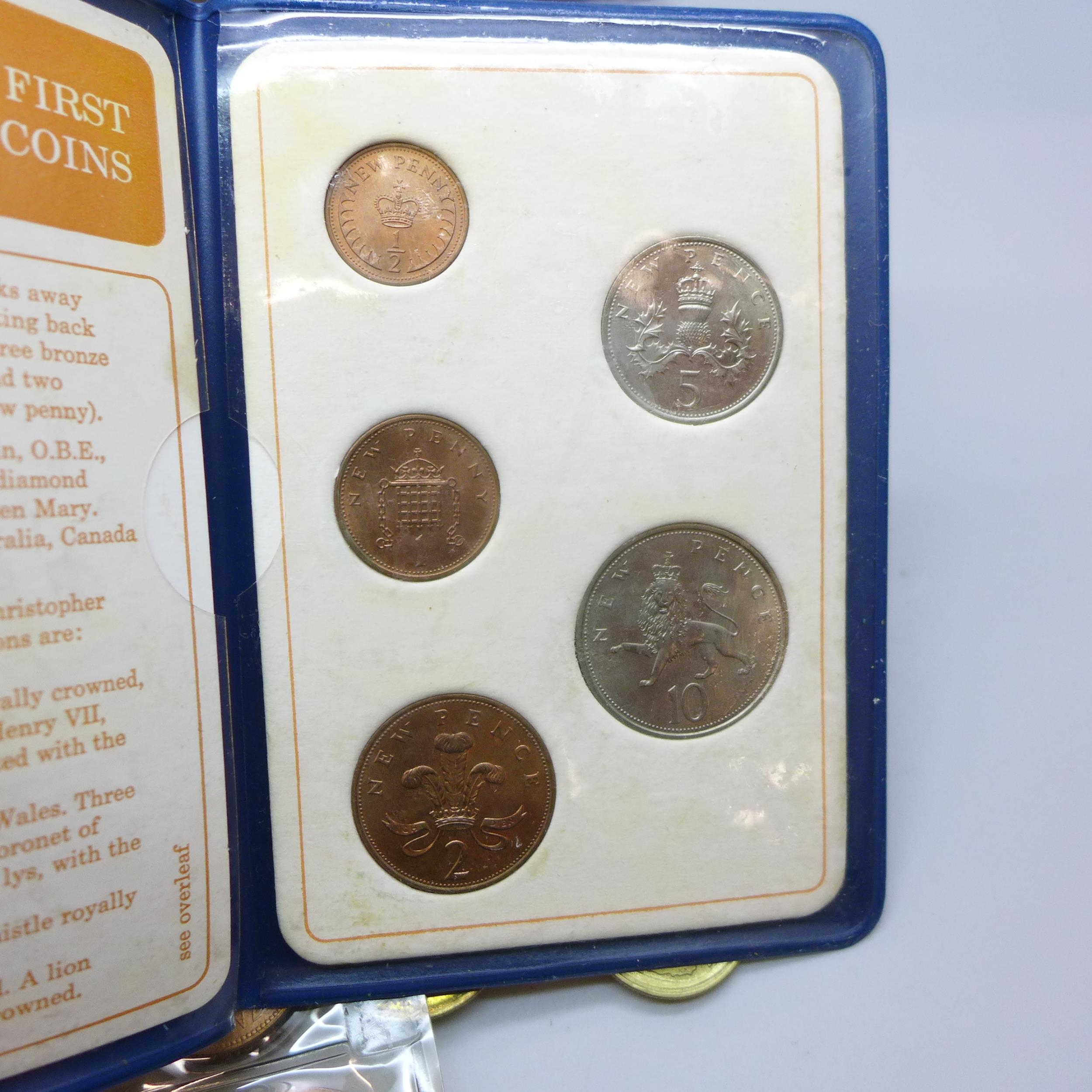 A collection of world coins, British coins and First Decimal coin sets