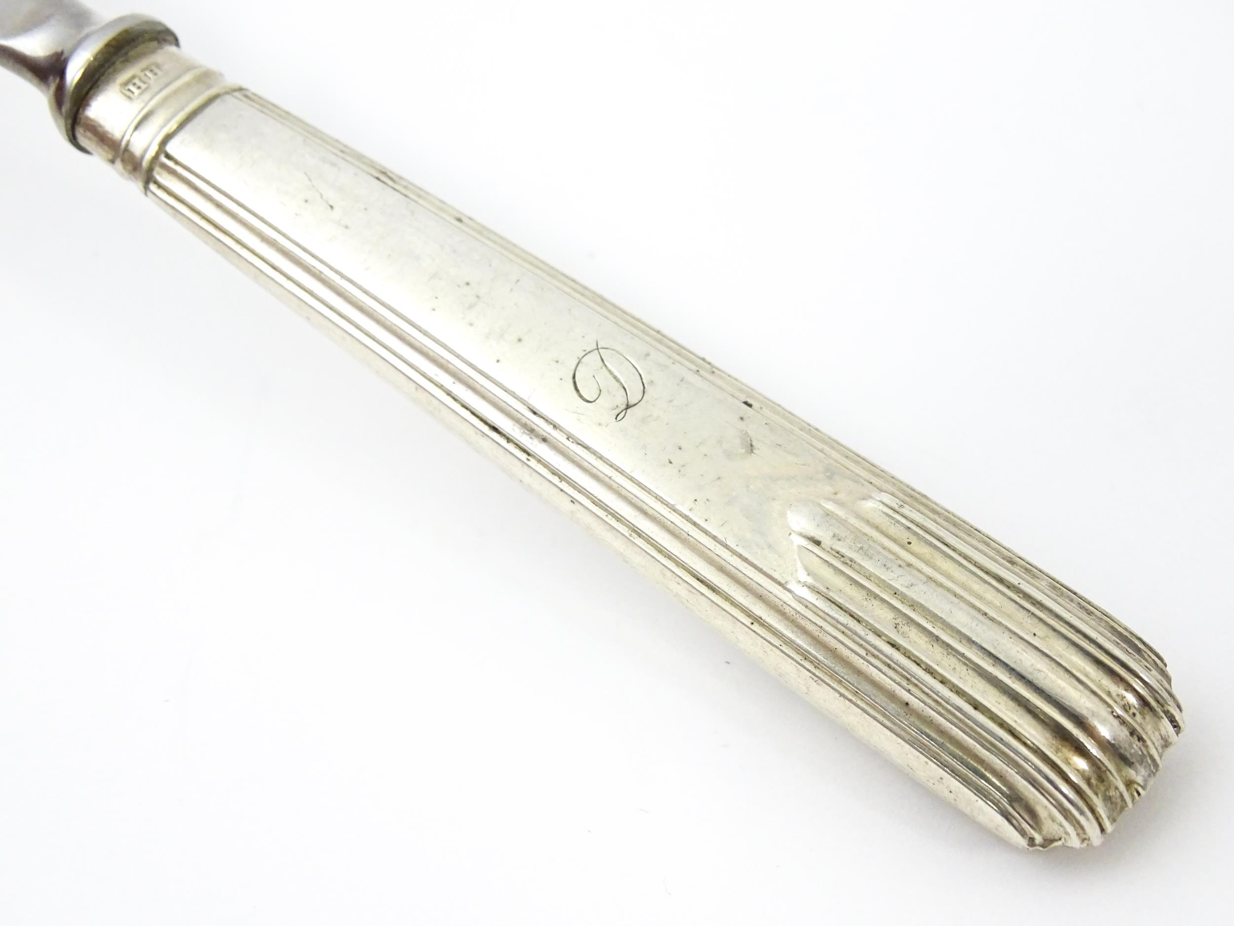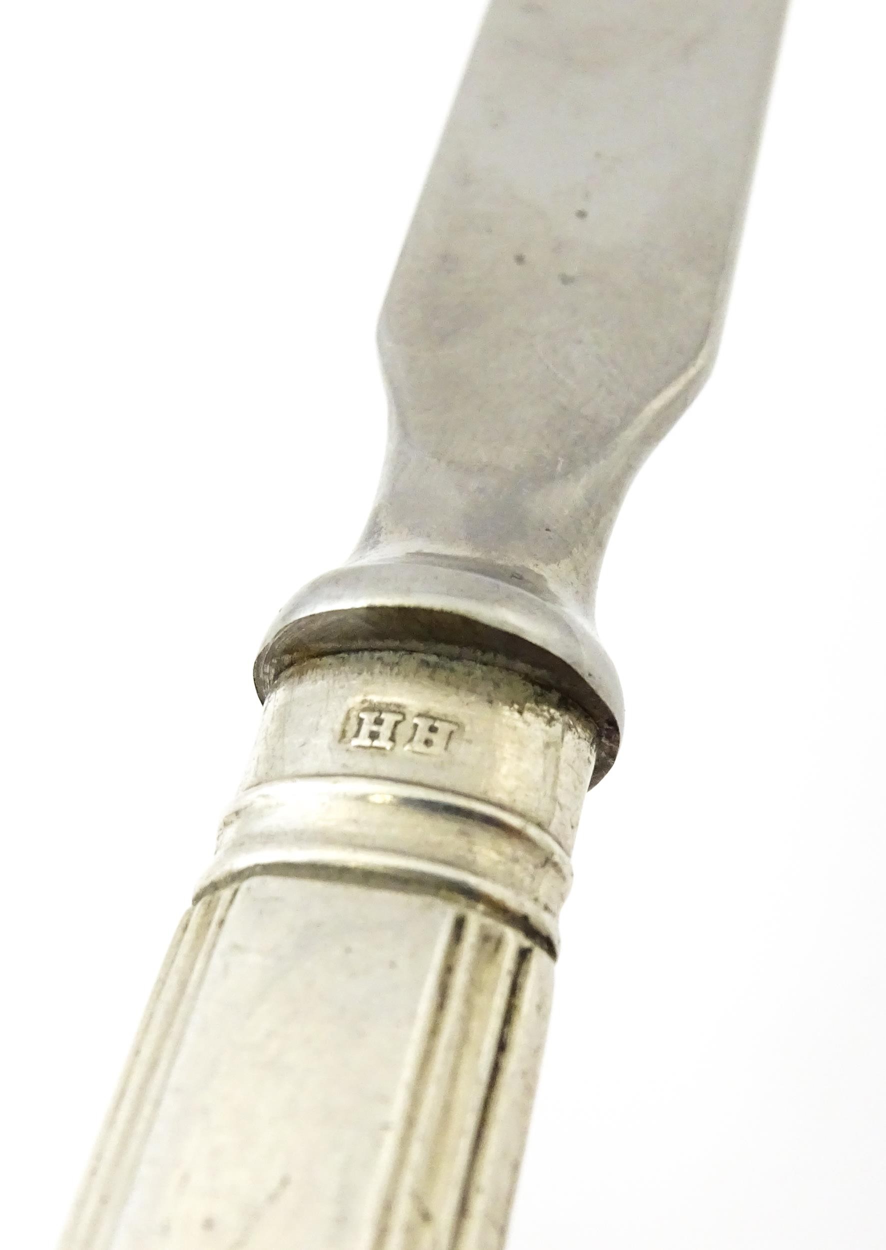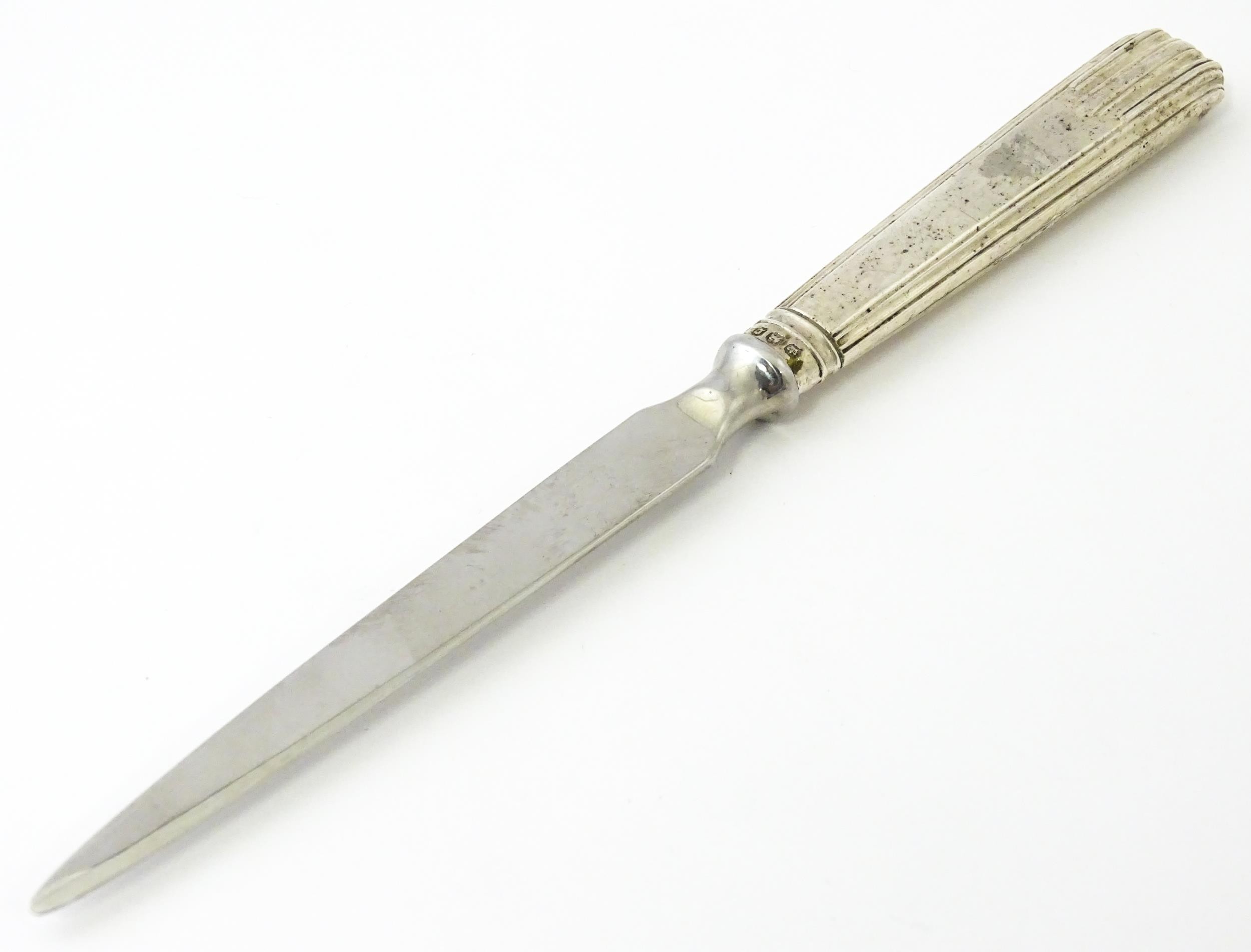 A silver handled letter opener / paper knife. Approx. 8 1/2" long