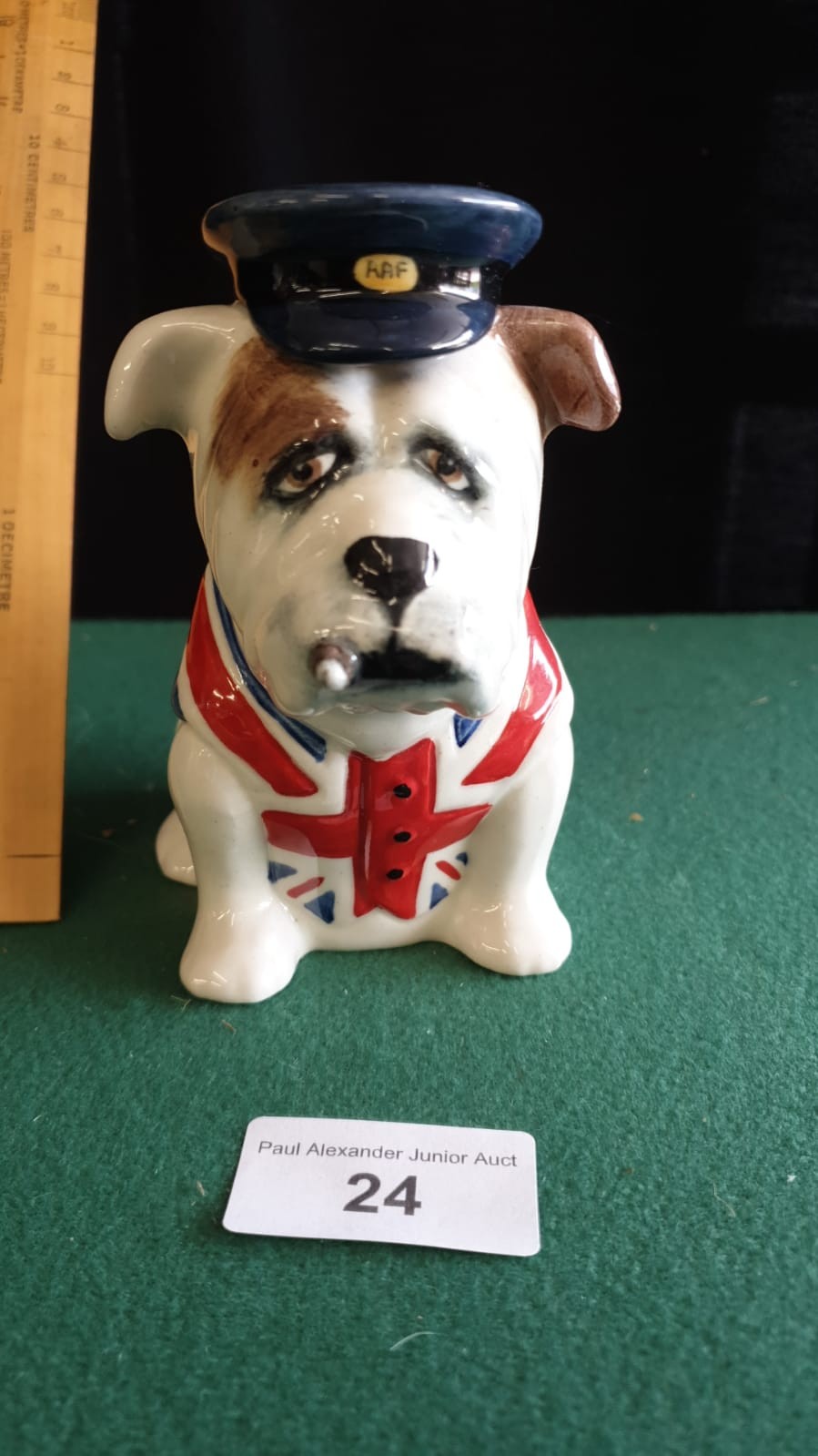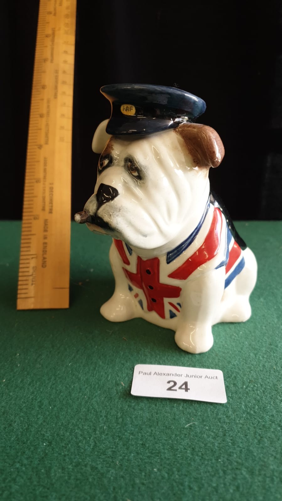 Staffordshire bull dog Figure with Union Jack flag.