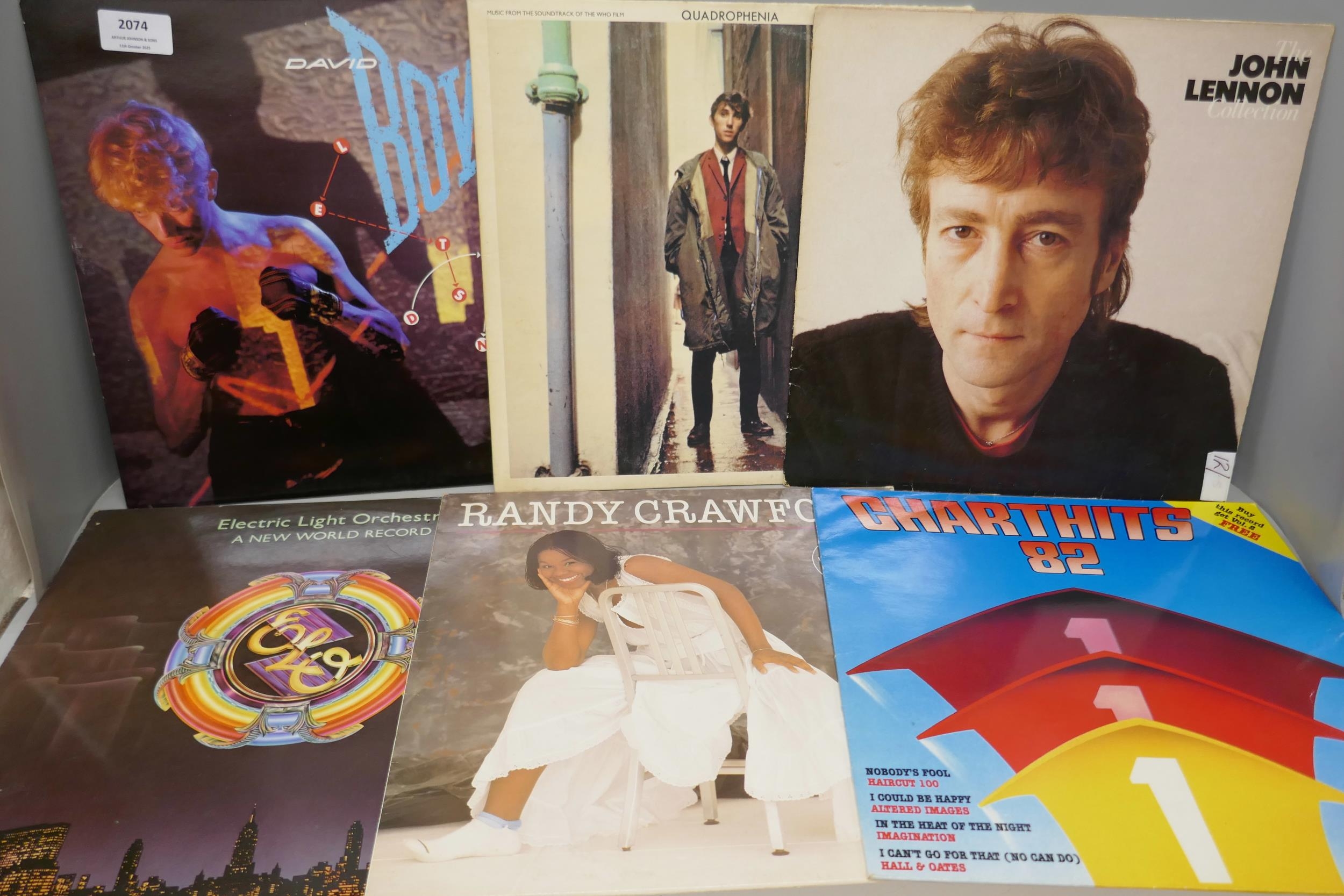 Twelve vinyl LP records, Bowie, John Lennon, The Who, ELO, Simply Red
