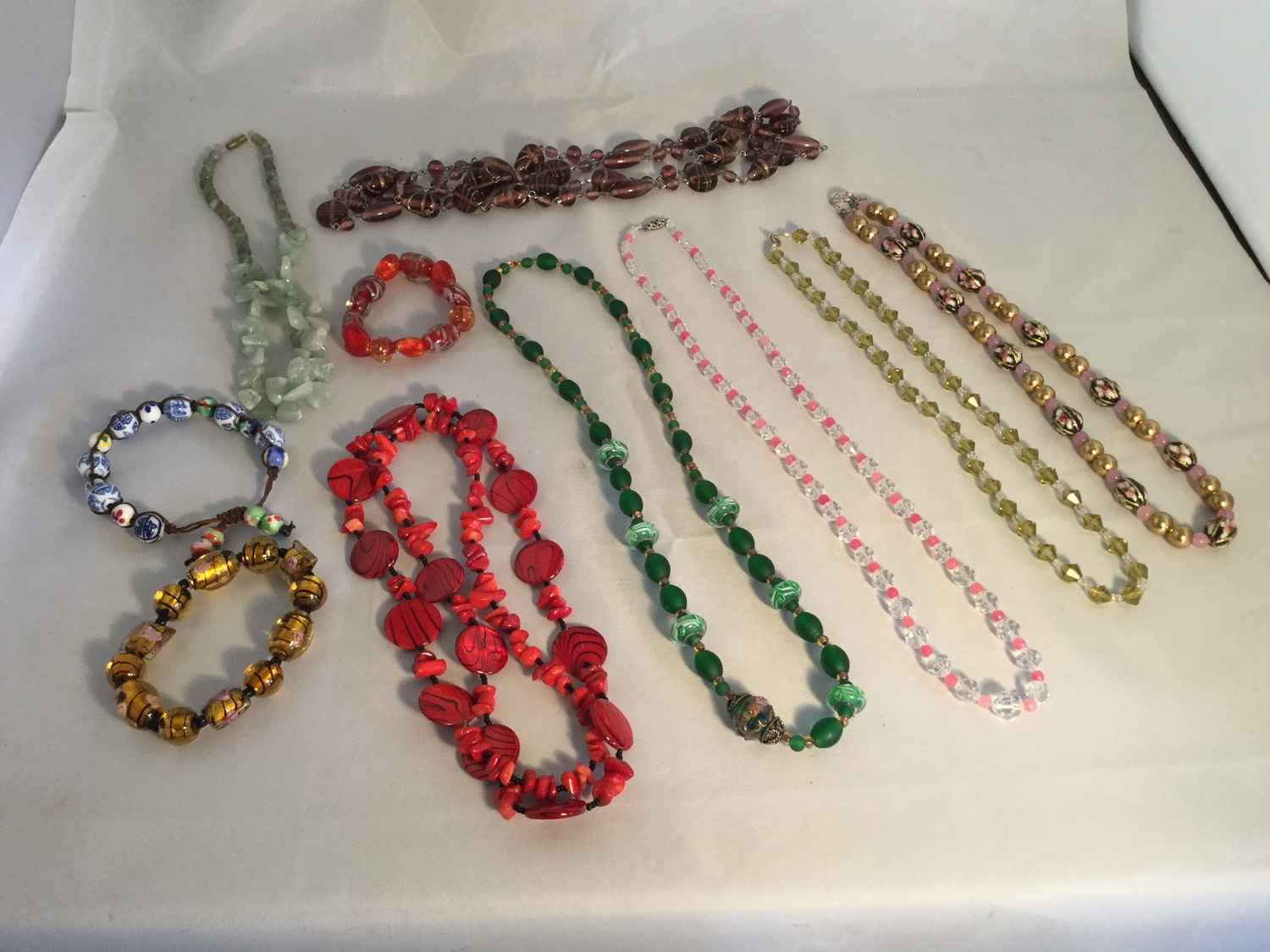 A bag of Venetian glass beads, semi-precious beads etc -