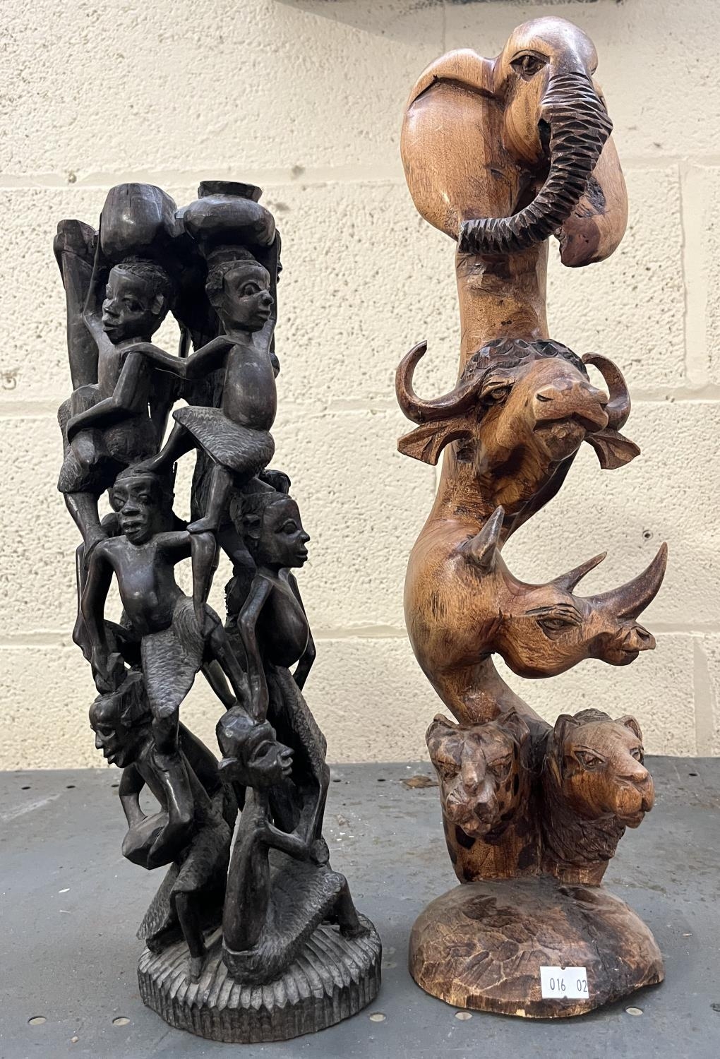 Makonde 'Tree Of Life' and an African carving featuring the 'big five'