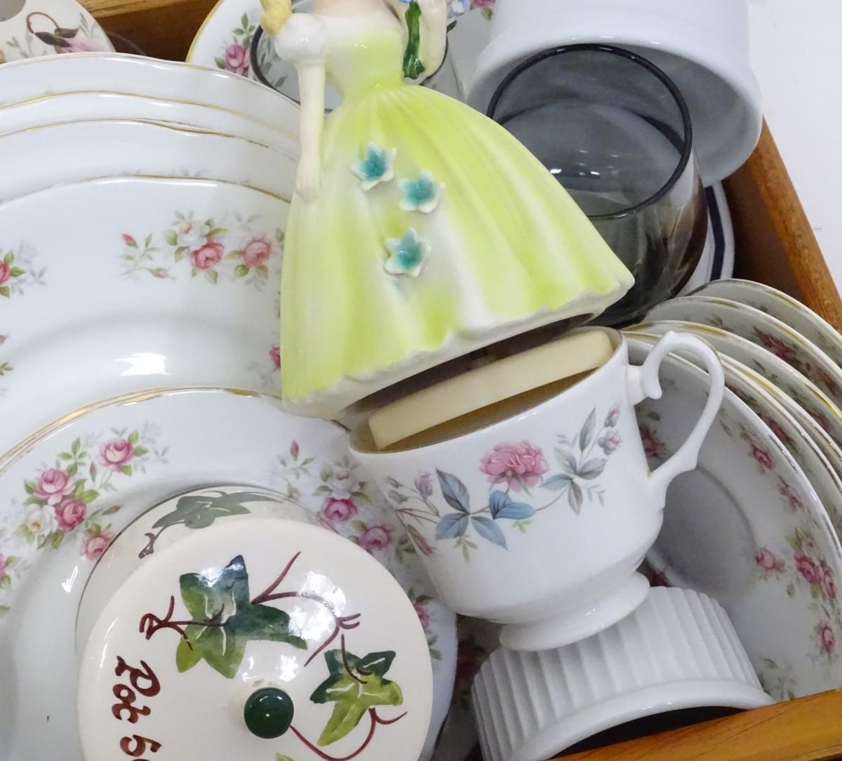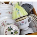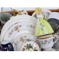 A box of miscellaneous ceramics and glassware, including a b...