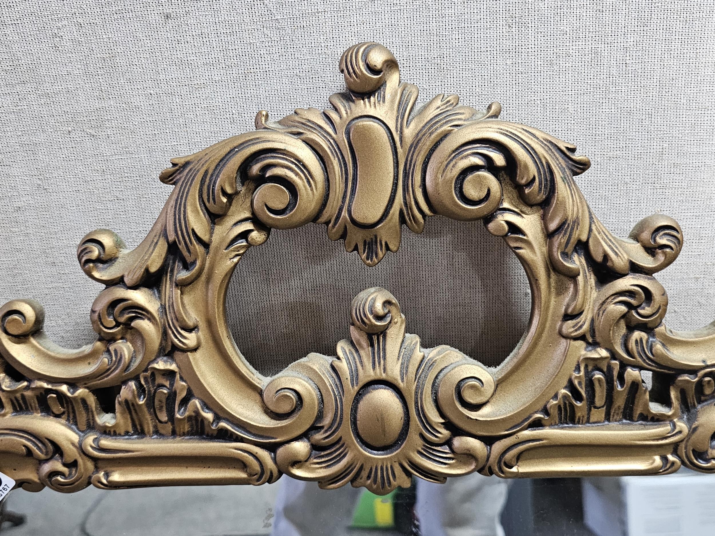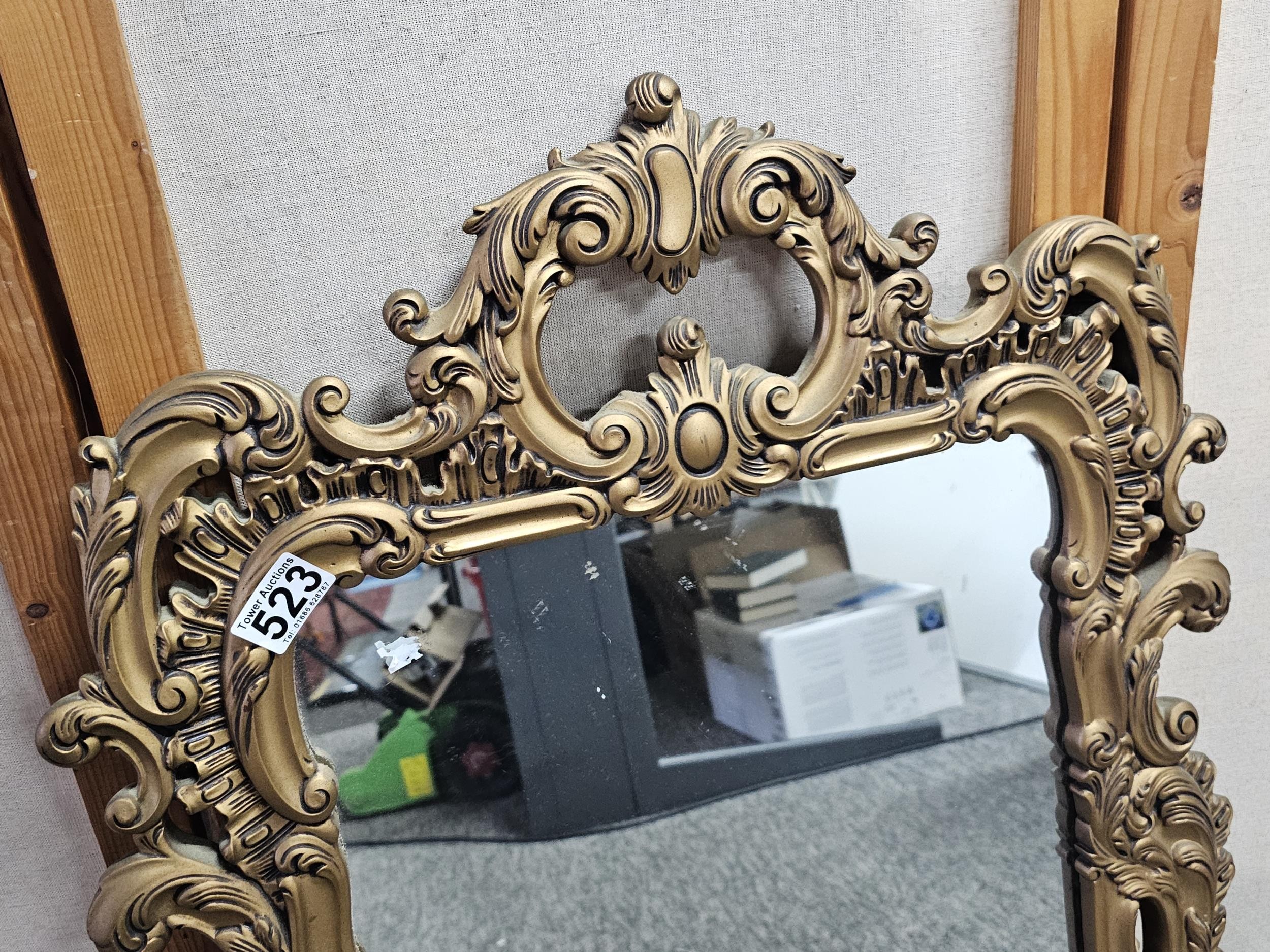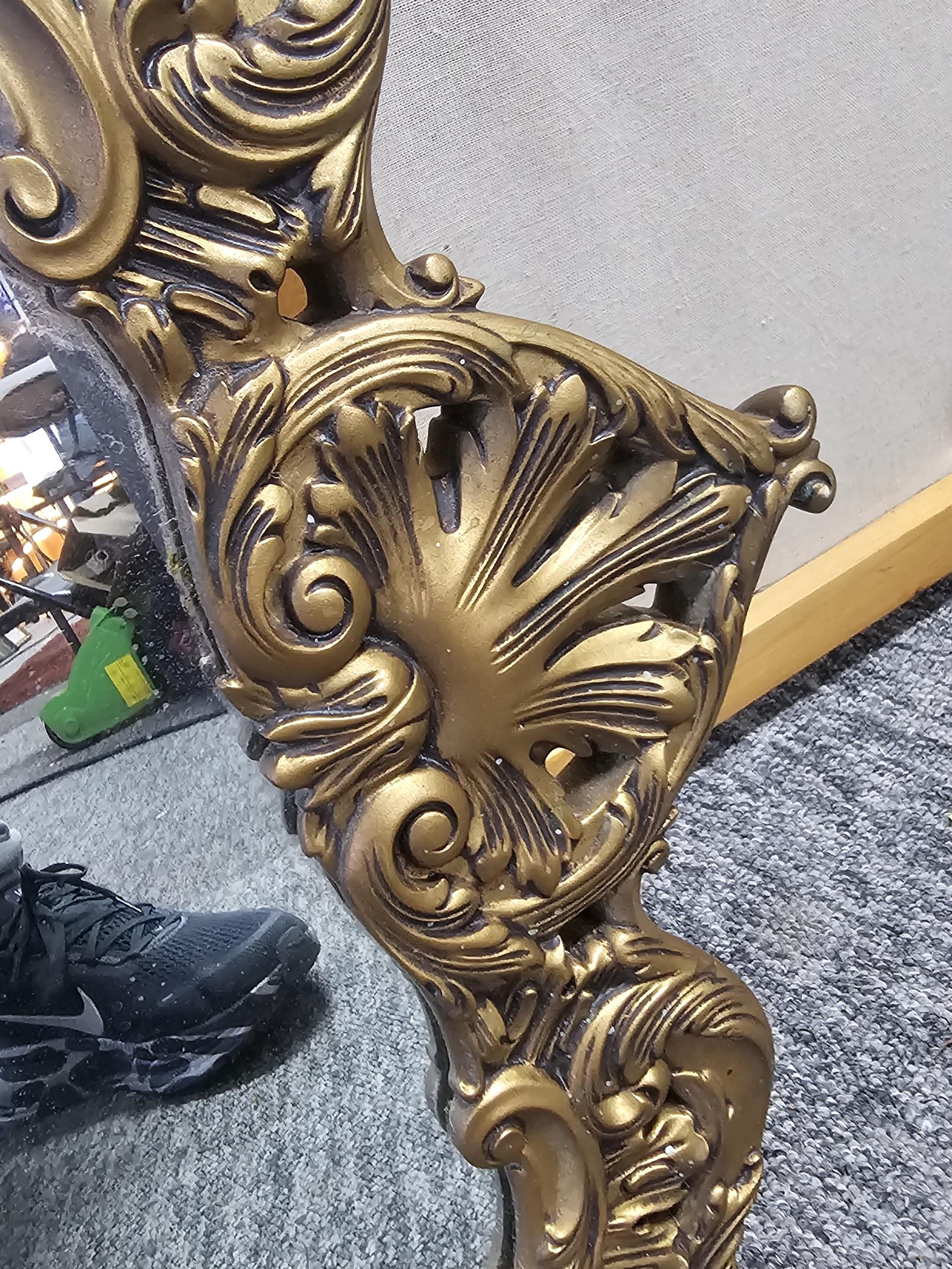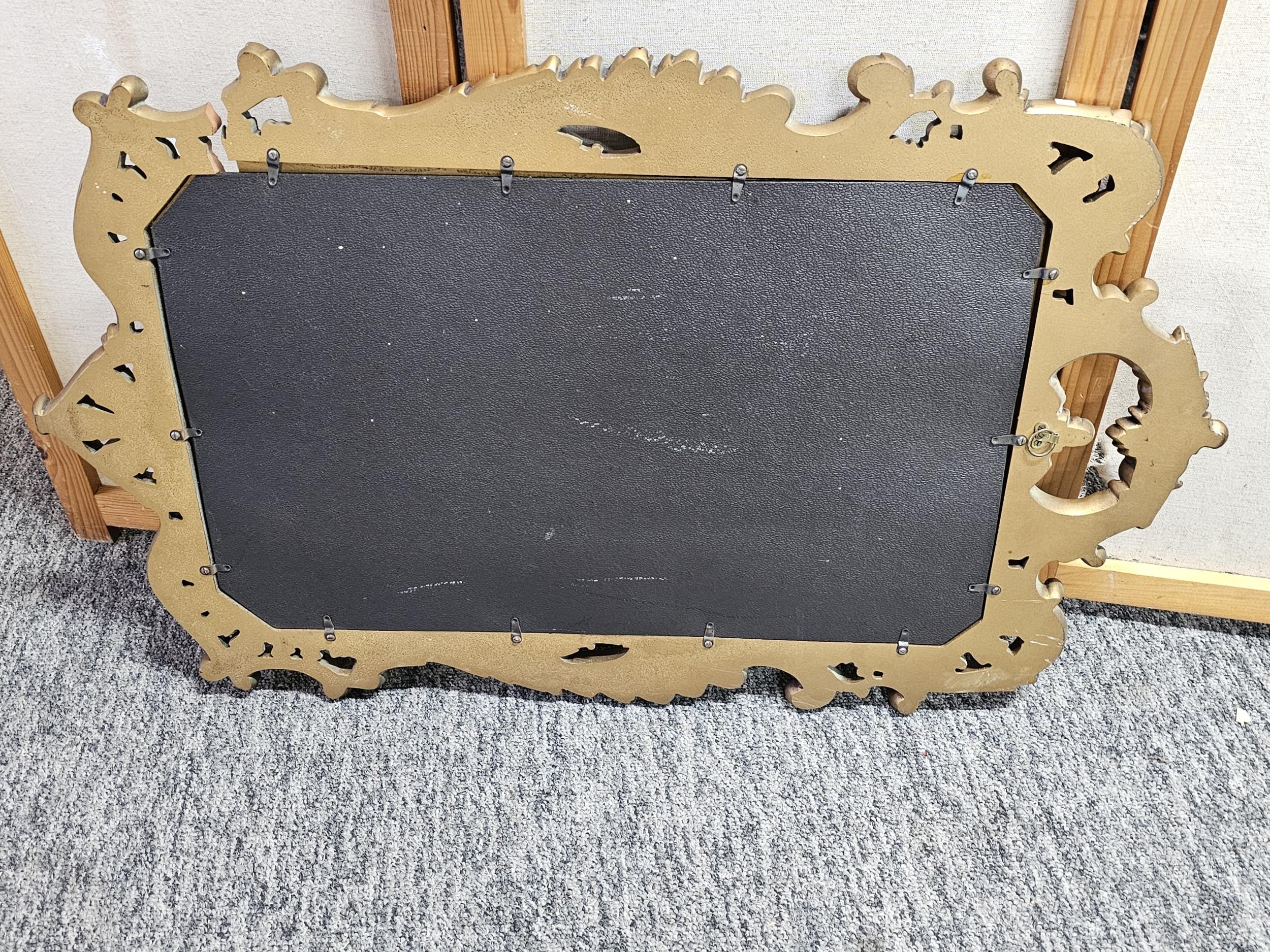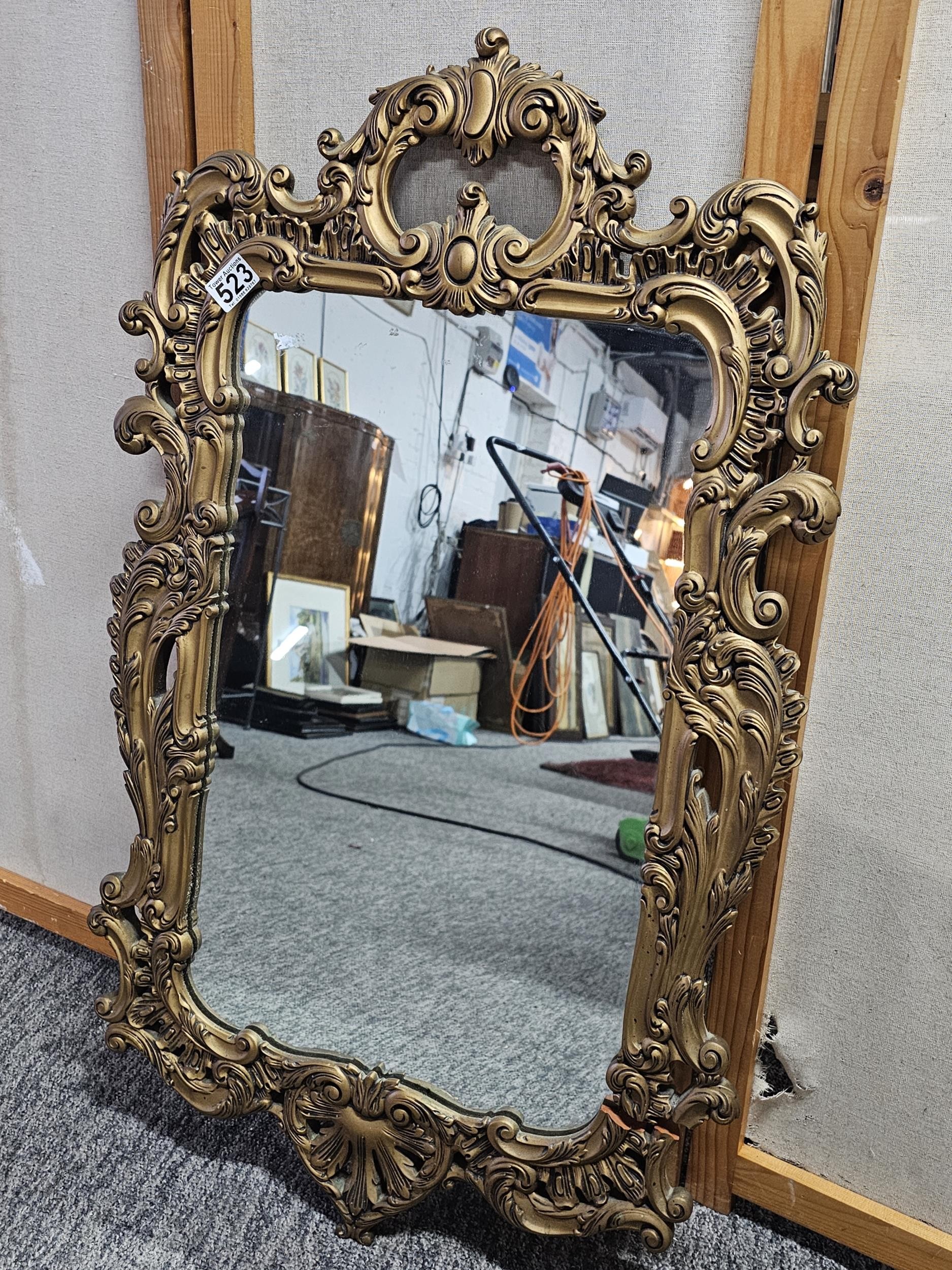 A very good quality vintage gilt framed mirror the gilt frame is carved out of solid wood the frame has a split on one side that can be repaired otherwise in good condition has a good weight to it and measures 94cm high and width of 56cm