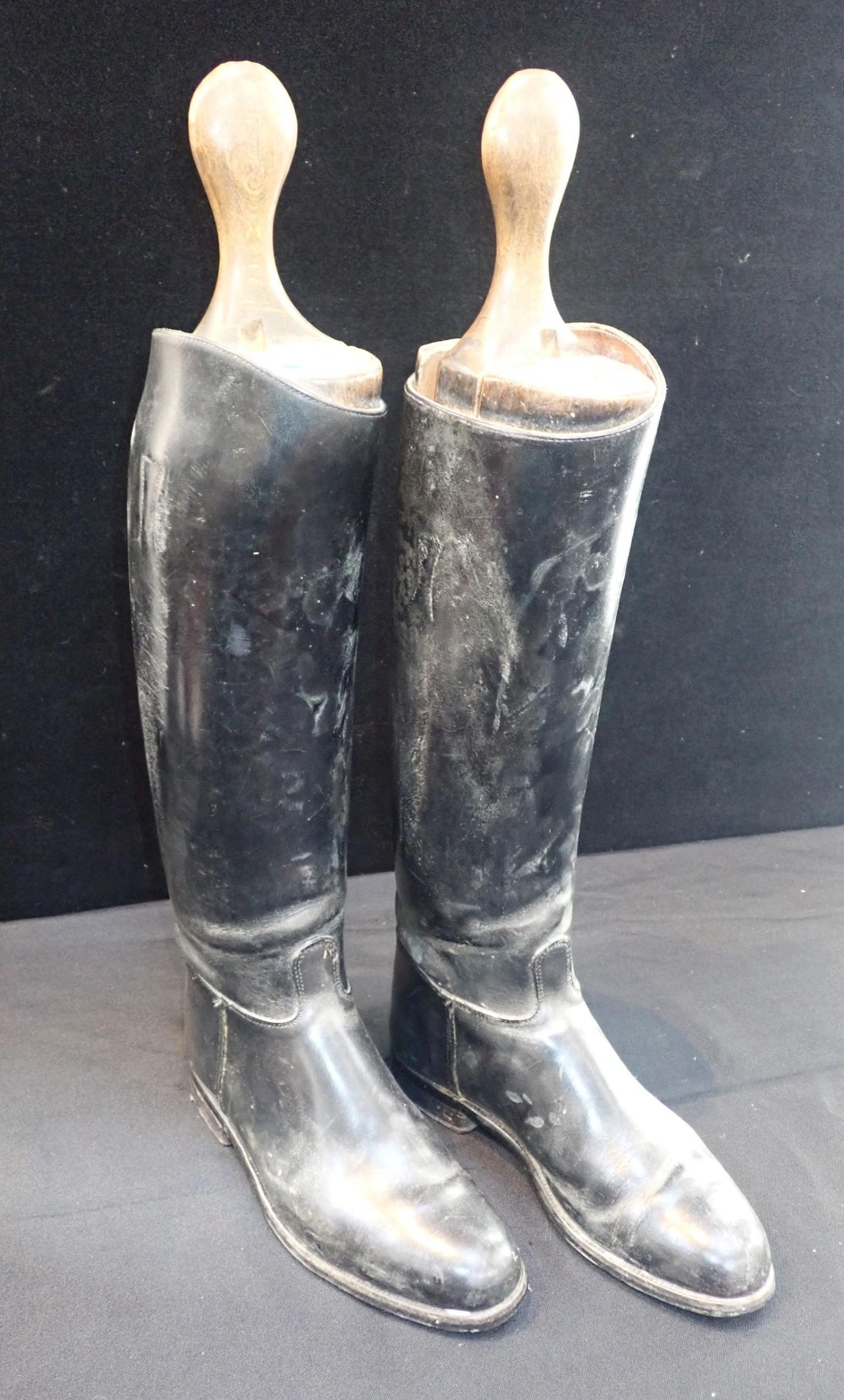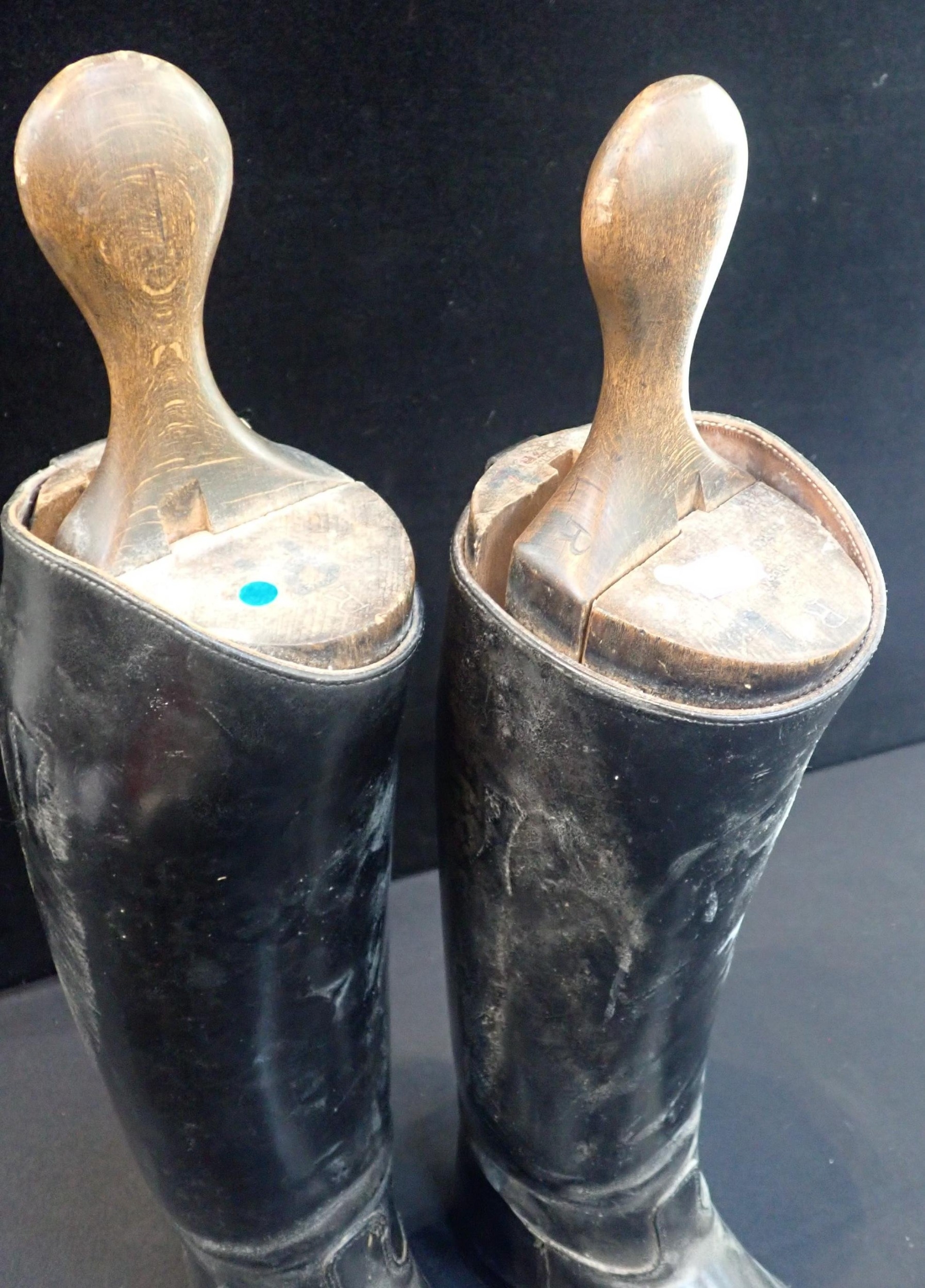 A PAIR OF VINTAGE LEATHER RIDING BOOTSapprox size 8, with associated trees