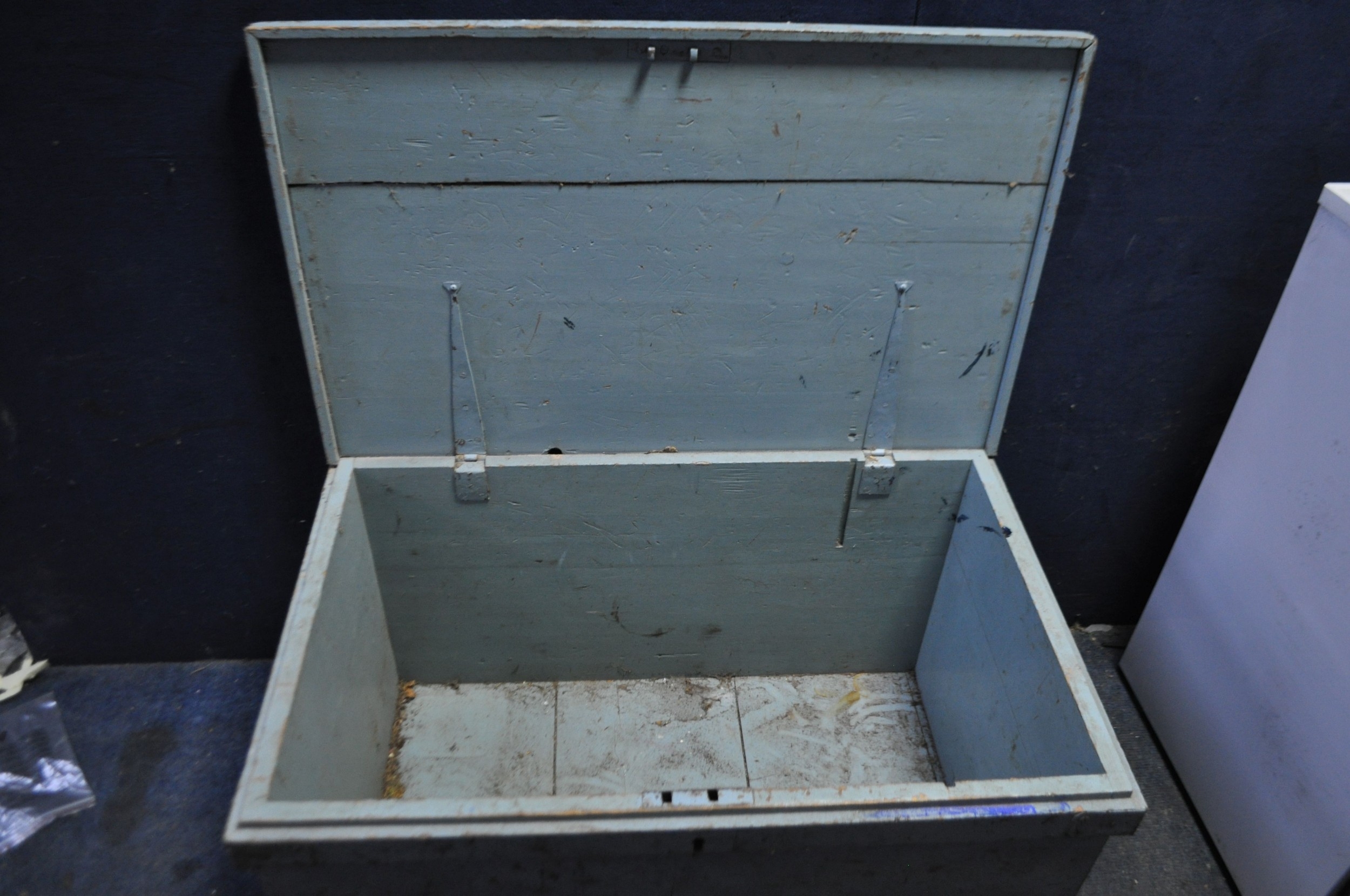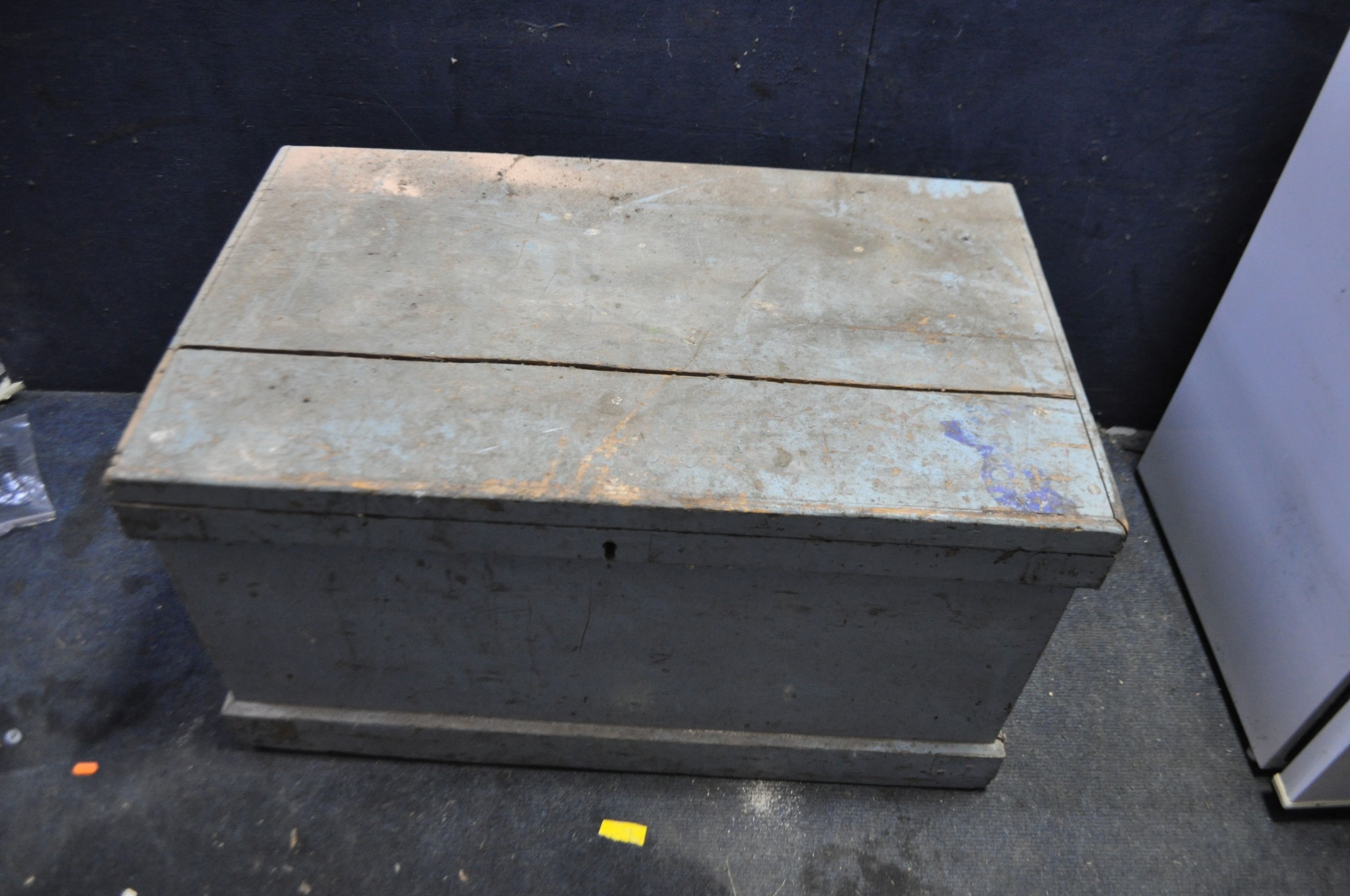 AN EARLY 20th CENTURY PAINTED PINE TOOLCHEST width 86cm, depth 55cm, height 47cm