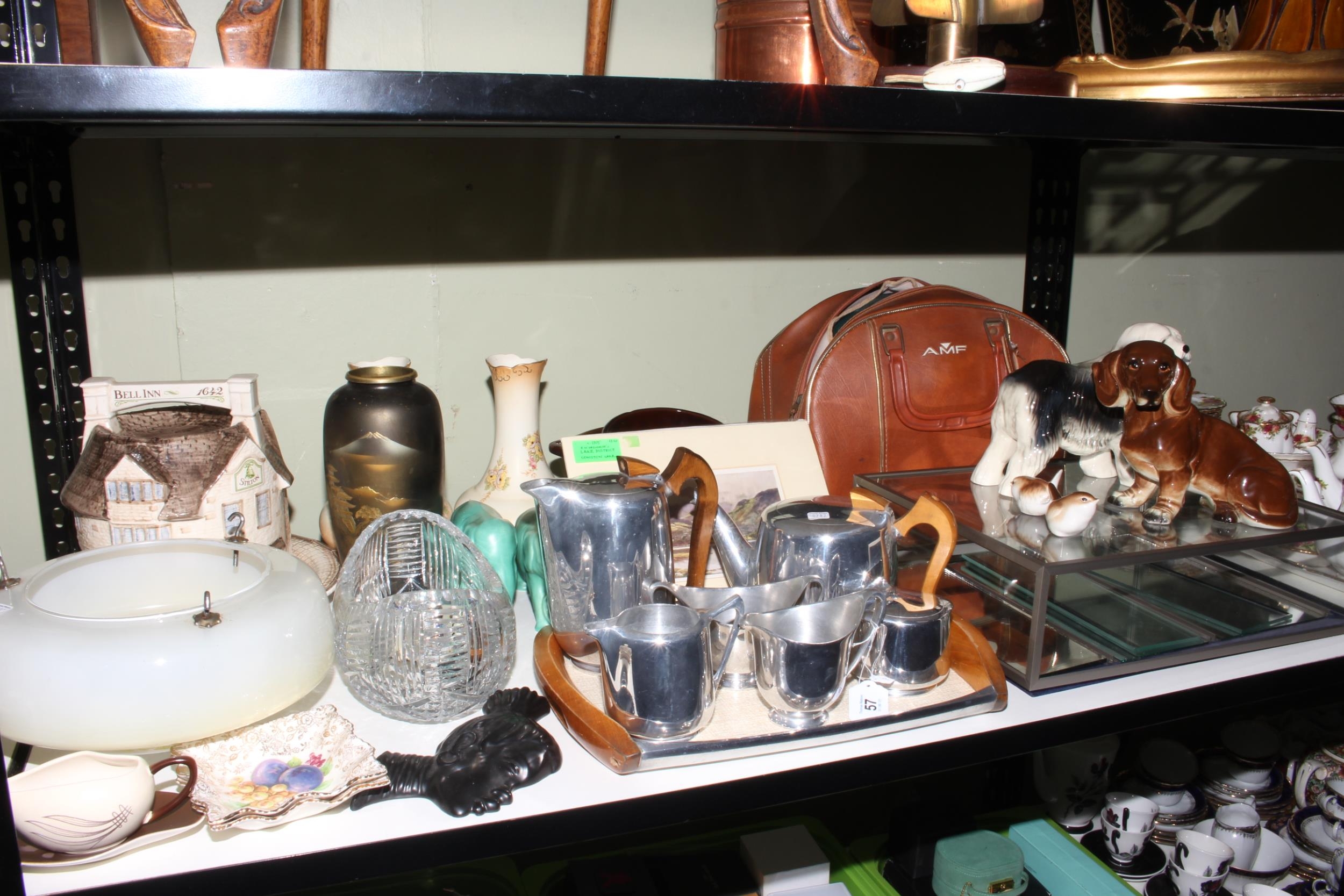 Picquot seven piece tea service, Japanese vase, AMF bowling ...