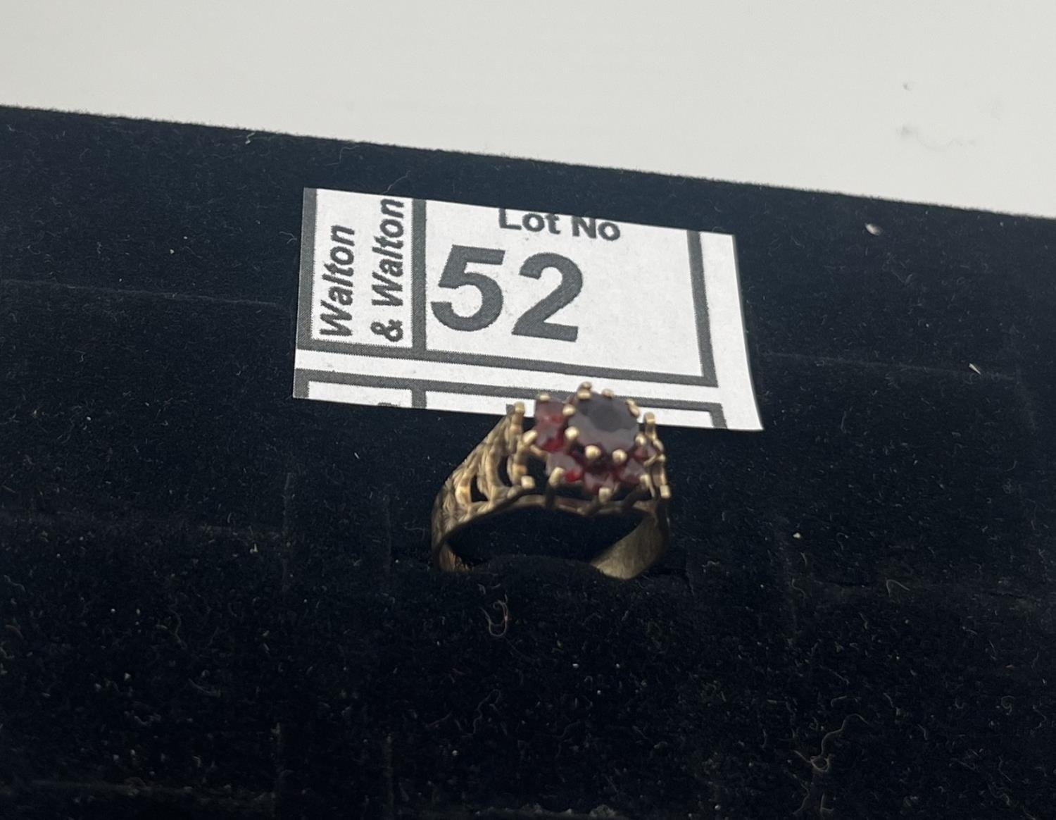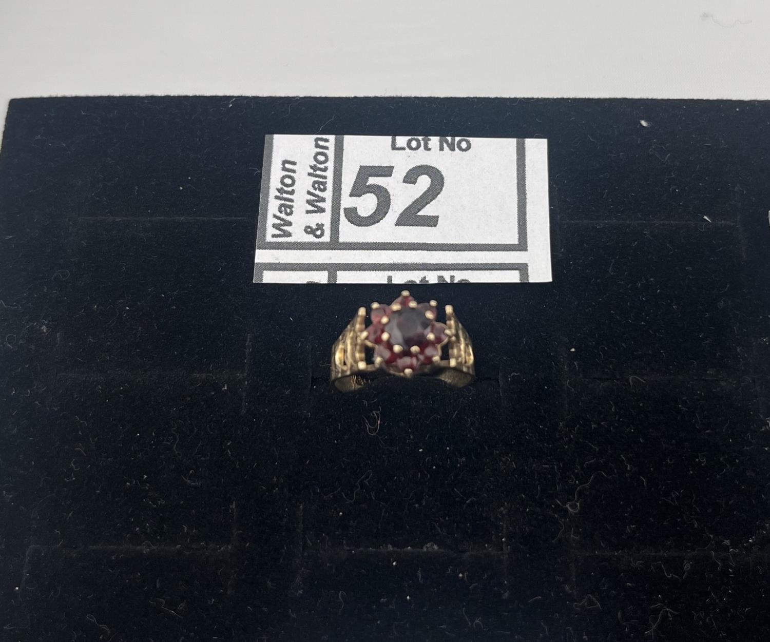 Ornate 9ct gold stone set cluster ring, size K 2.3g - Only 10% buyer's premium