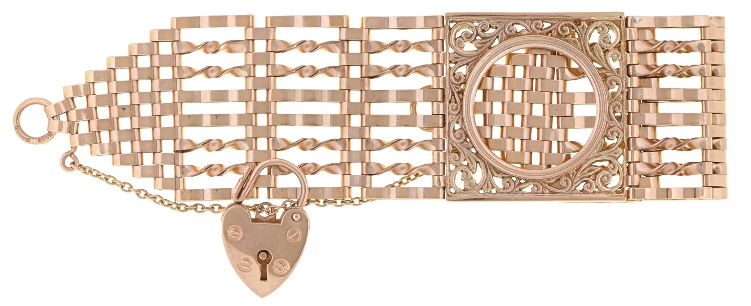 A 9ct gold gate bracelet and padlock, approx 16cm l, 37g