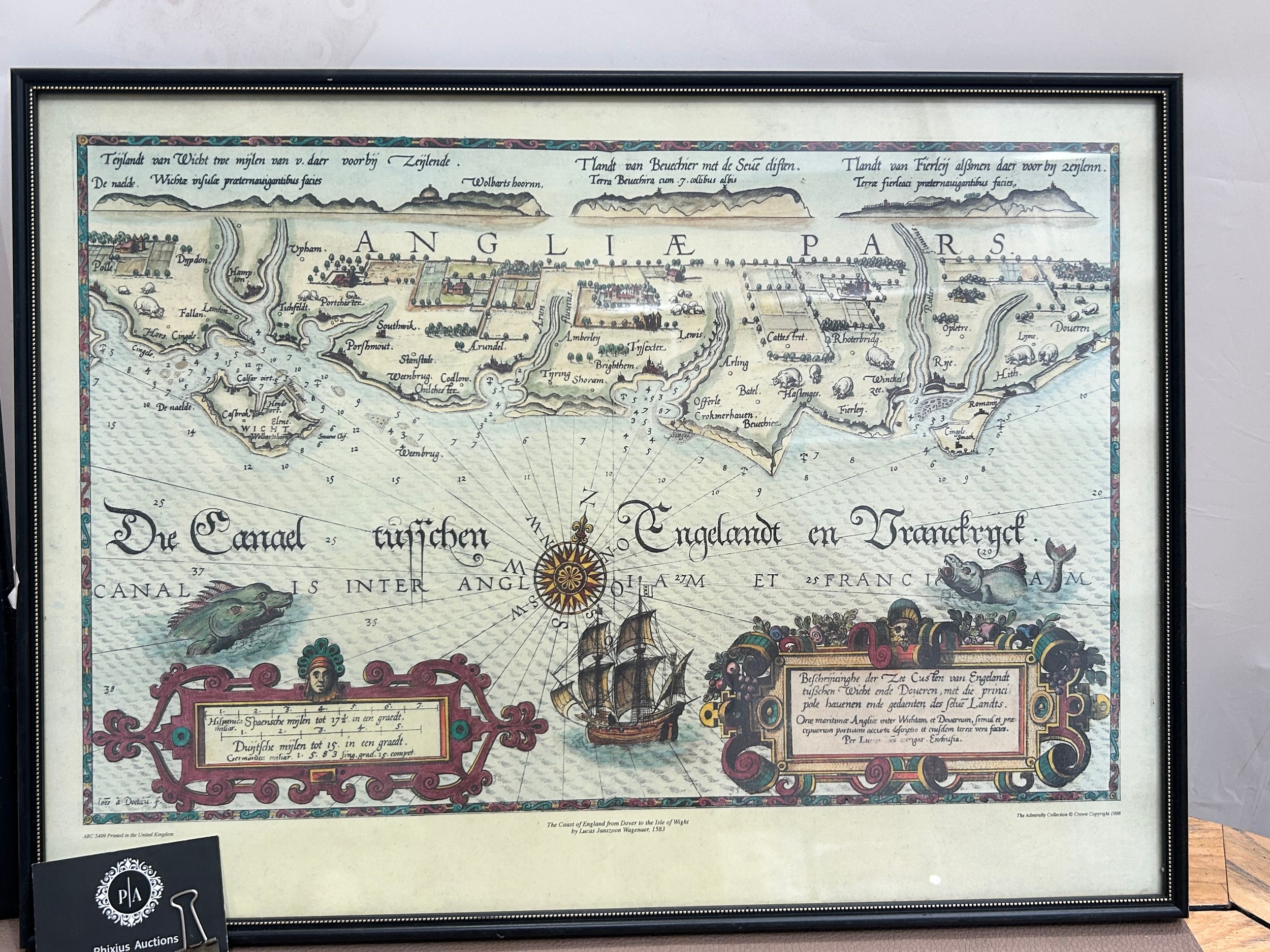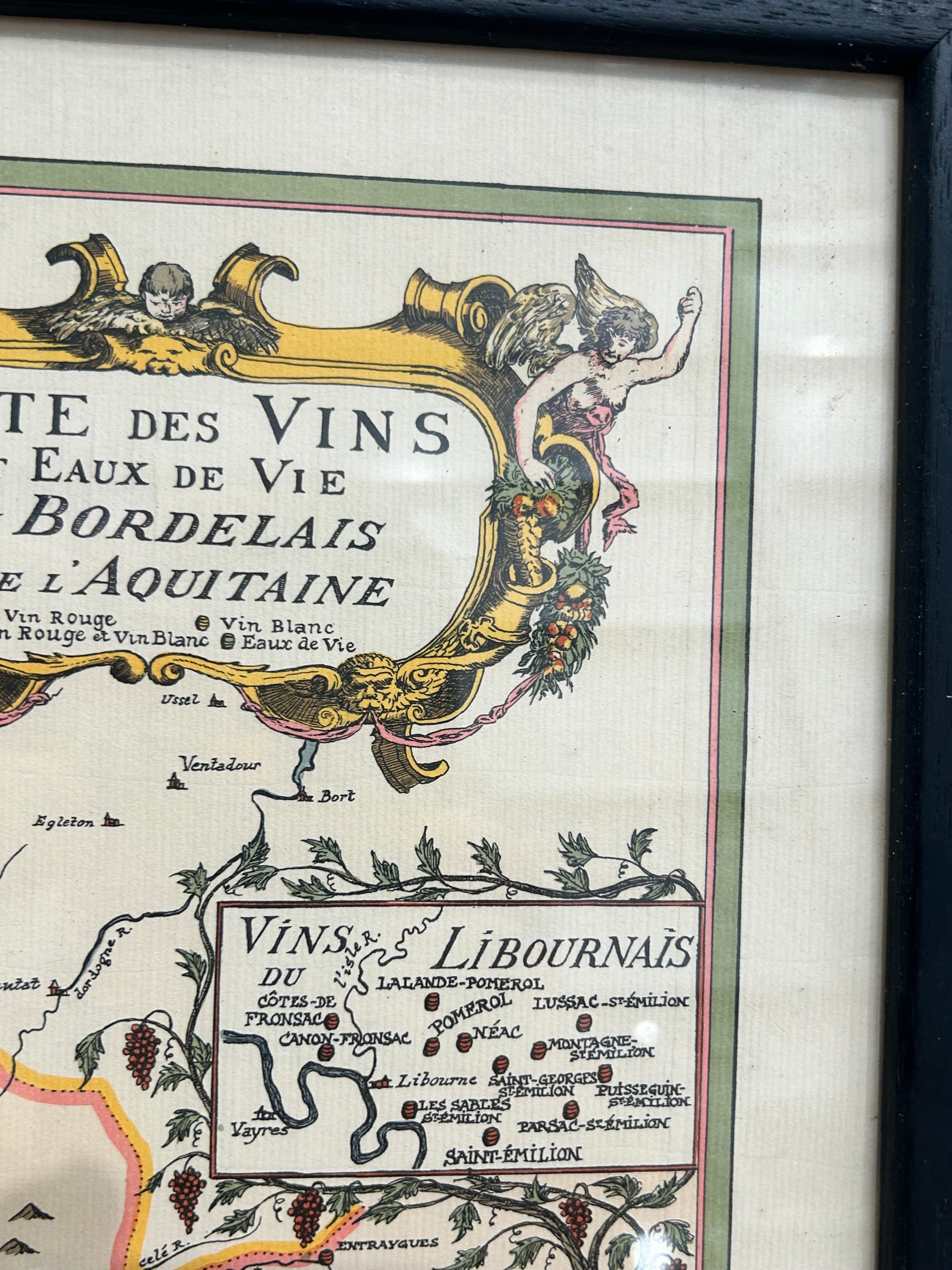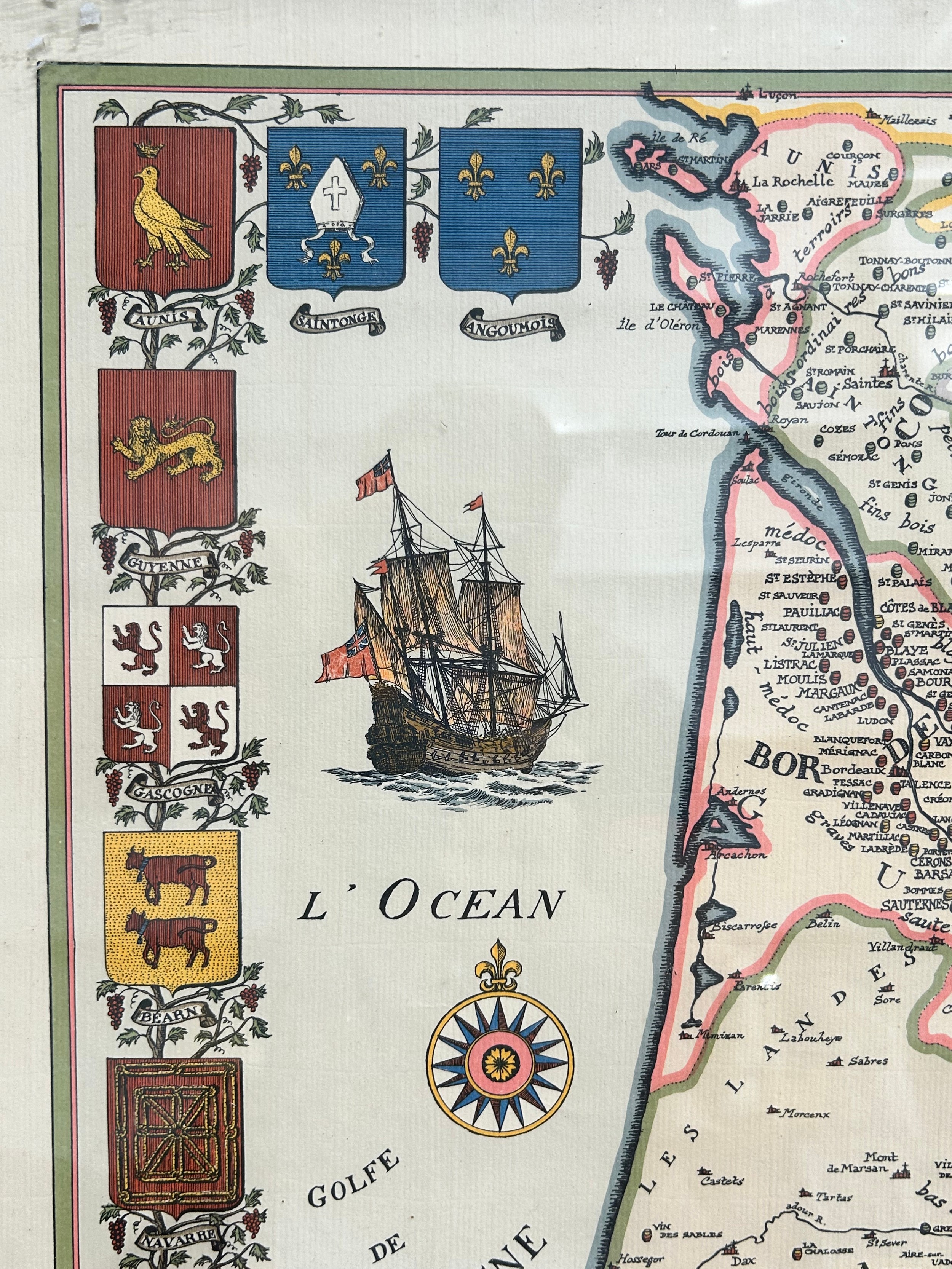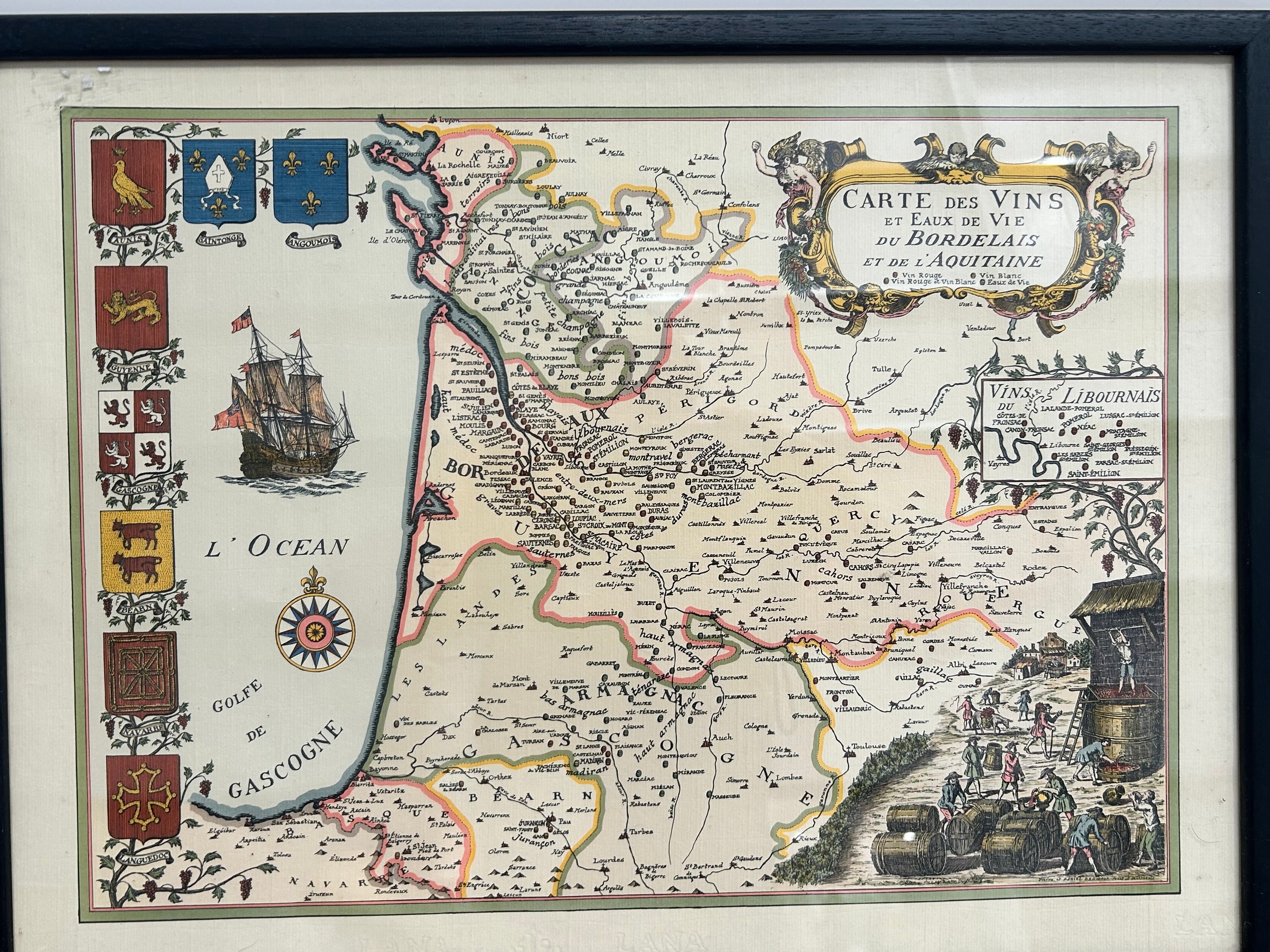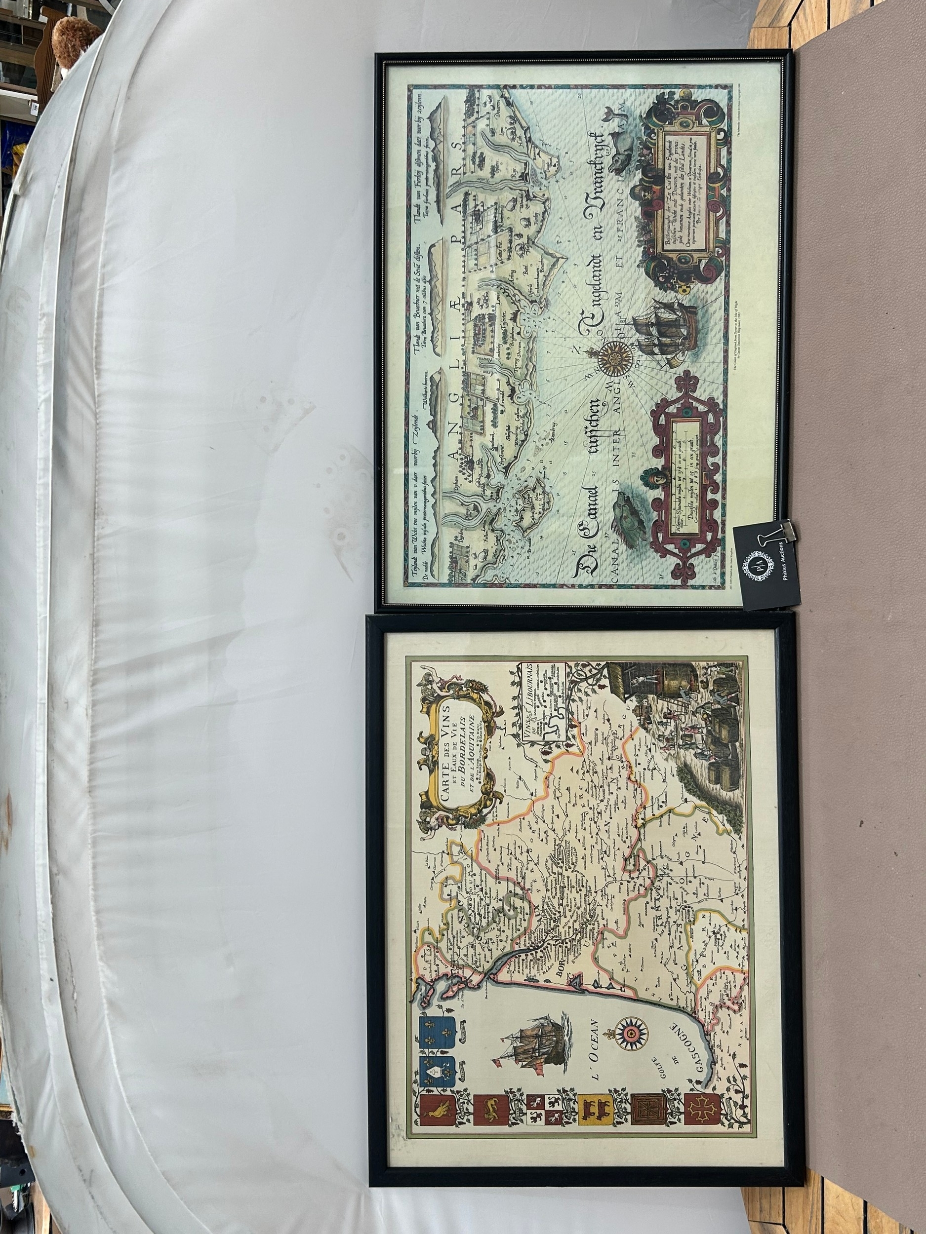 A pair of prints of old Maps, Carte de Vin Bordeaux and Aquitaine along with the Coast of England (Chanel to Isle of Wight) 40cm x 55cm