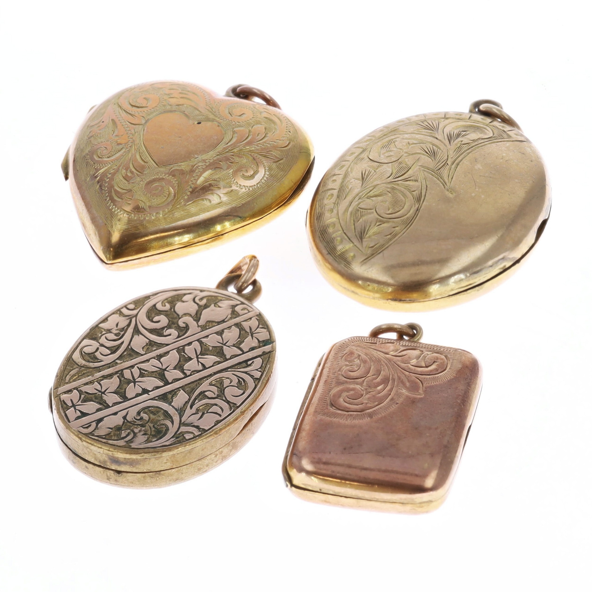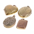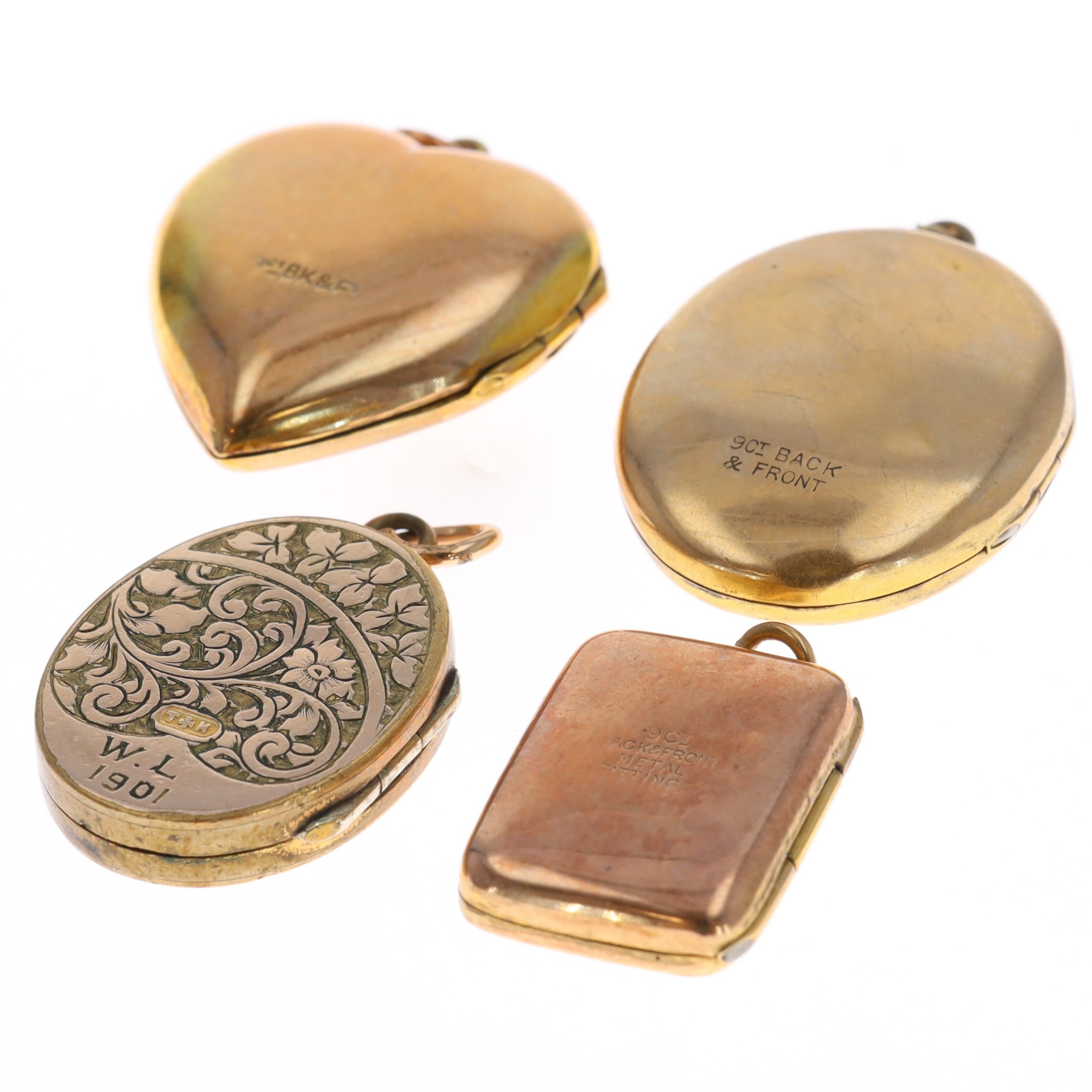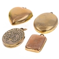 Collection of 9ct back & front locket pendants inc. antique. A variety of sizes. Each has been tested. General wear to coating. Total weight 17g