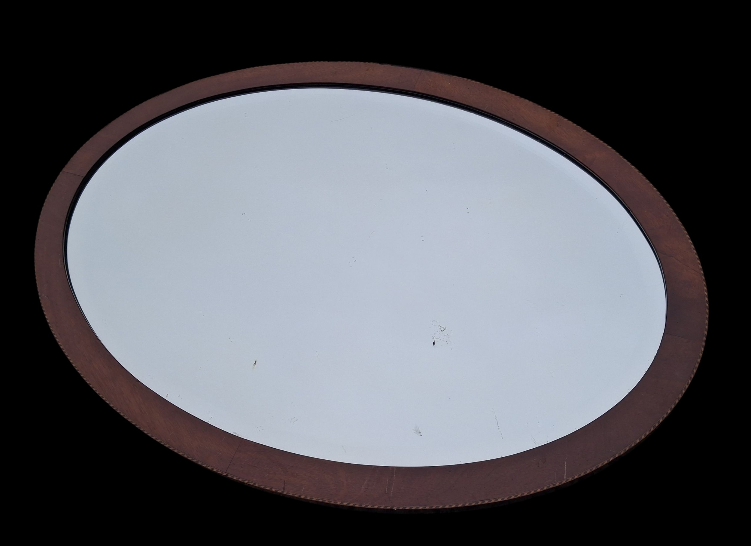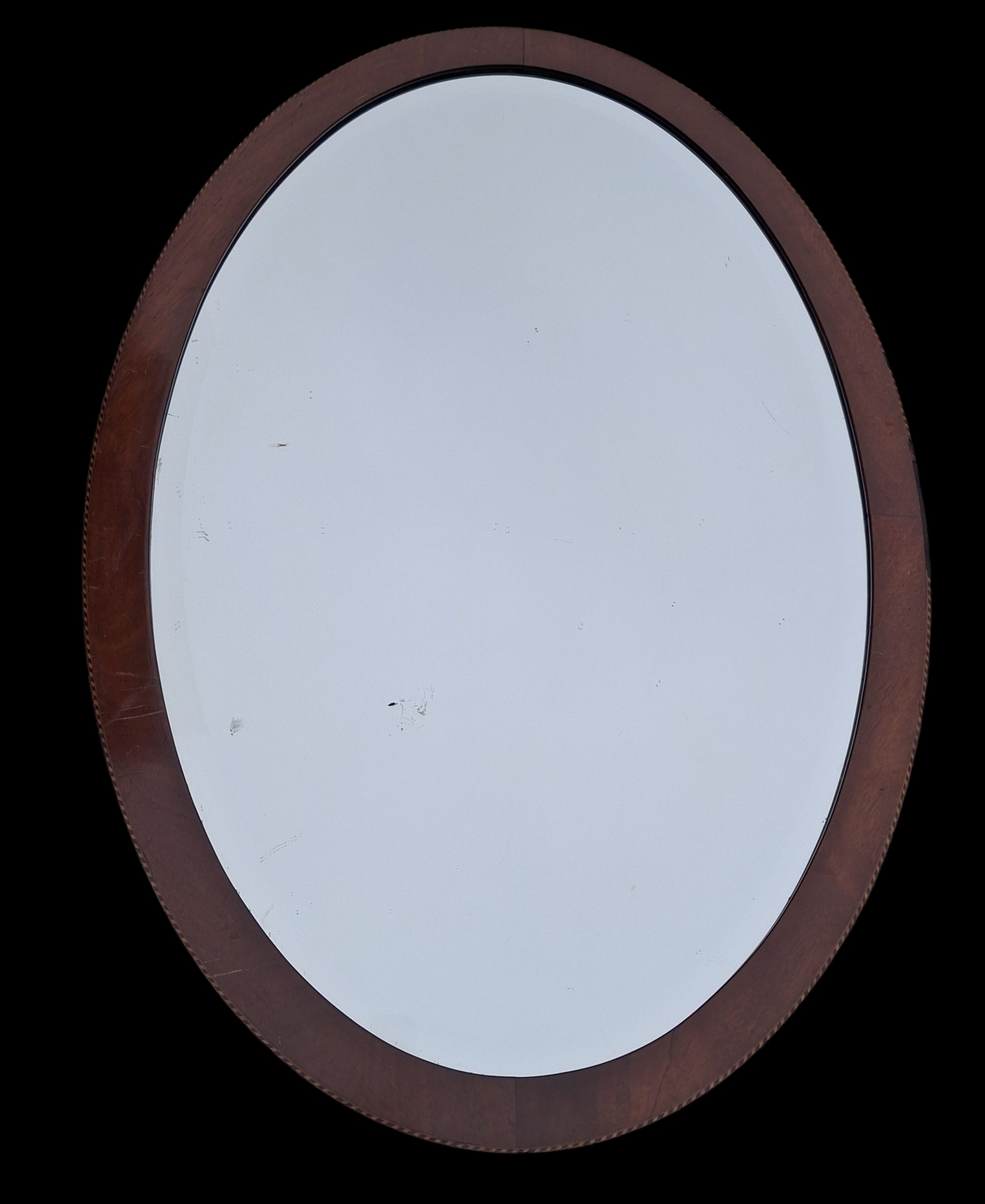 BEAUTIFUL INLAID TRIM BEVELLED OVAL ANTIQUE MIRROR 33x23"