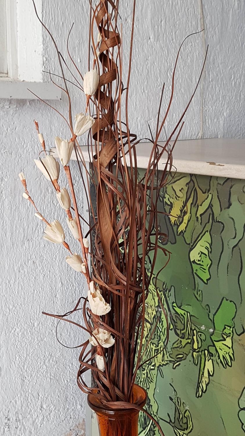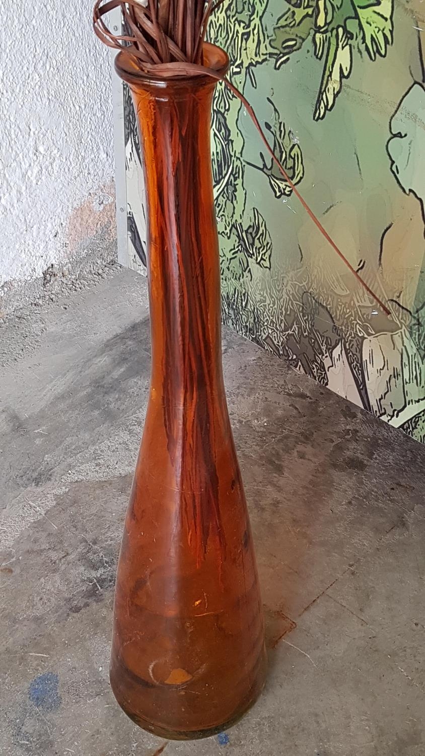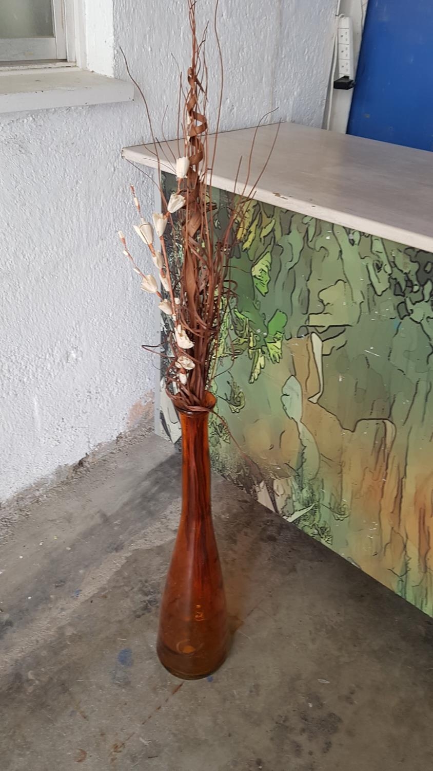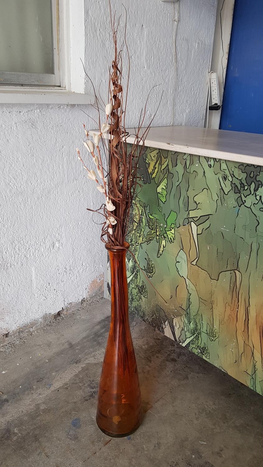 Modern Glass Tall (H:80cm) Vase Orange Glass with Dried Bouquet