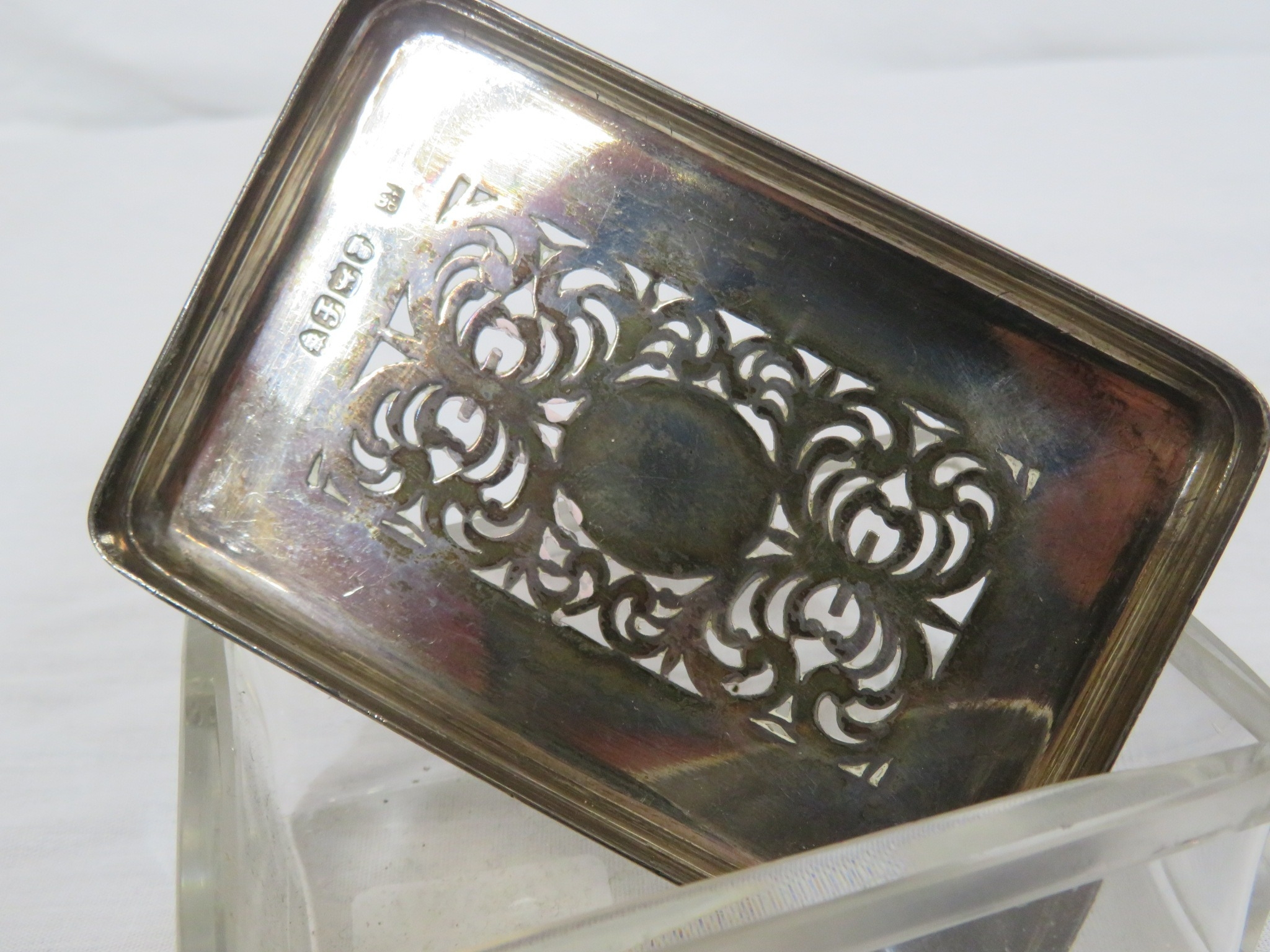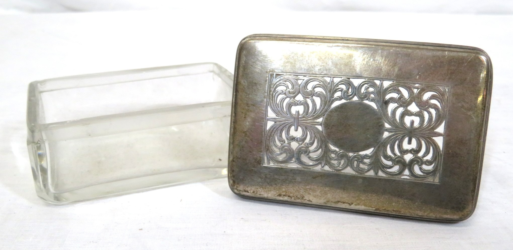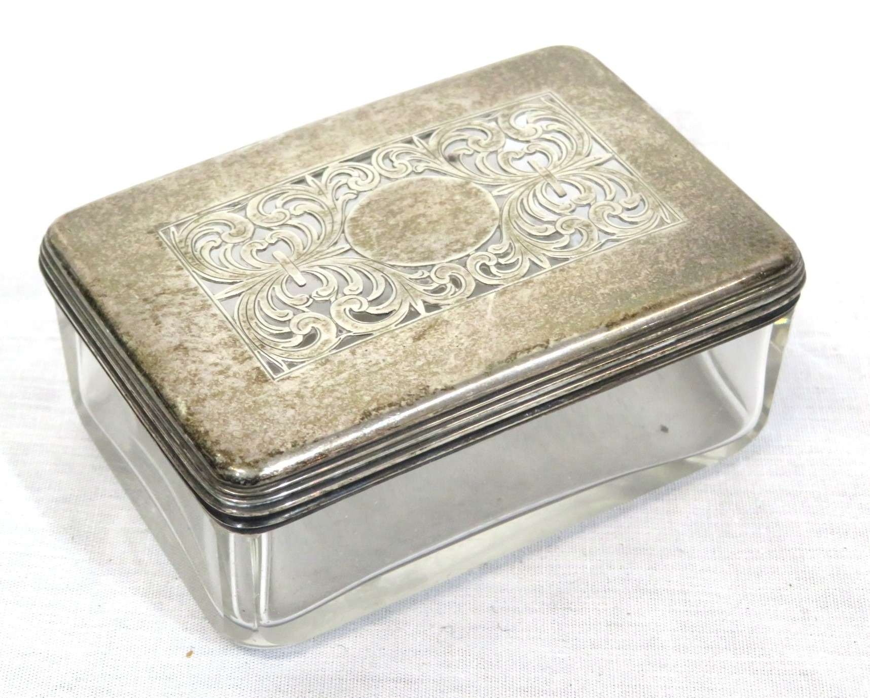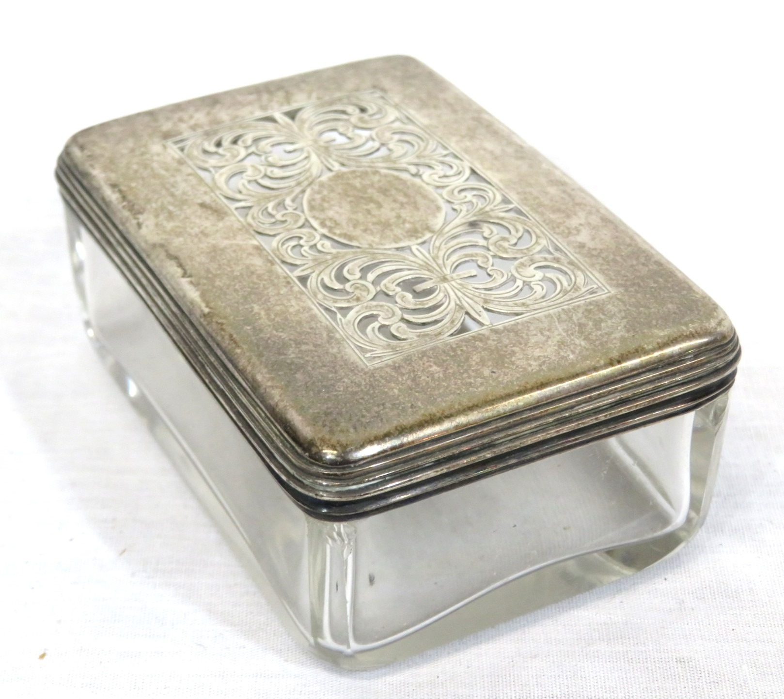 Georgian silver topped glass jewellery box with pierced decoration