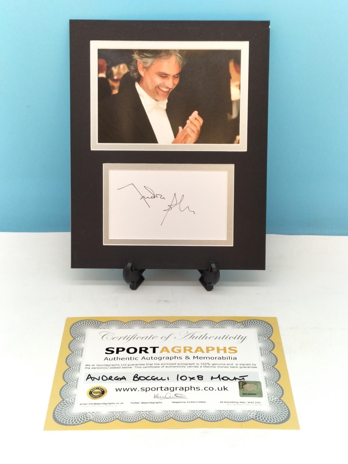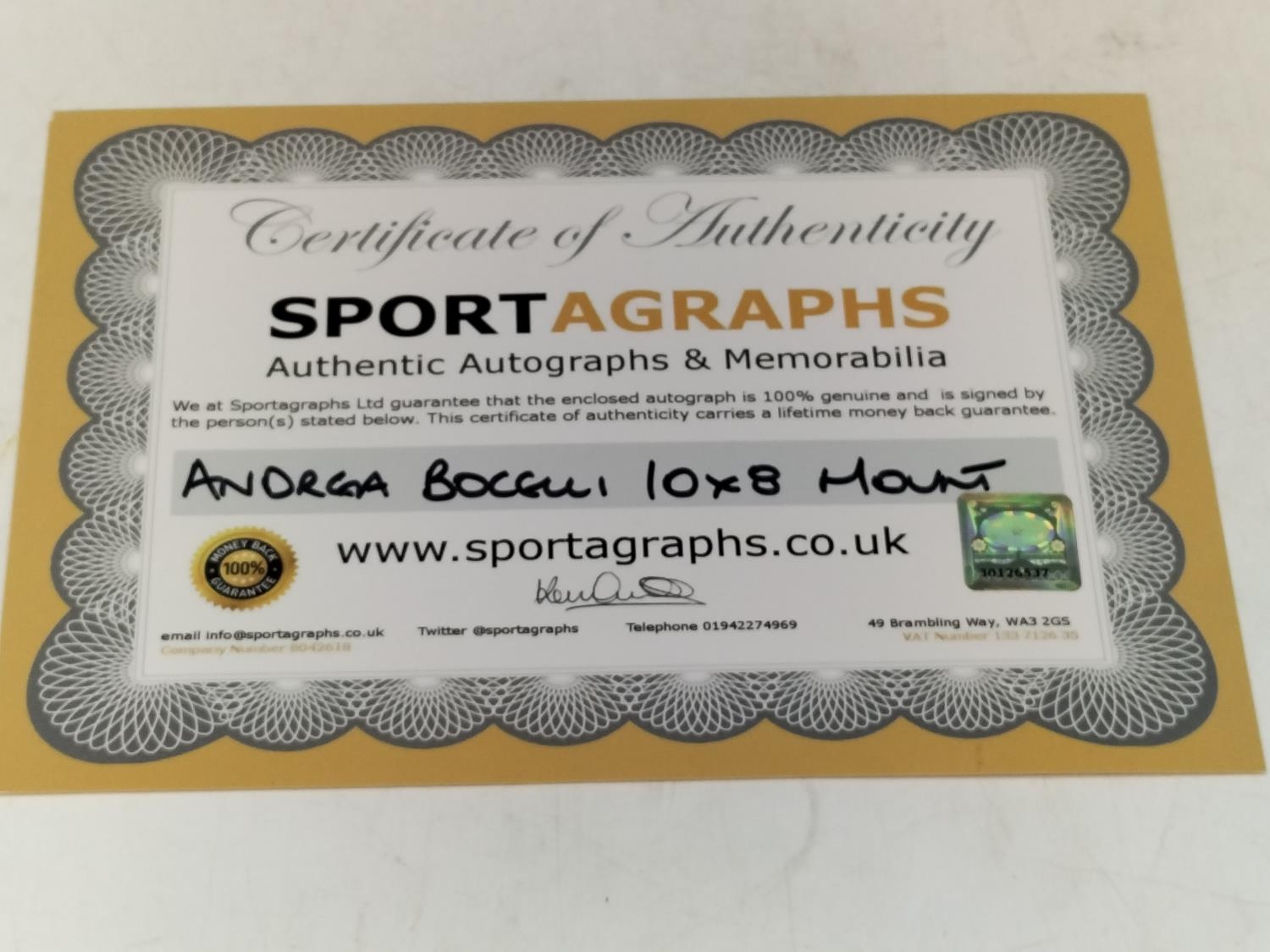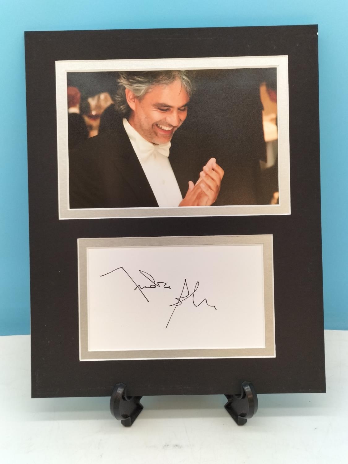 Mounted Photo of Andrea Bocelli with Accompanying Signed Paper and Certificate of Authenticity. 25cm x 20cm.