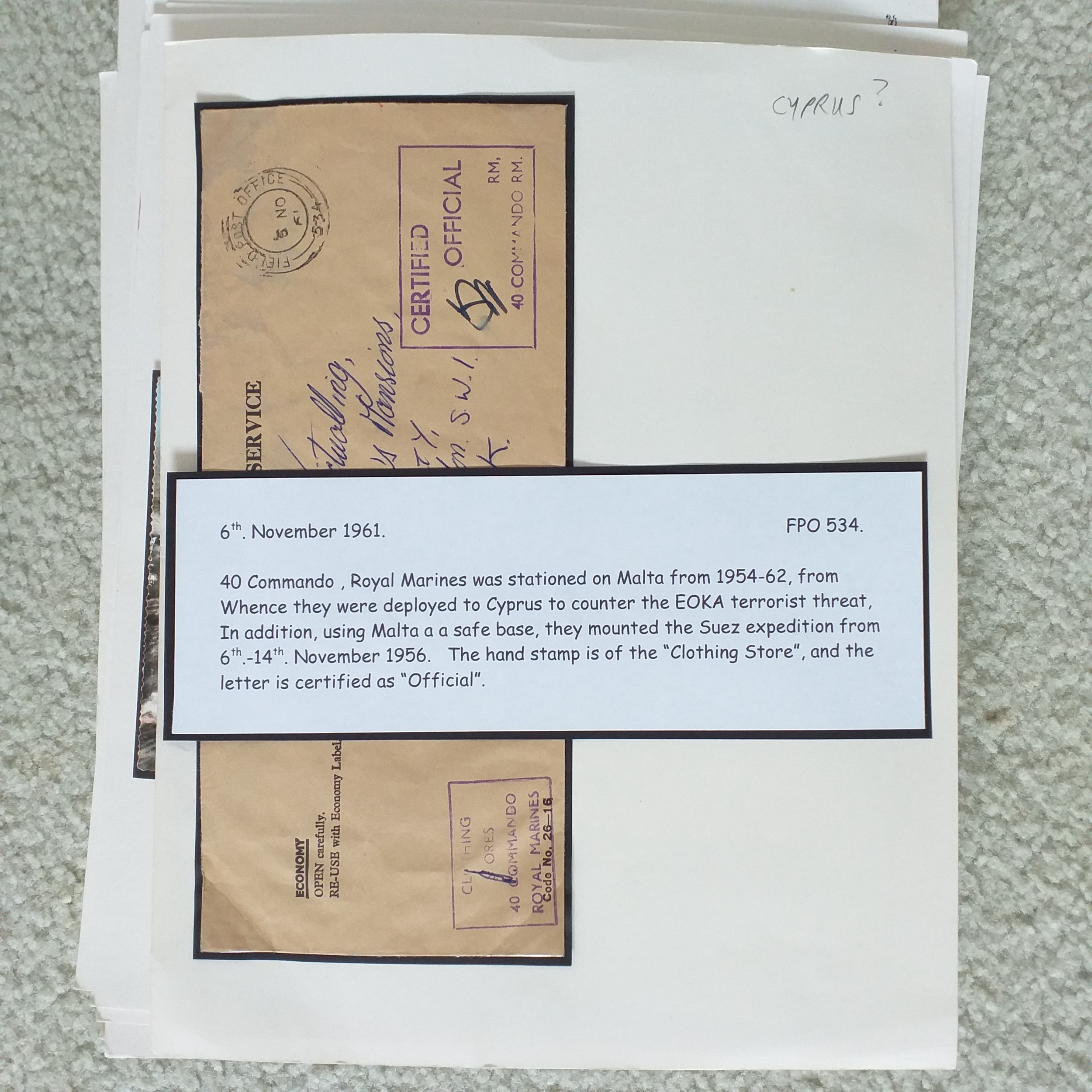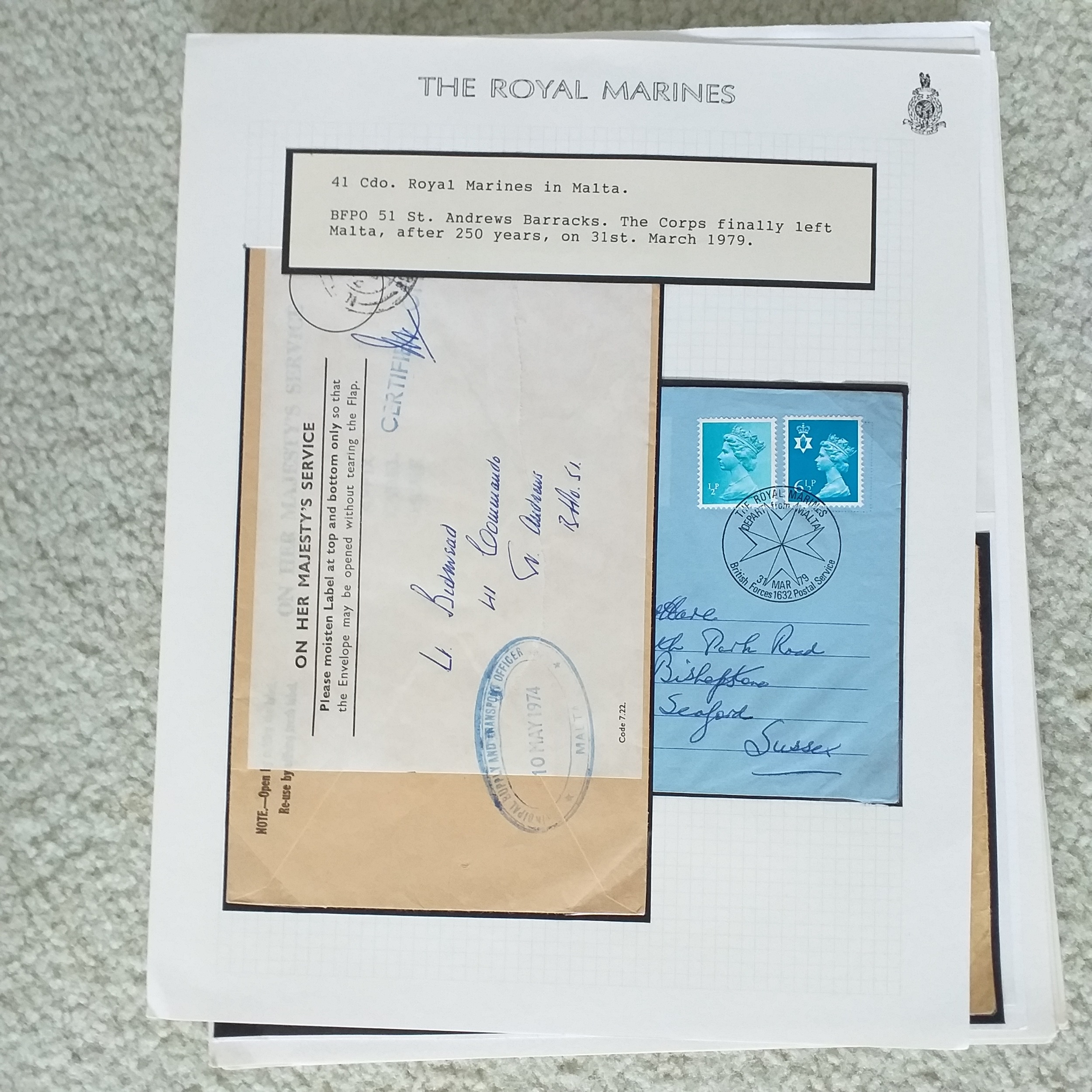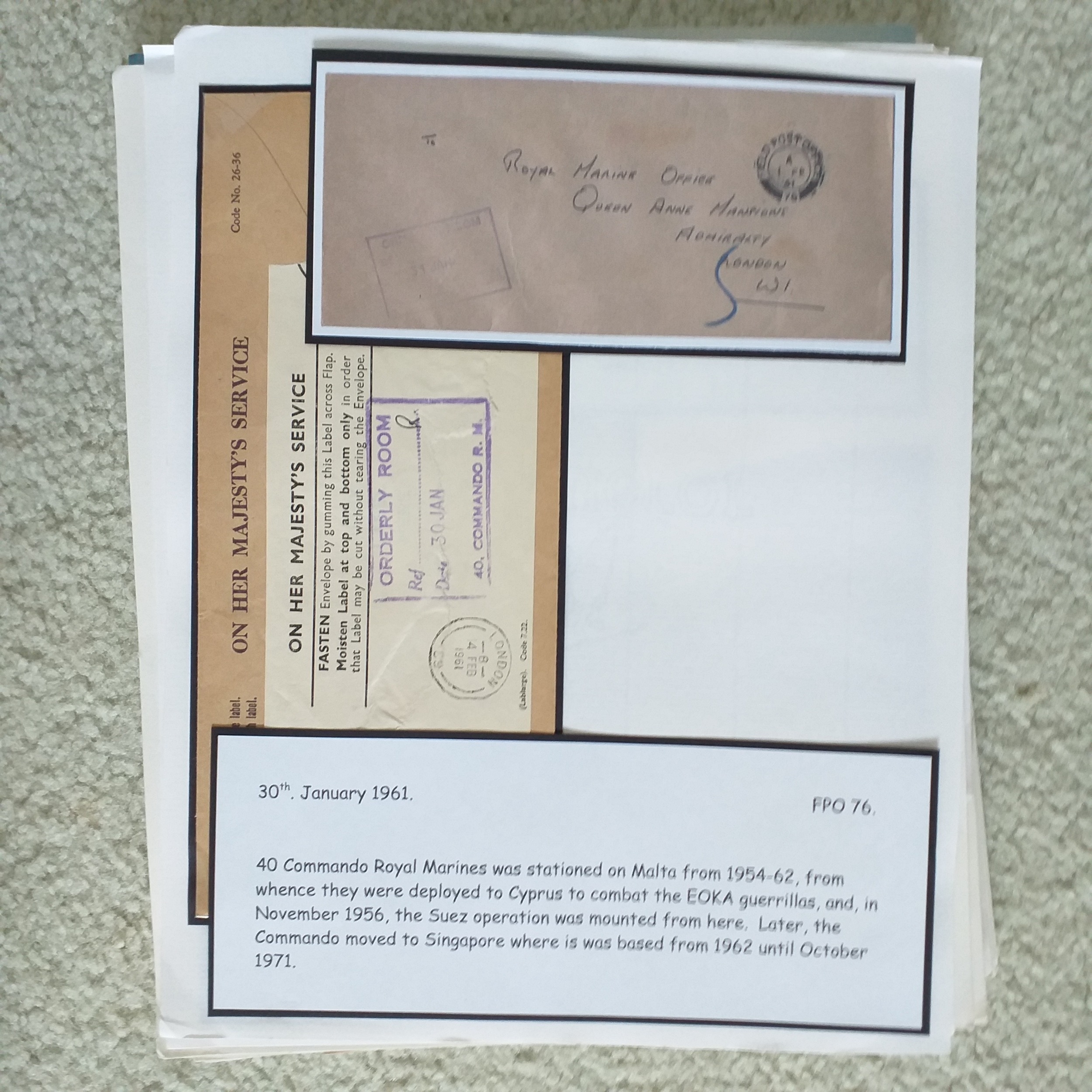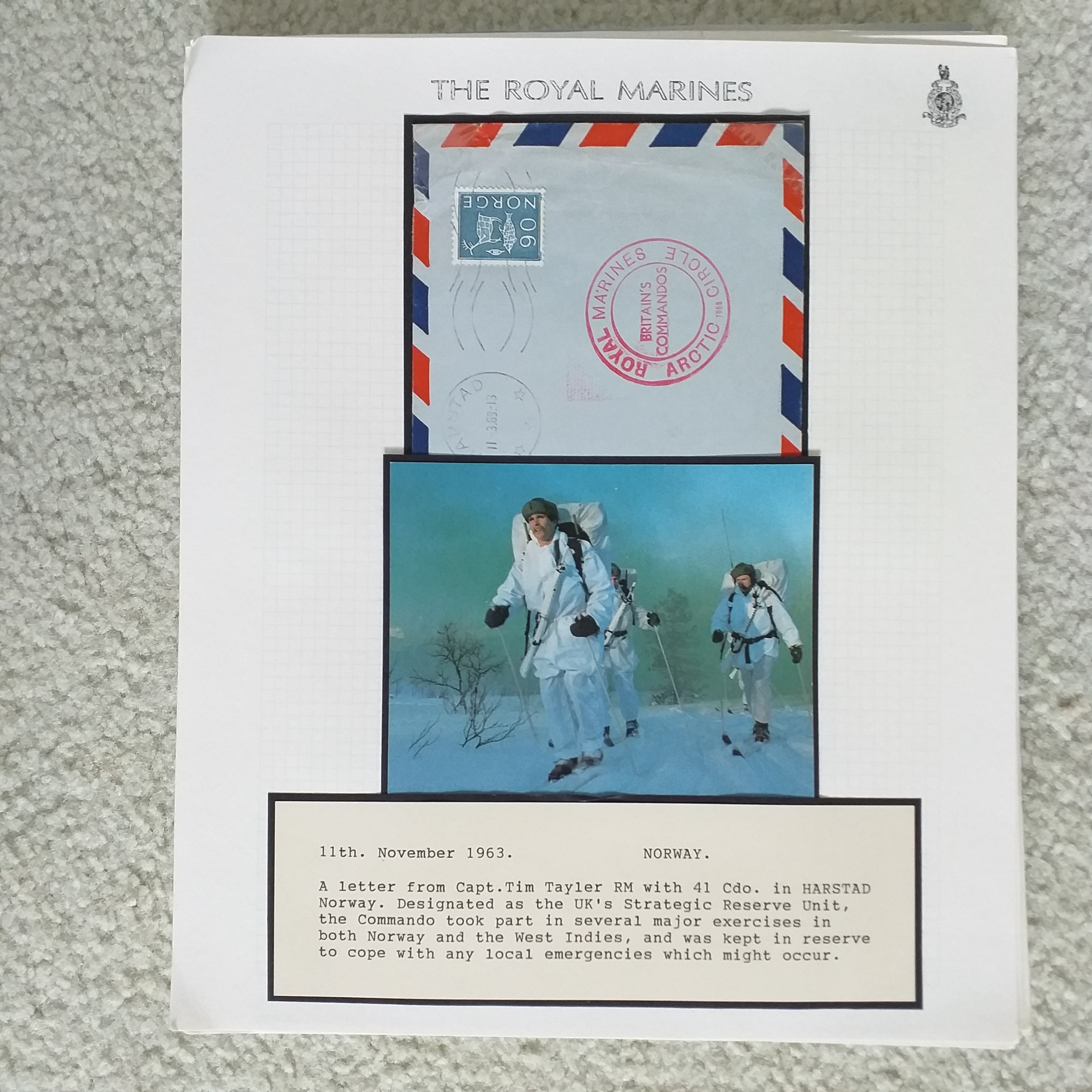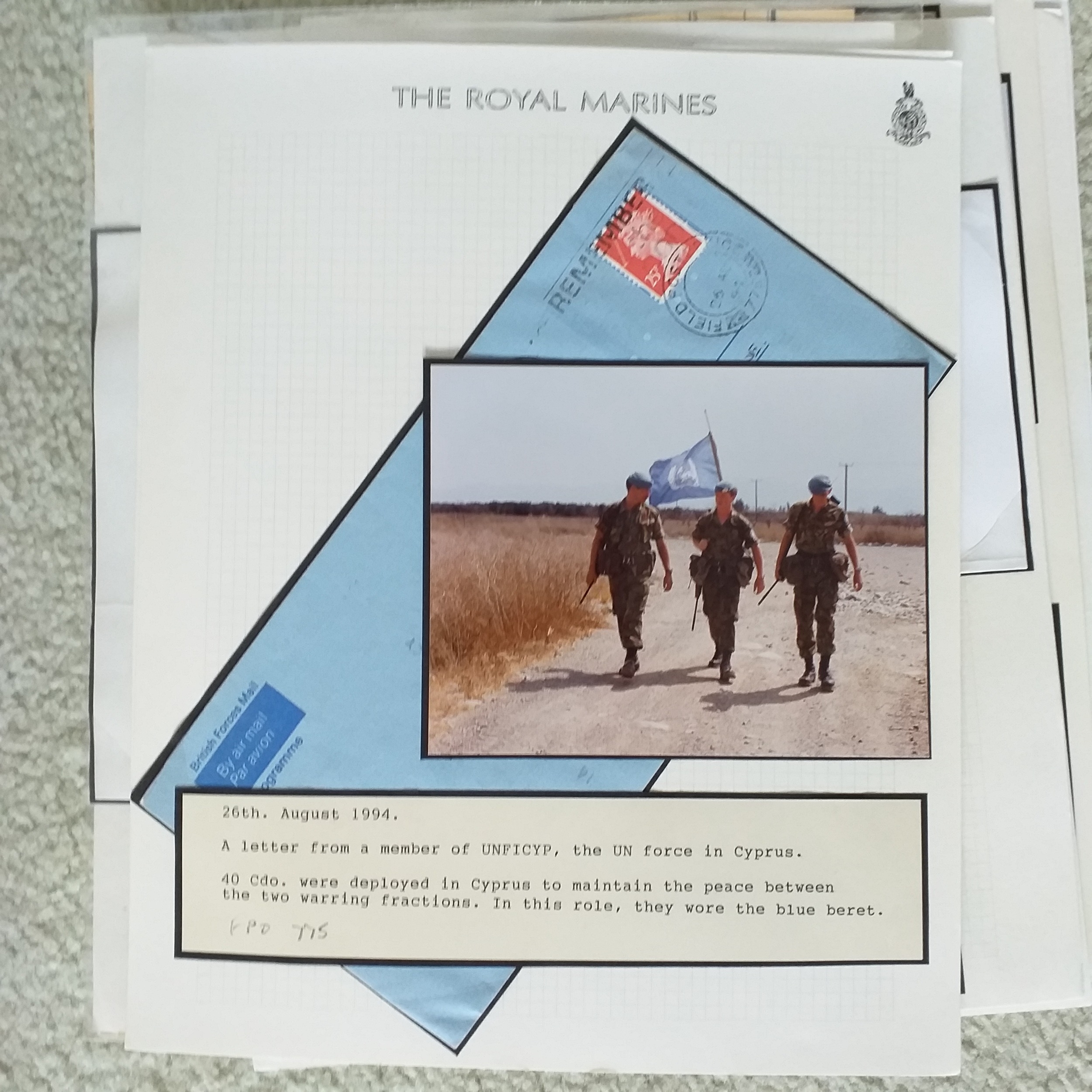 GB. Well written up 'Royal Marines' postal history collection on 50+ pages with mail from Royal Marine's operations around the world.