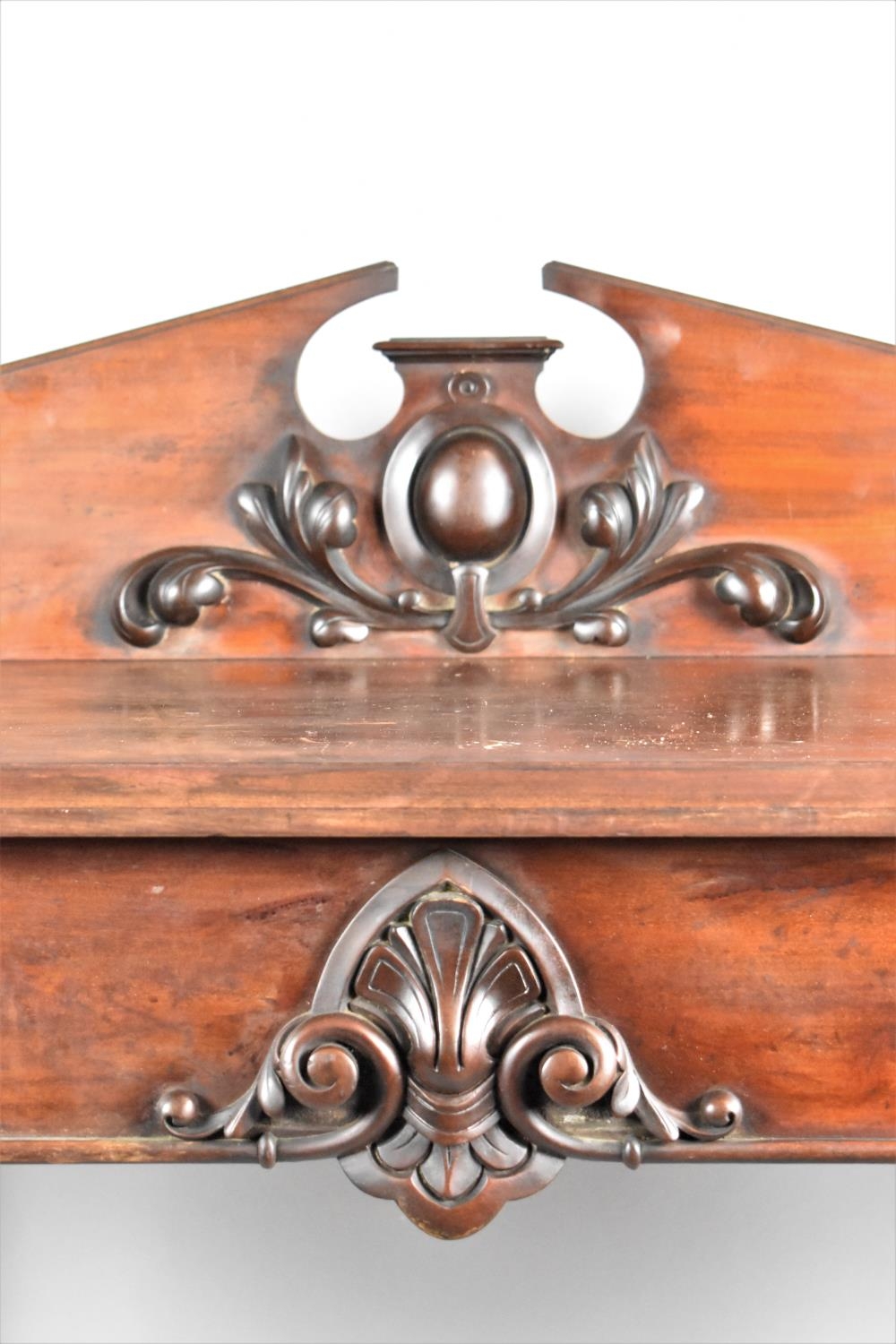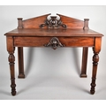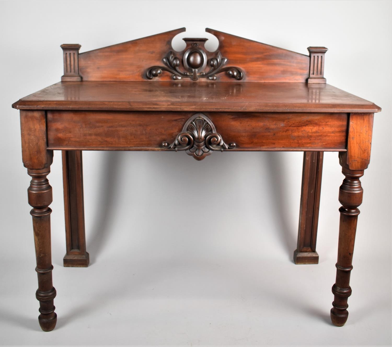 A Mid Victorian Mahogany Buffet or Serving Table with Raised Gallery and Swan Neck Cornice on Turned Support, 122cm wide