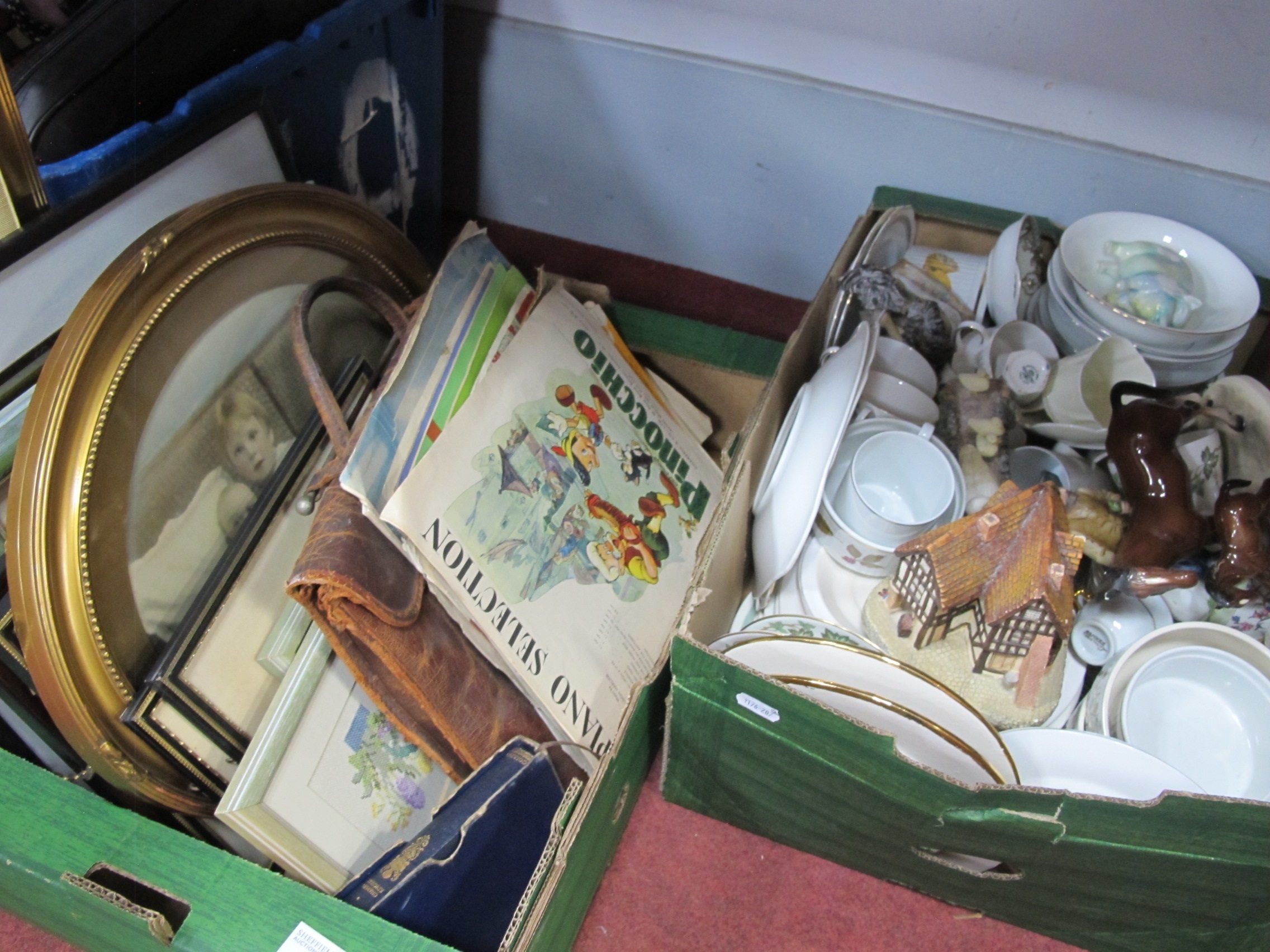 Paragon Ware "Belinda" Coffee Cup Saucers, sheet music, prints etc:- Two Boxes.